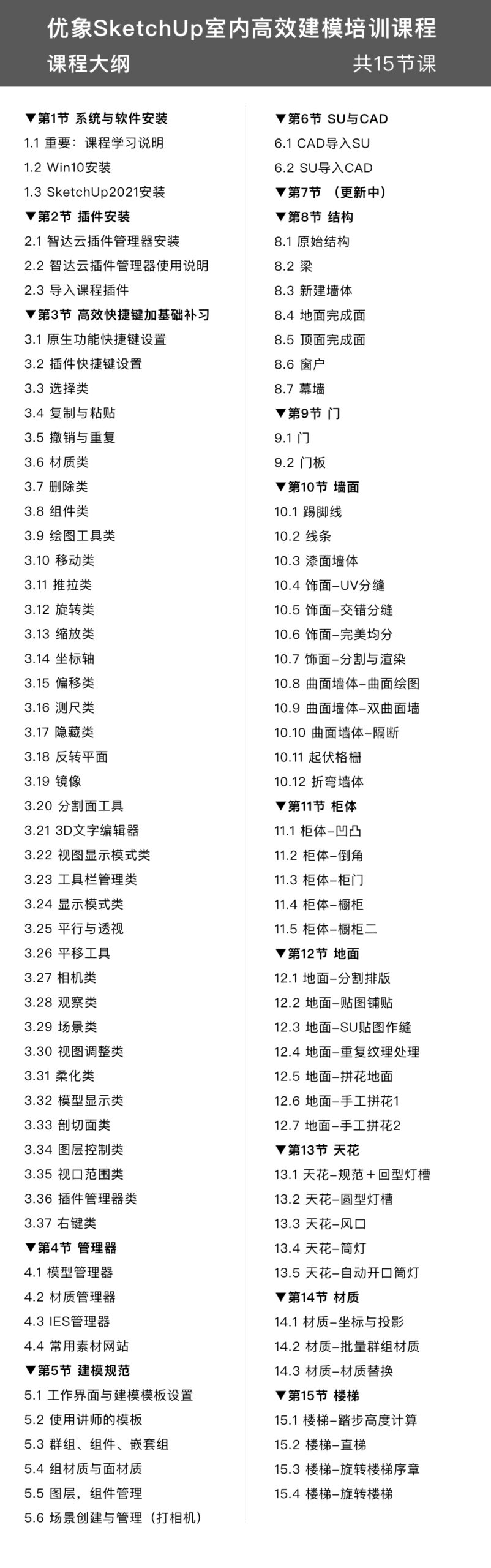 - 有SU软件基础(新手,建议报名优象的su入门到进阶)
