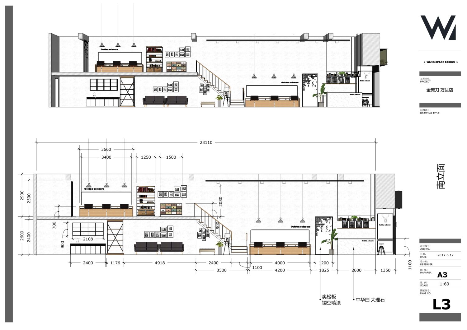 平面布置图,室内一二层连贯的立面图