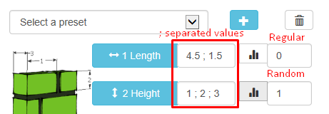 为长度和宽度设置多个值,并应用常规或随机分布。
