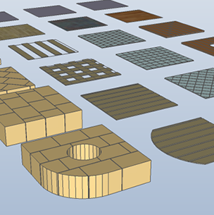 自动铺砖排版,支持拼法、缝宽与切割规则。适合室内外铺装快速生成与统计。