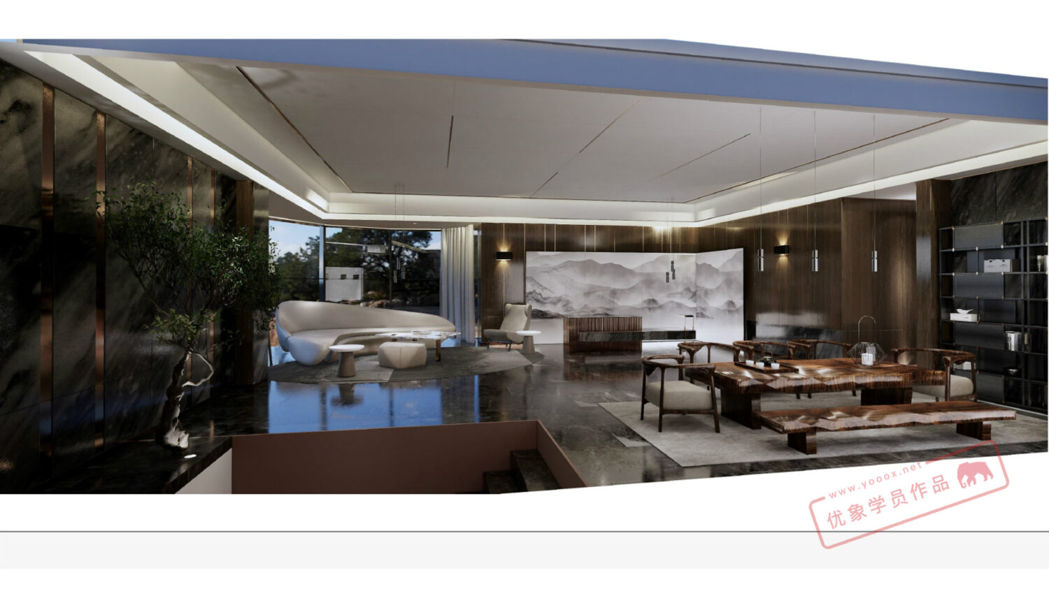 (学员)远方会所深化设计方案作品 Enscape学员感言 说服甲方需要的是大量的效果图和动画的轰炸, 把领导带出感觉才能搞定, 以前在外面做三四张效果图放完就进入分析图平面图功能布局啥的, 领导通常都会很快开始打瞌睡, 现在有了enscape,随便就是30+效果图, 试过两次,领导都是会上直接拍板,爽的不要不要的。