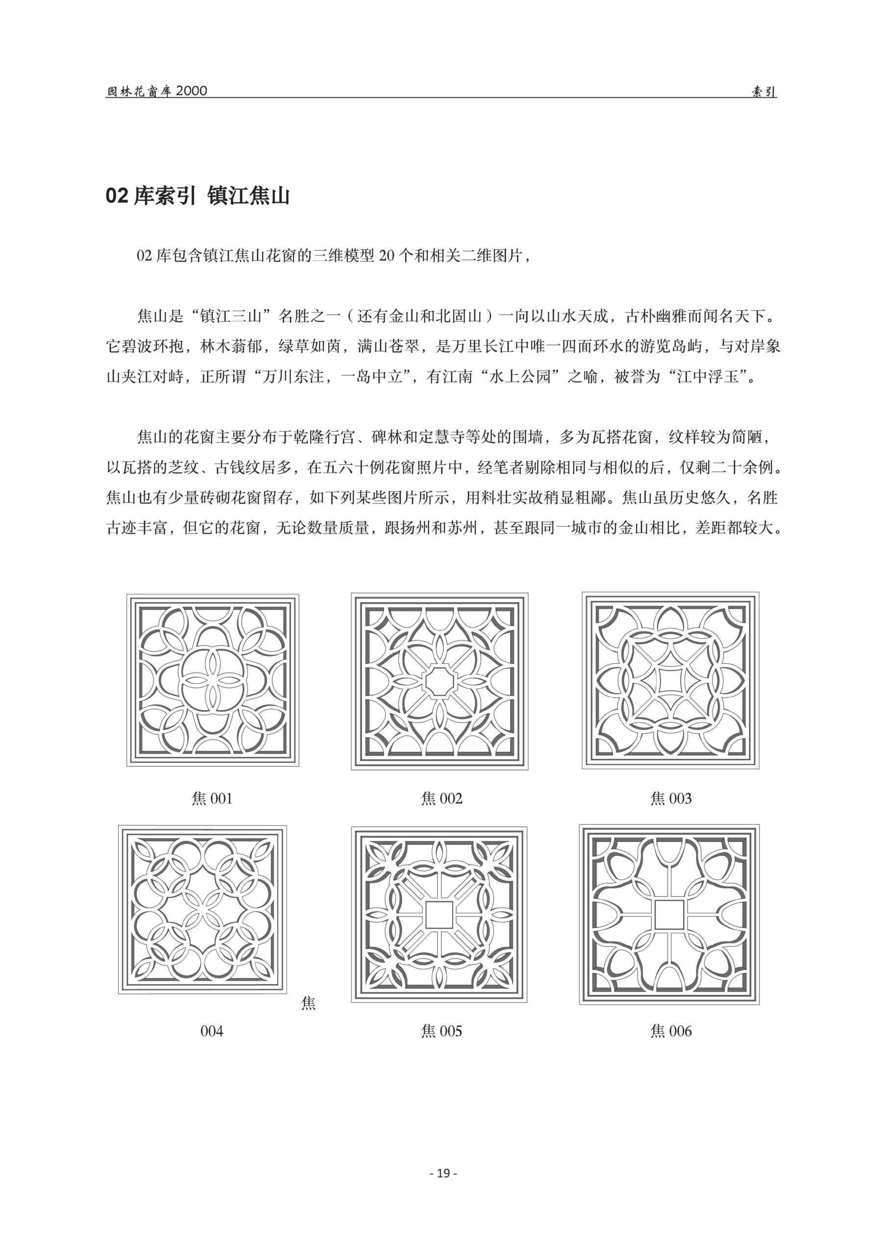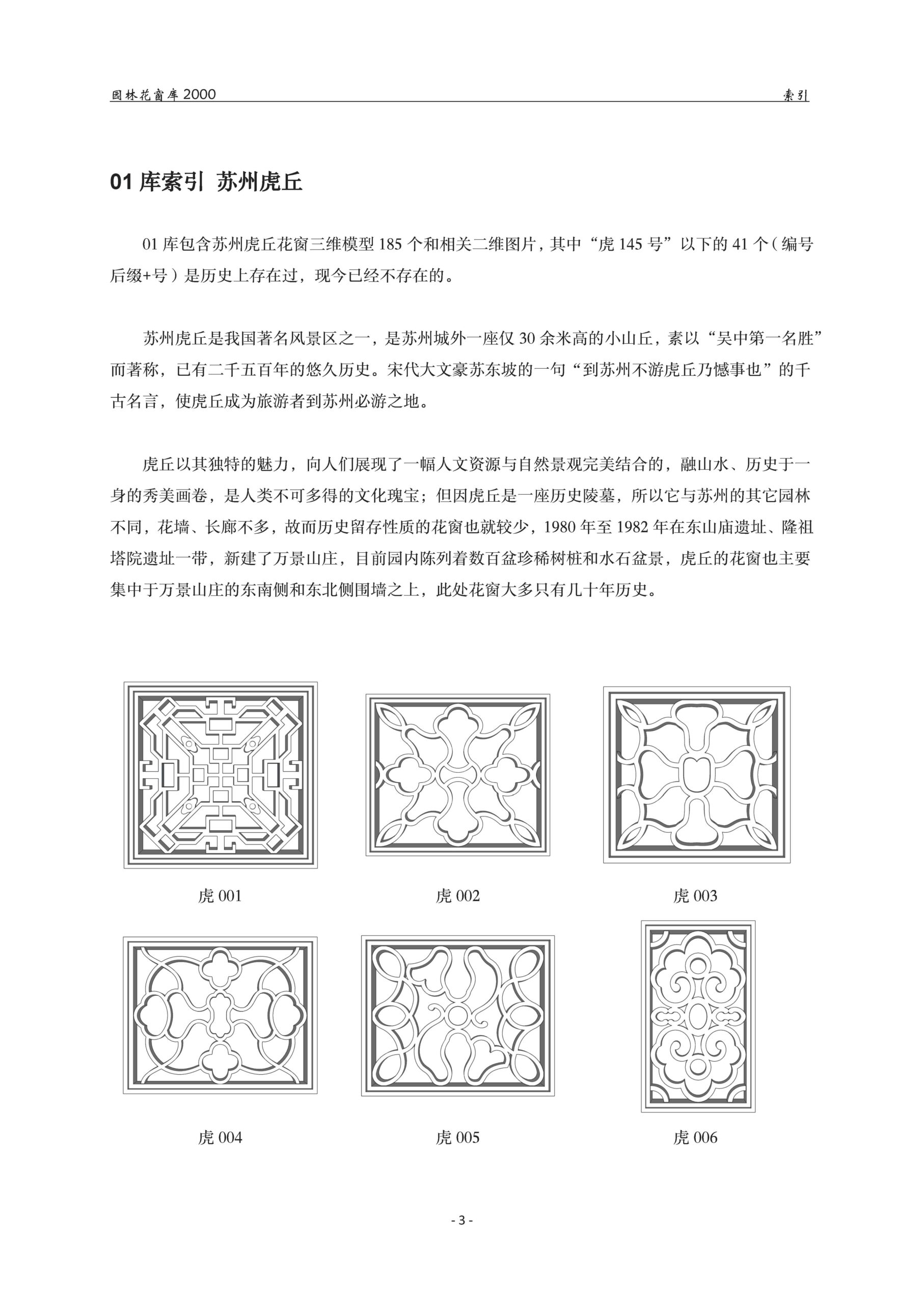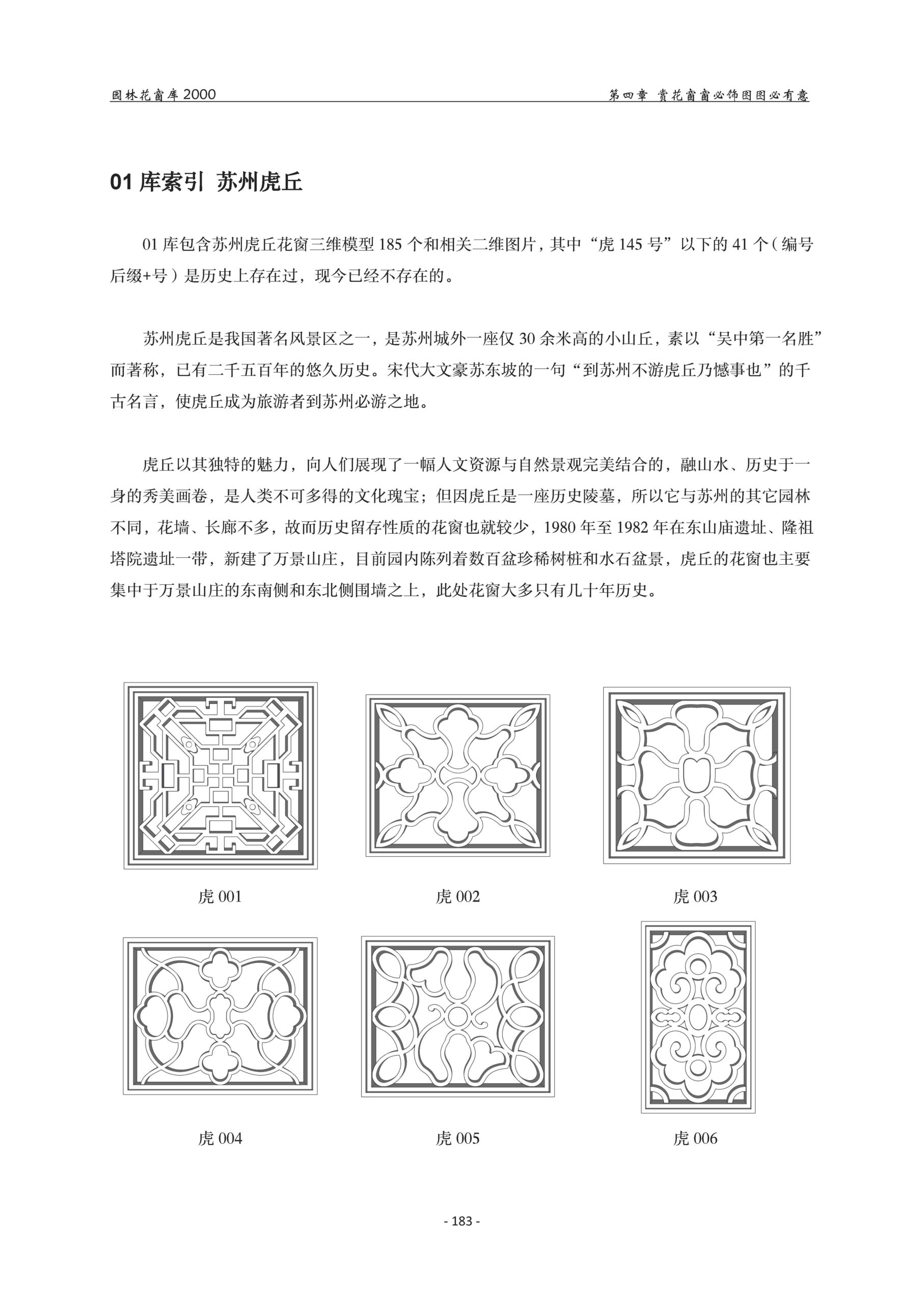 这是目前市场上唯一的花窗图形和模型资料库,包含有三十多个知名园林,近2000幅花窗的二维图形、三维模型等大量珍贵资料。