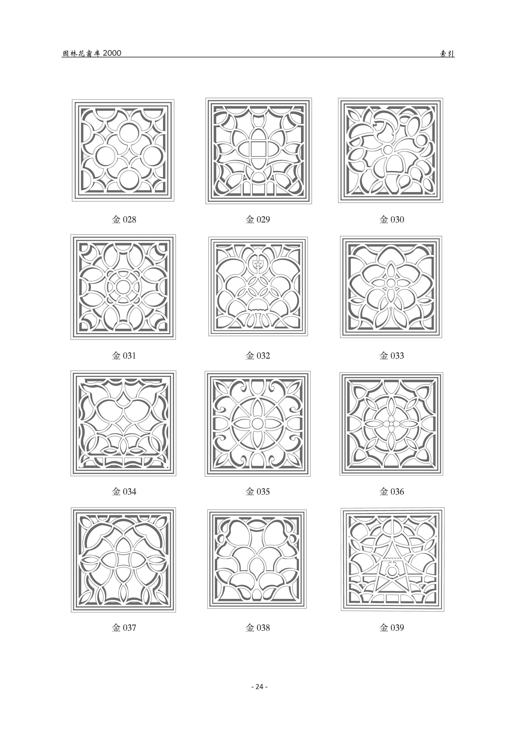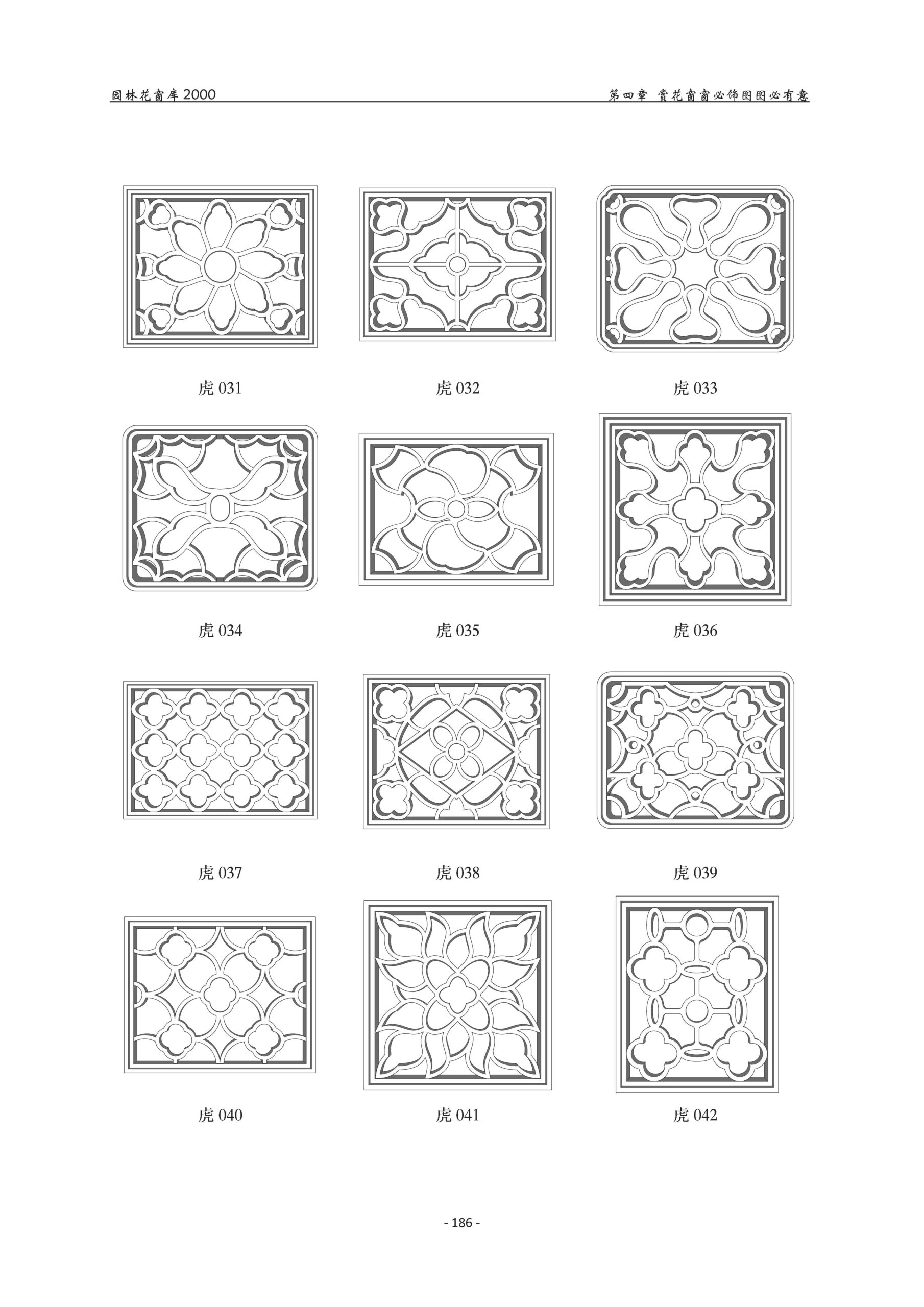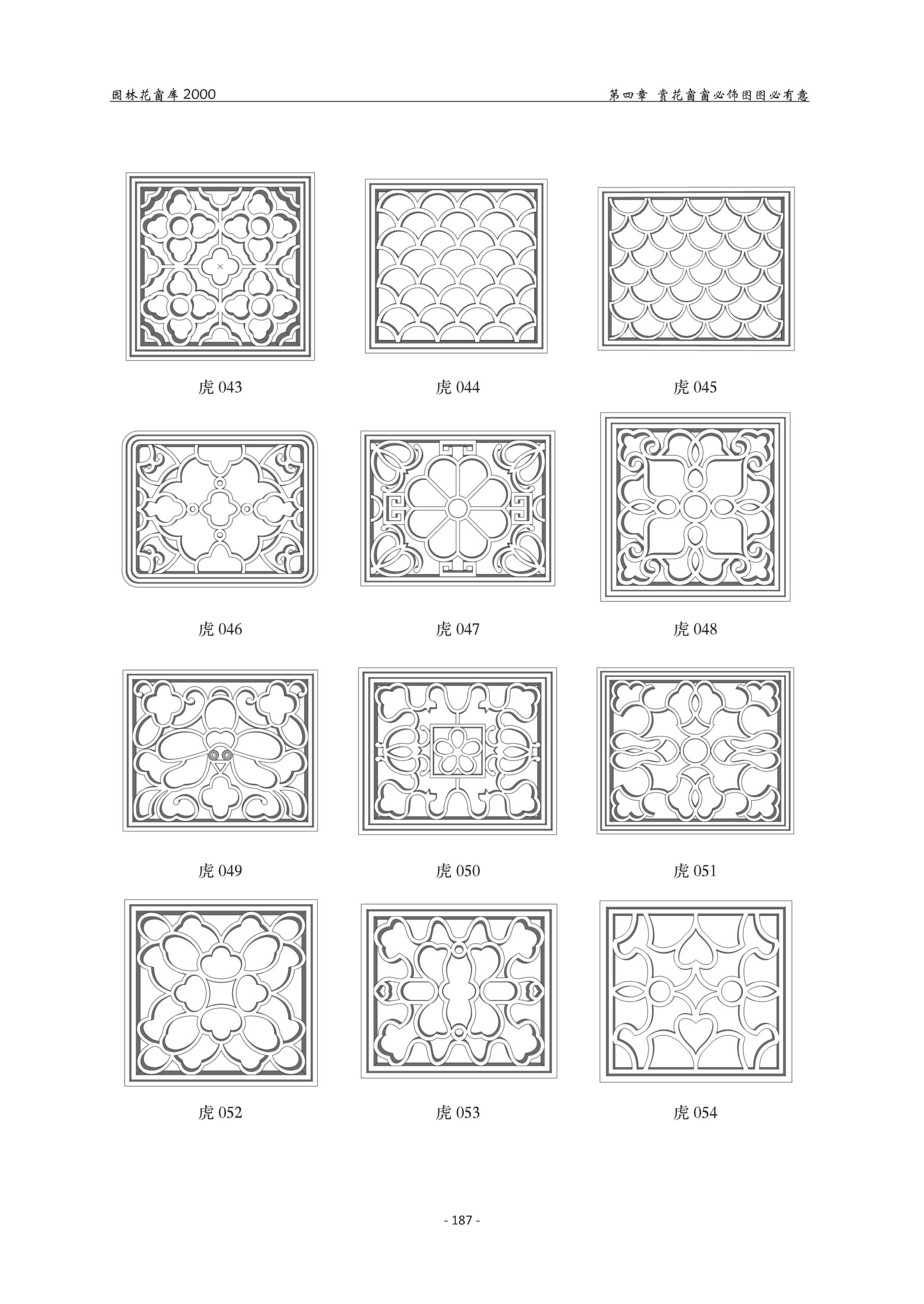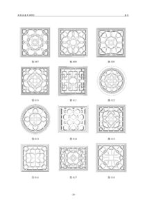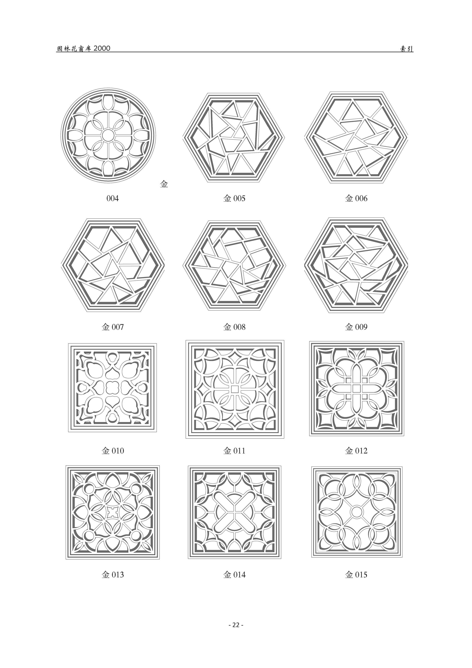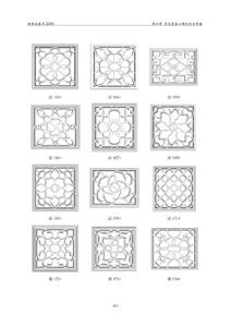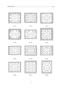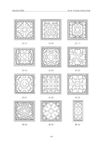 - 37号库是花窗基础纹样库,内含500多个skp格式的基础纹样,扫描纸质书上的二维码就可以下载相应的库文件,每类基础纹样一个压缩包,可用SketchUp或3dsMAX等软件来设计你自己的花窗,具体用法请参阅本书第六章的视频介绍。