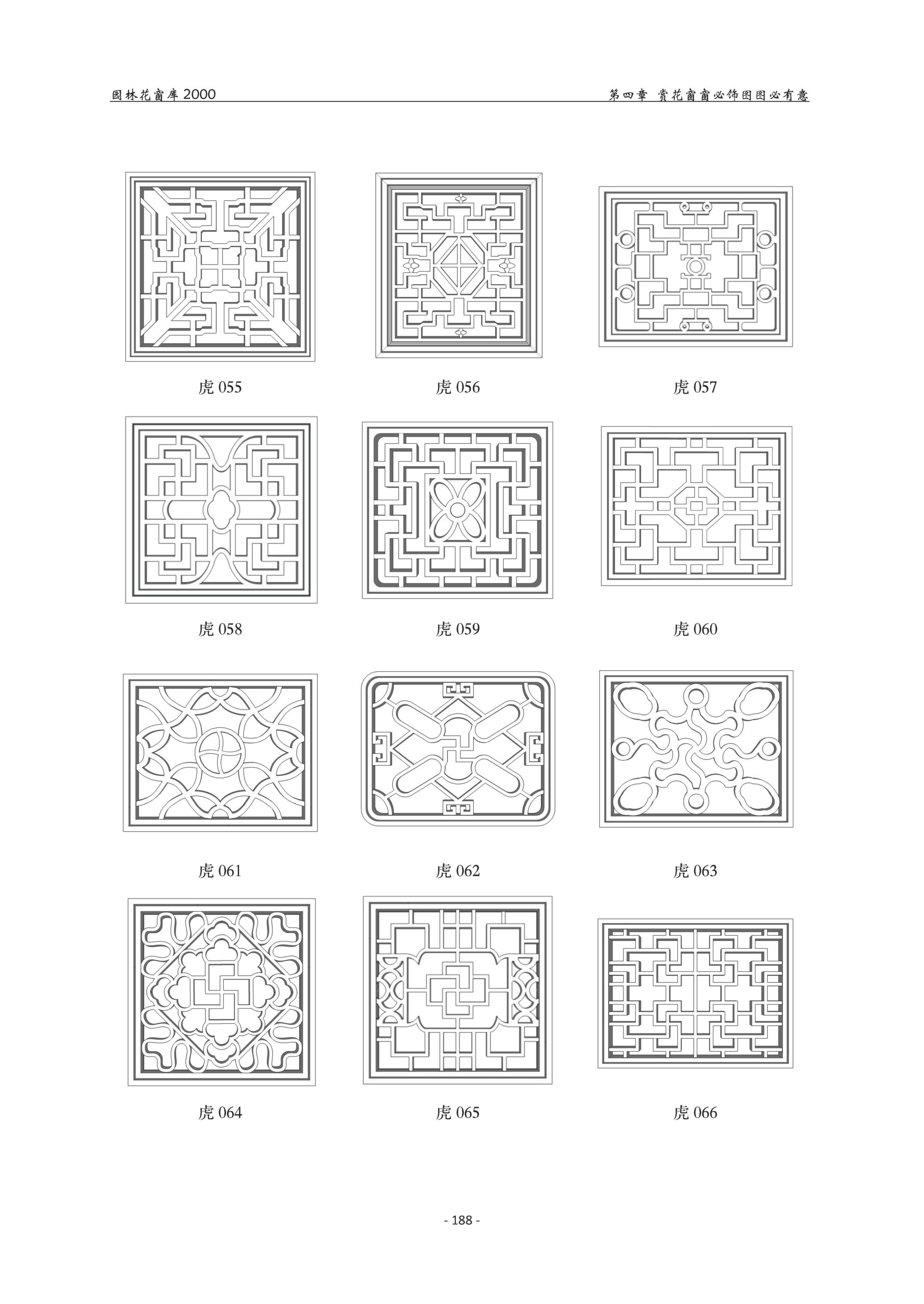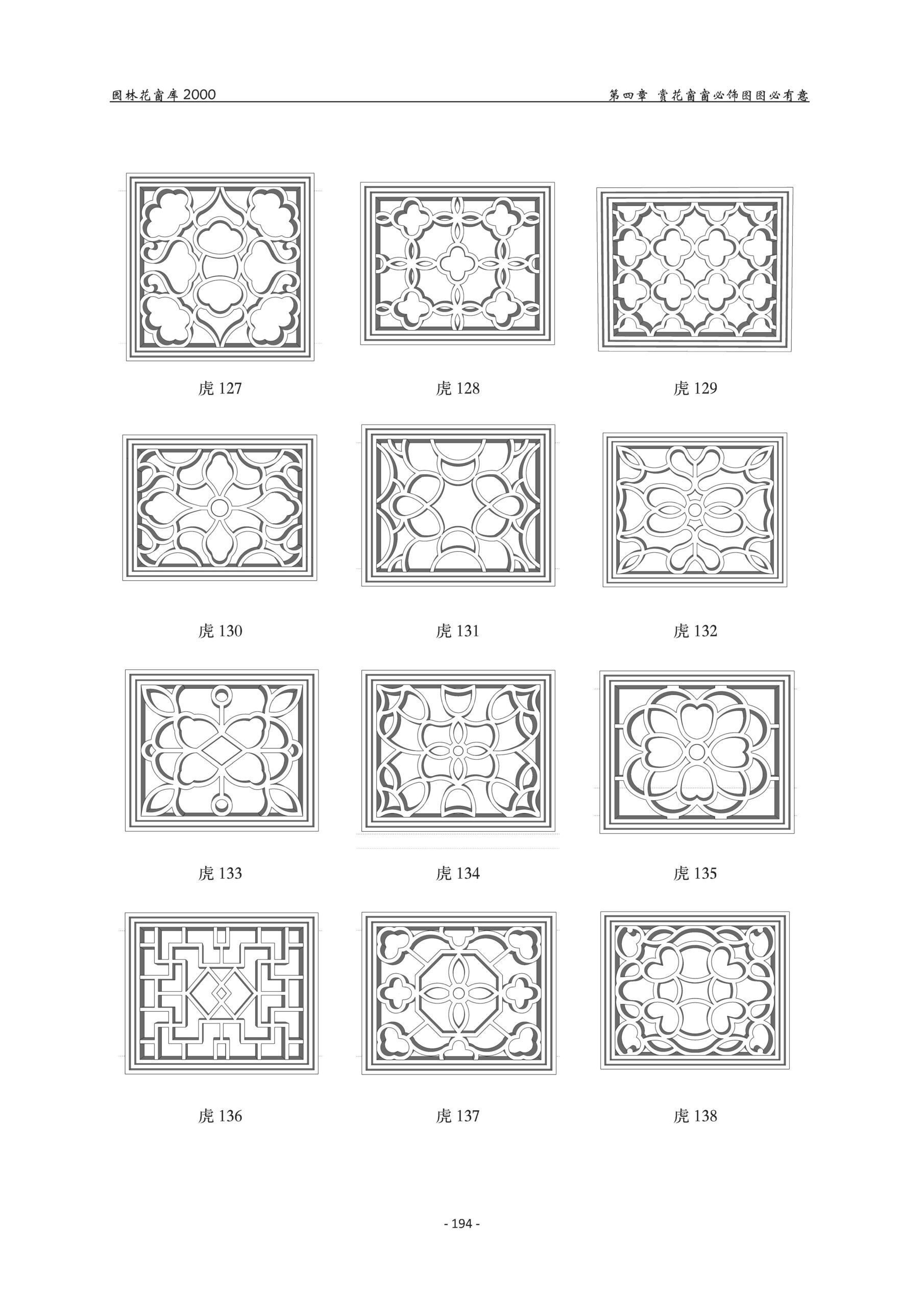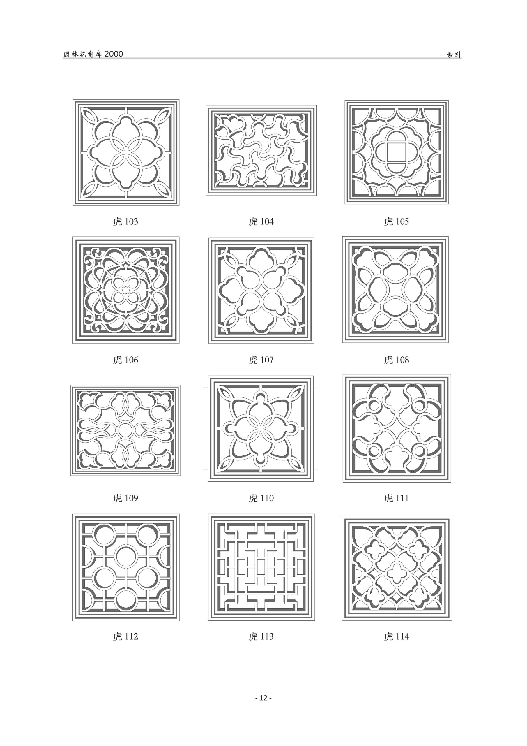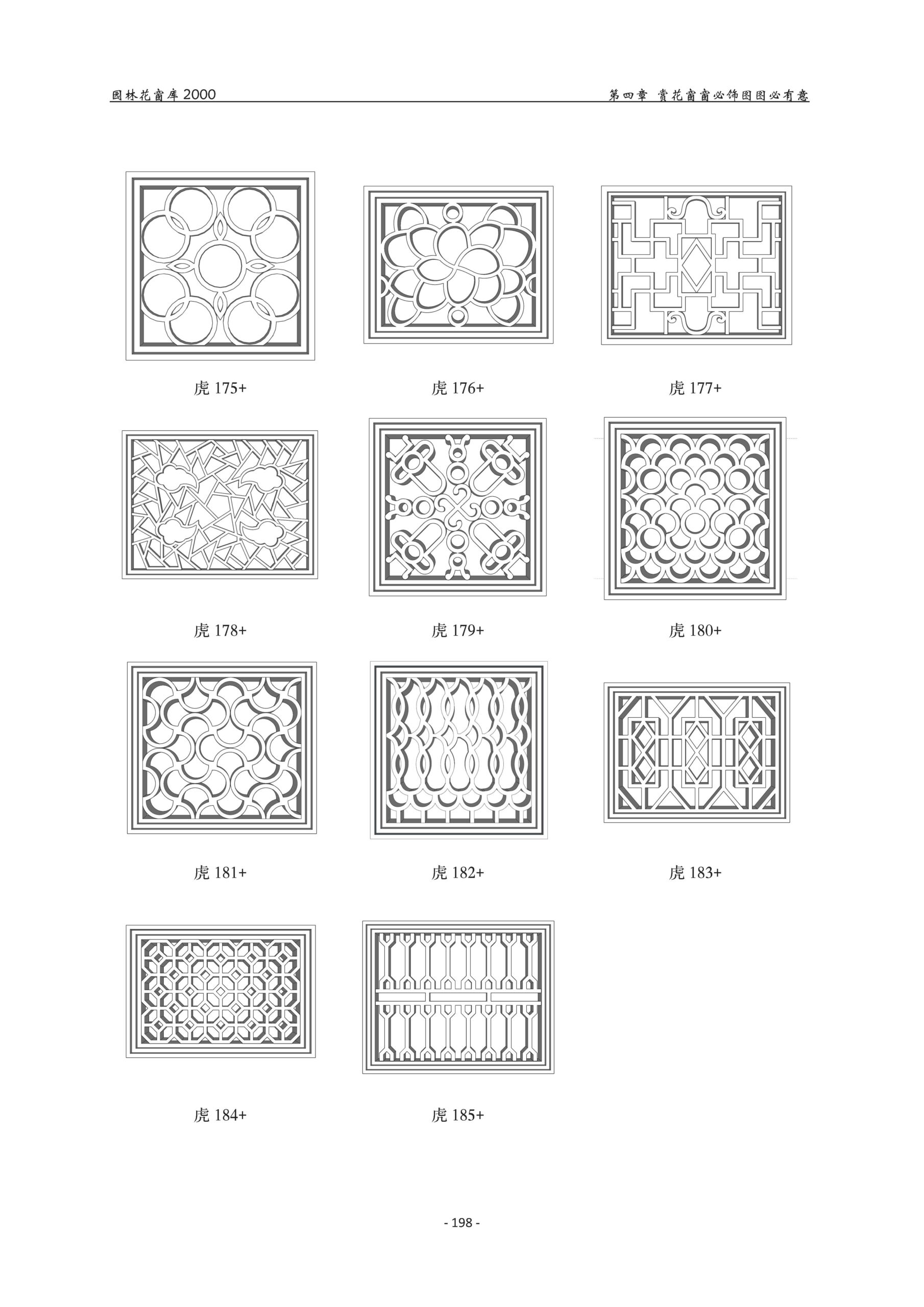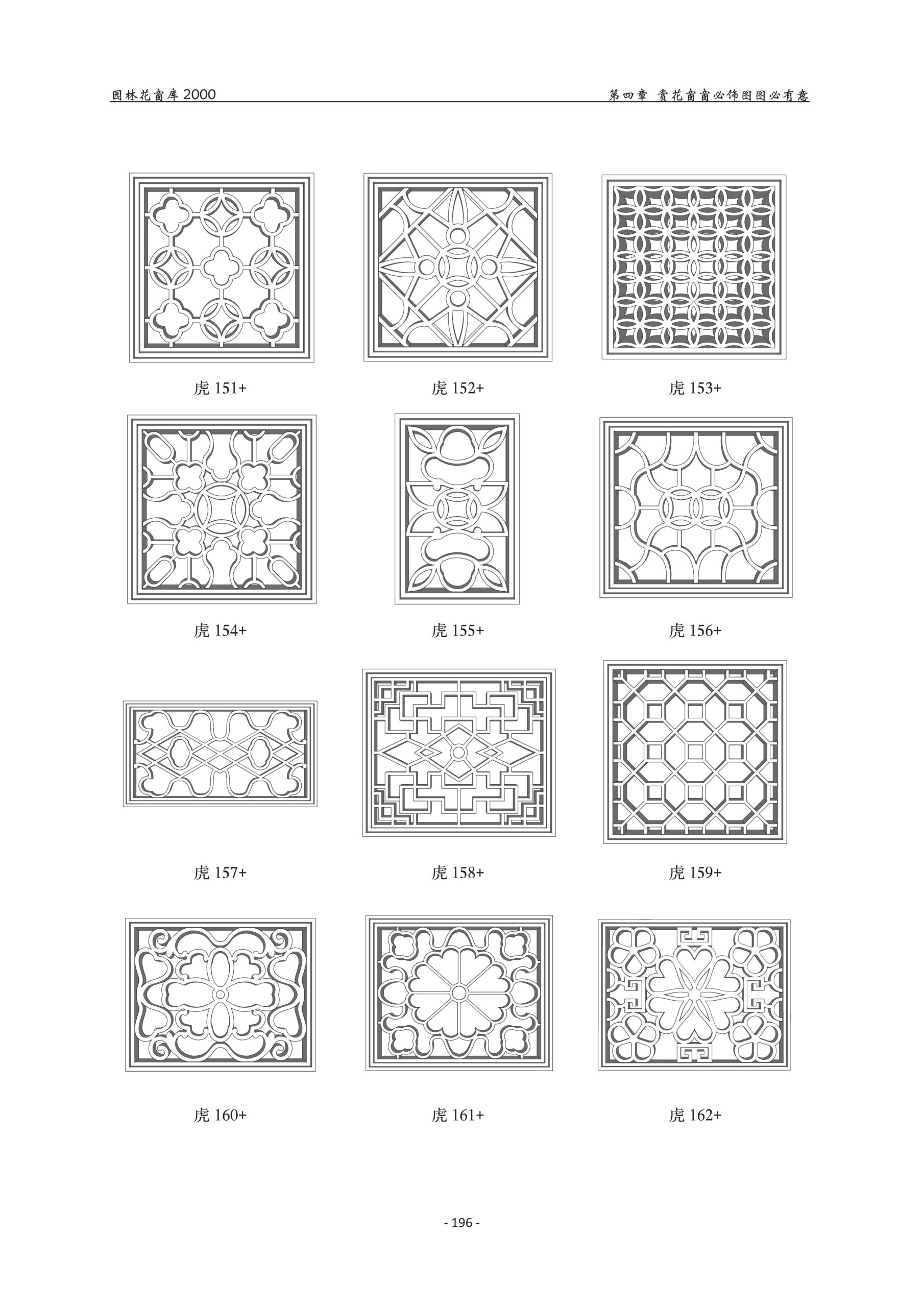 - 37号库是花窗基础纹样库,内含500多个skp格式的基础纹样,扫描纸质书上的二维码就可以下载相应的库文件,每类基础纹样一个压缩包,可用SketchUp或3dsMAX等软件来设计你自己的花窗,具体用法请参阅本书第六章的视频介绍。