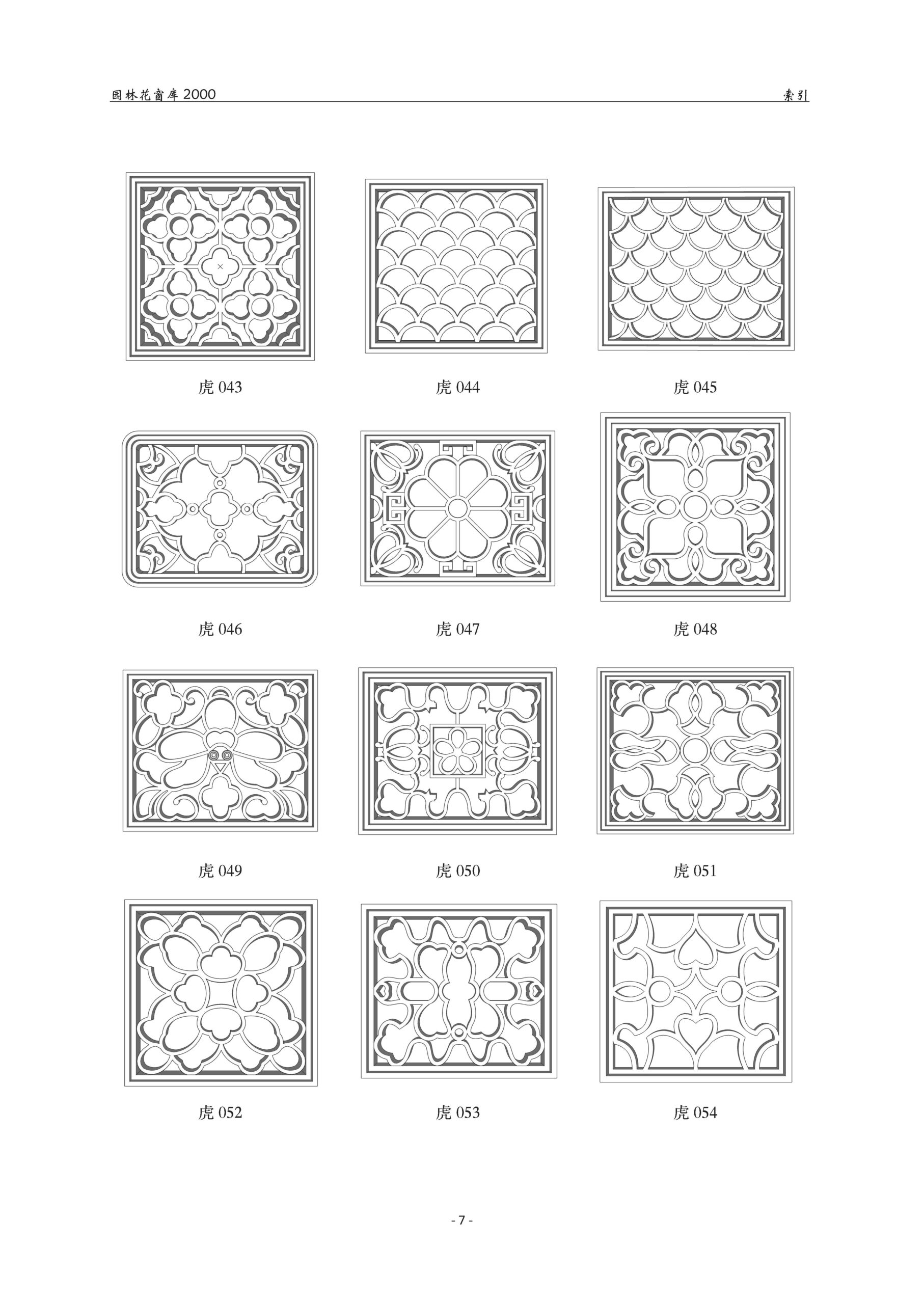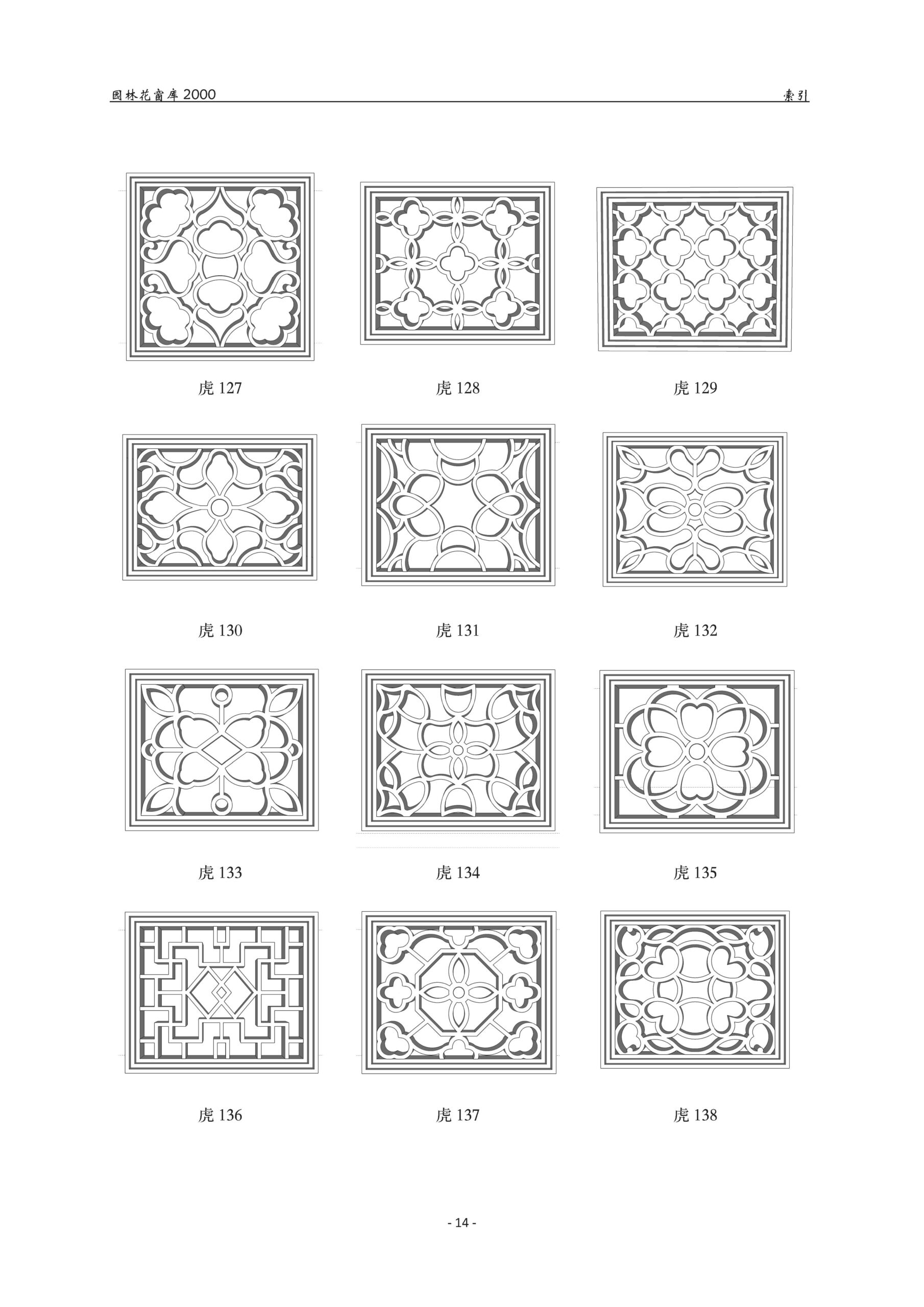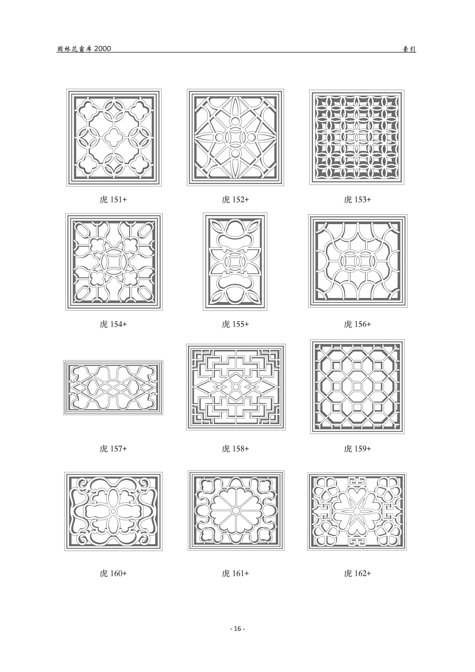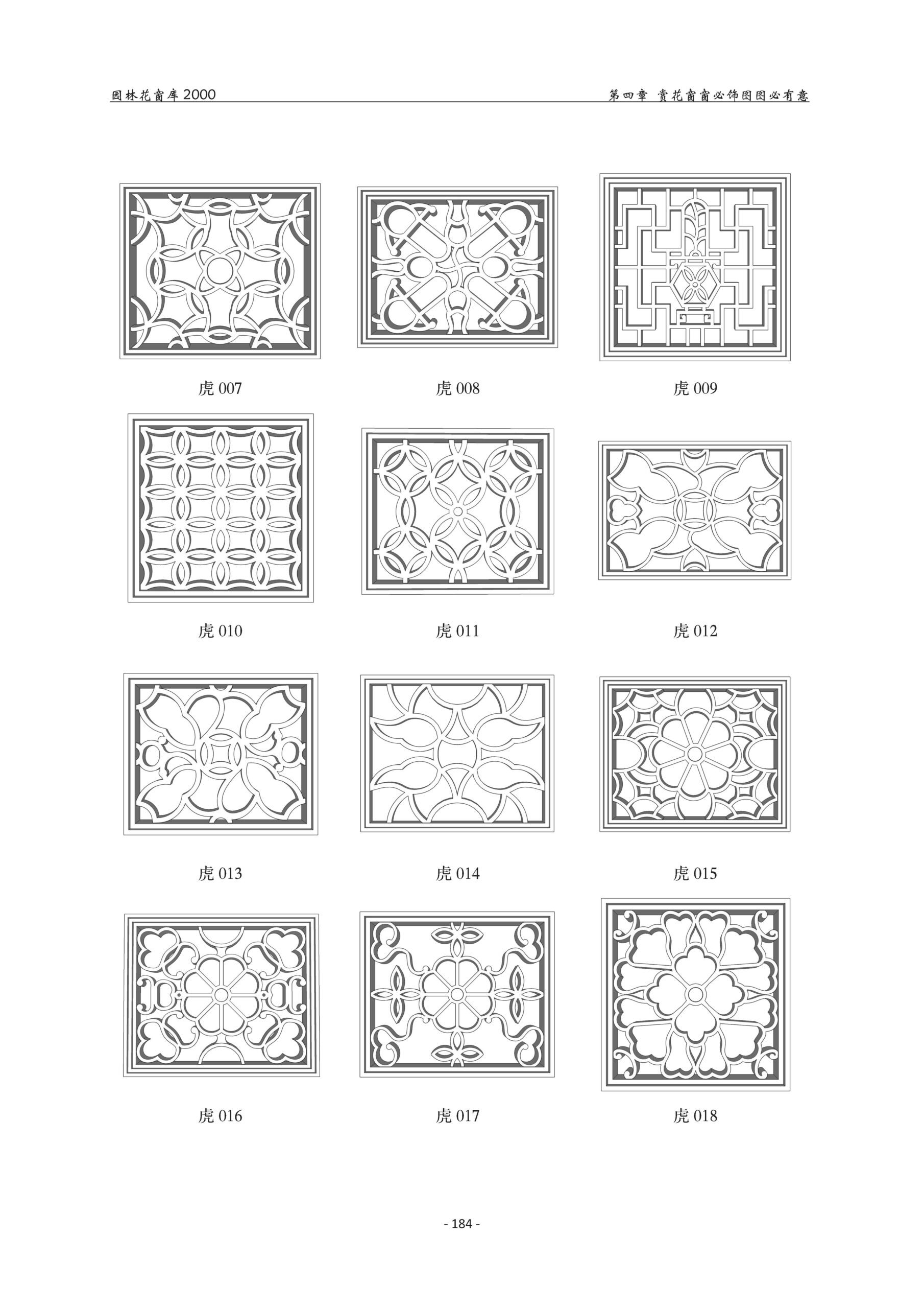 - 37号库是花窗基础纹样库,内含500多个skp格式的基础纹样,扫描纸质书上的二维码就可以下载相应的库文件,每类基础纹样一个压缩包,可用SketchUp或3dsMAX等软件来设计你自己的花窗,具体用法请参阅本书第六章的视频介绍。