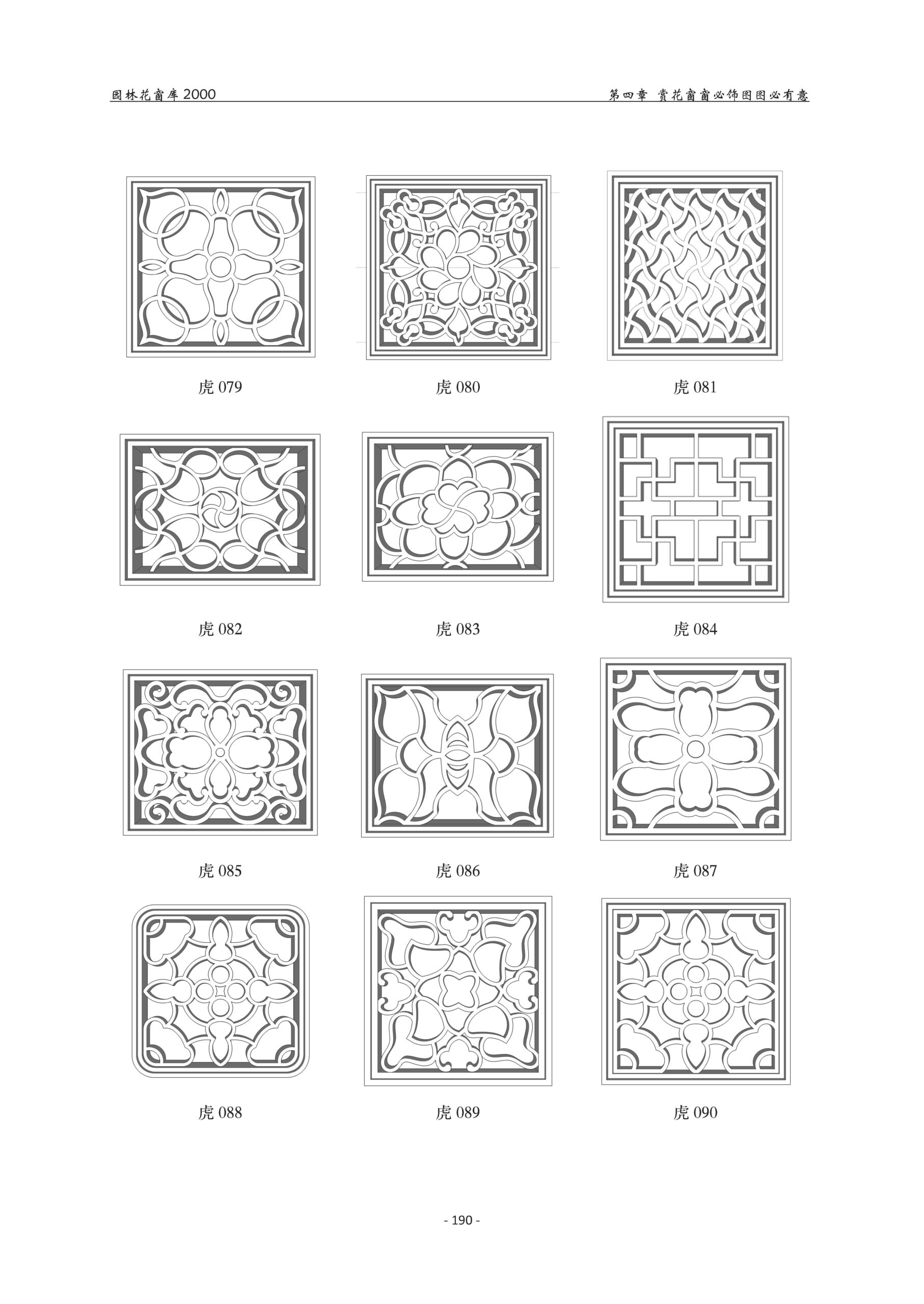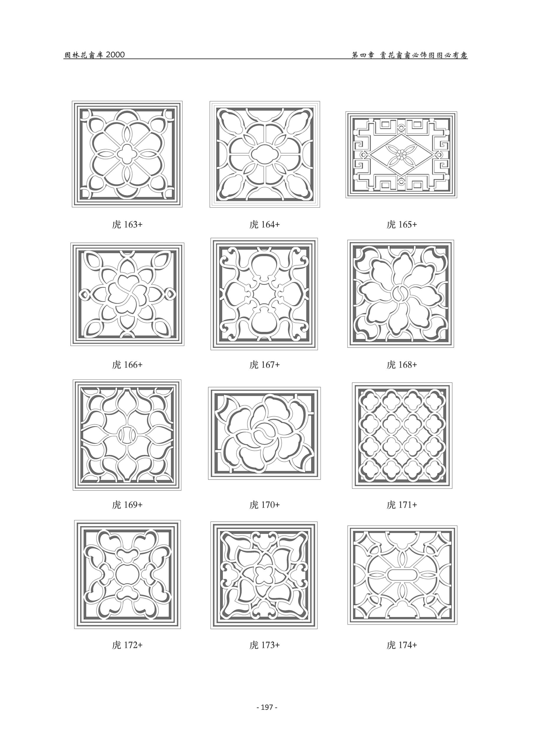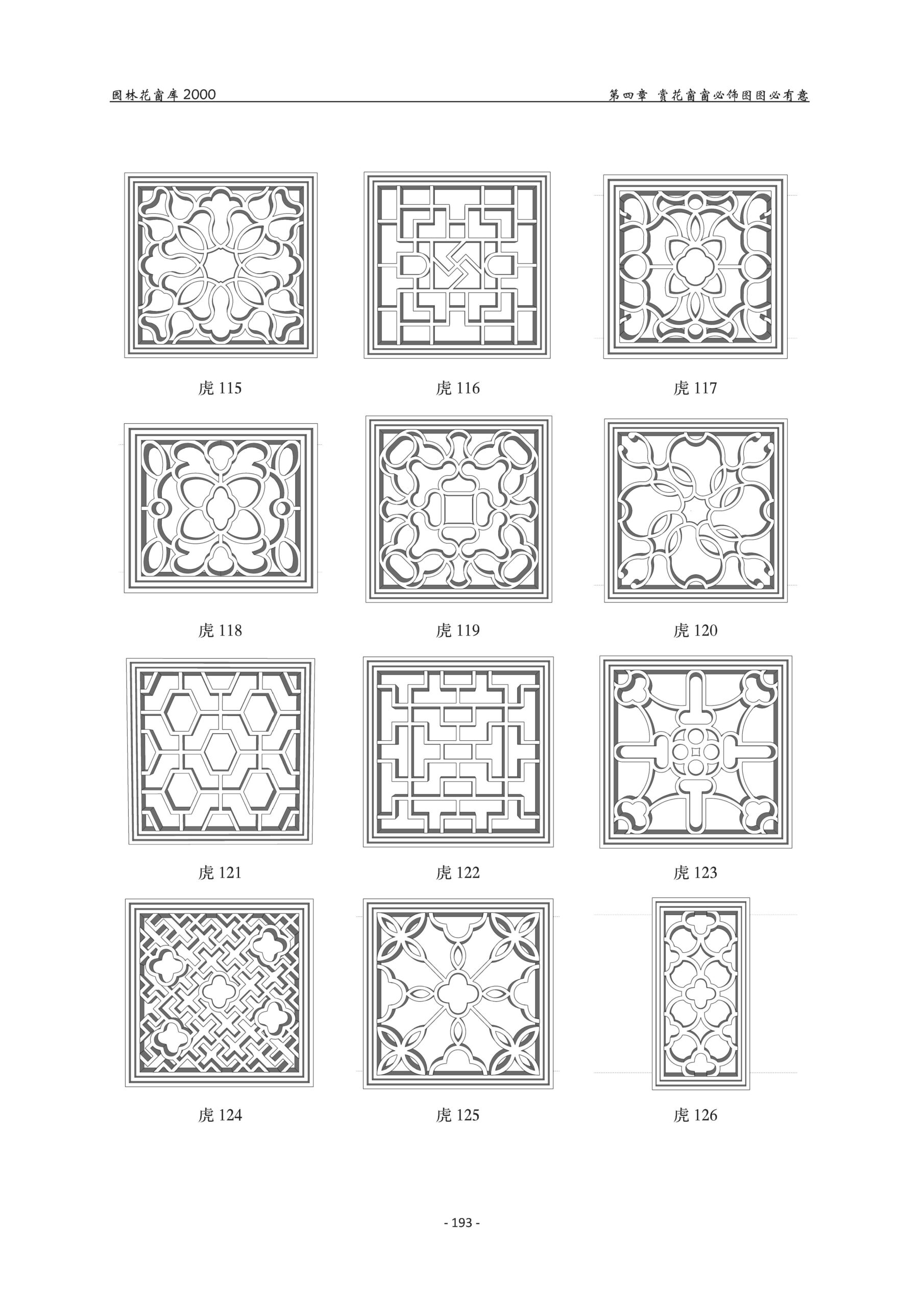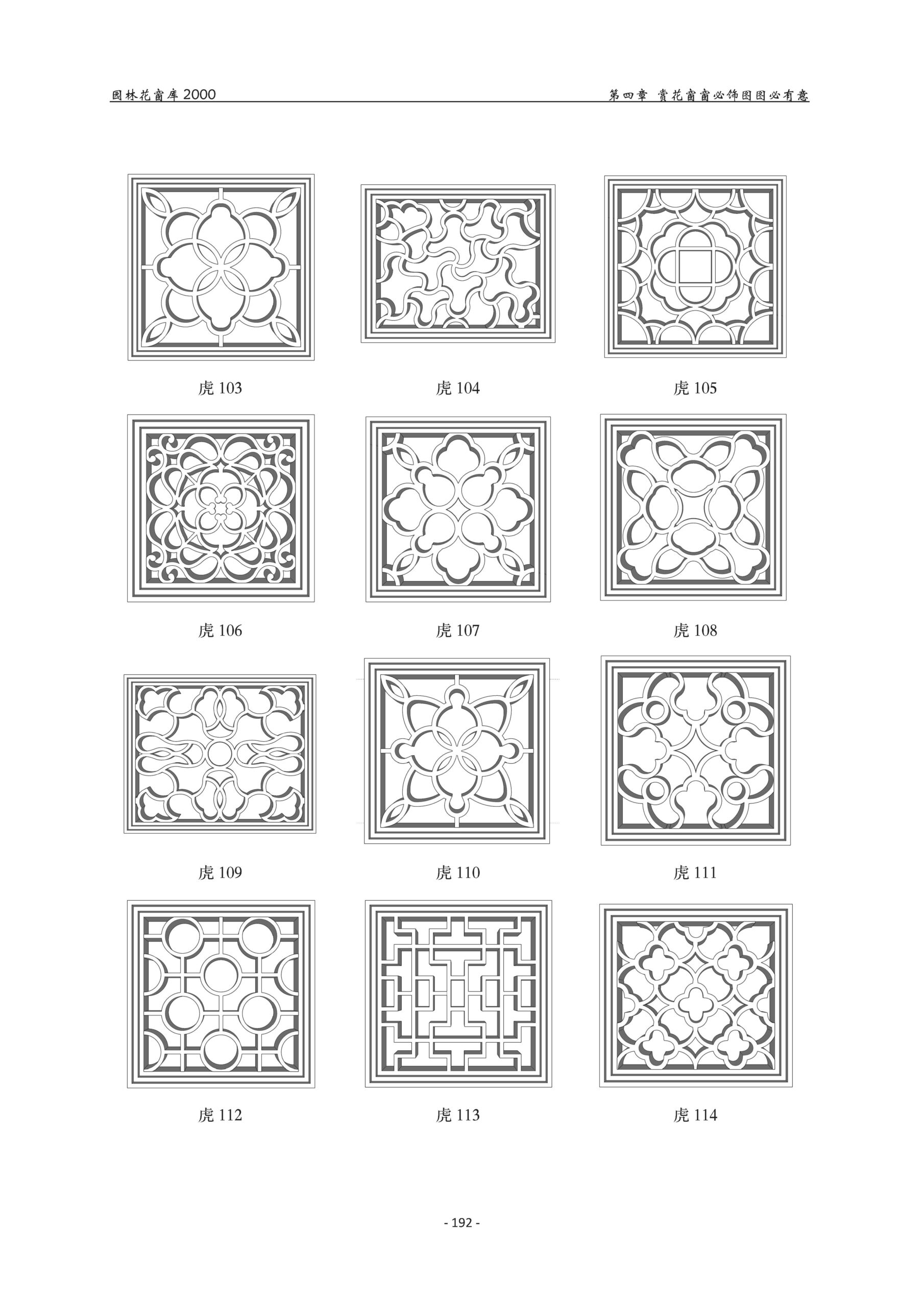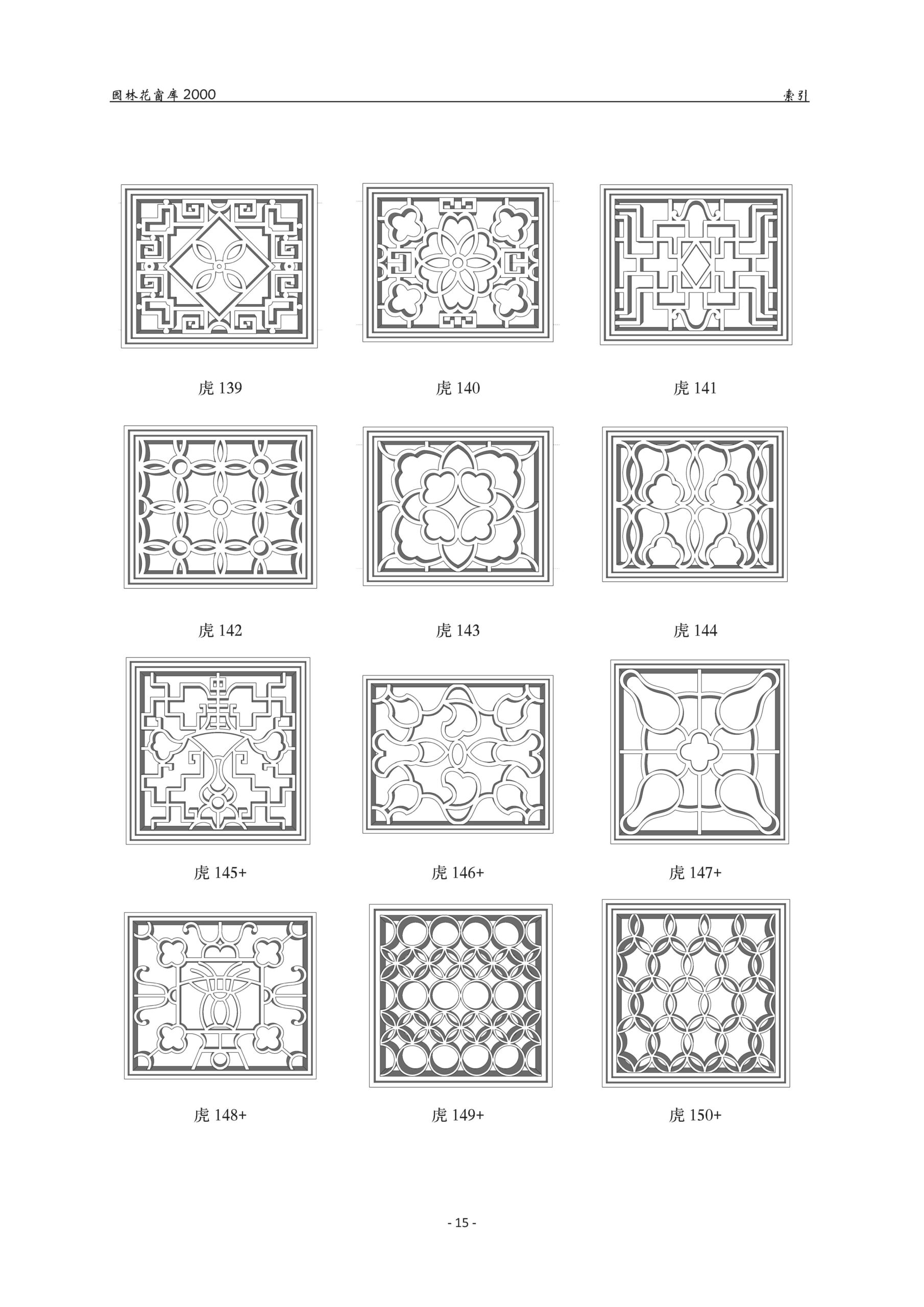 - 37号库是花窗基础纹样库,内含500多个skp格式的基础纹样,扫描纸质书上的二维码就可以下载相应的库文件,每类基础纹样一个压缩包,可用SketchUp或3dsMAX等软件来设计你自己的花窗,具体用法请参阅本书第六章的视频介绍。