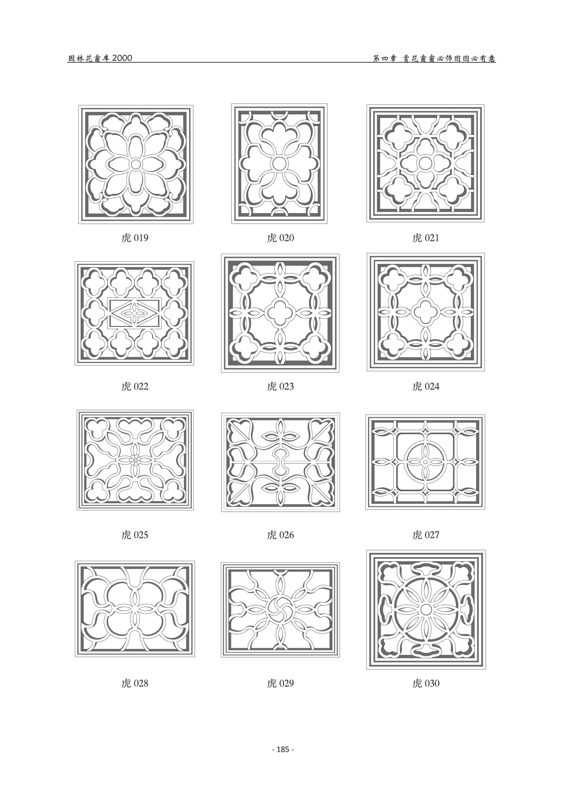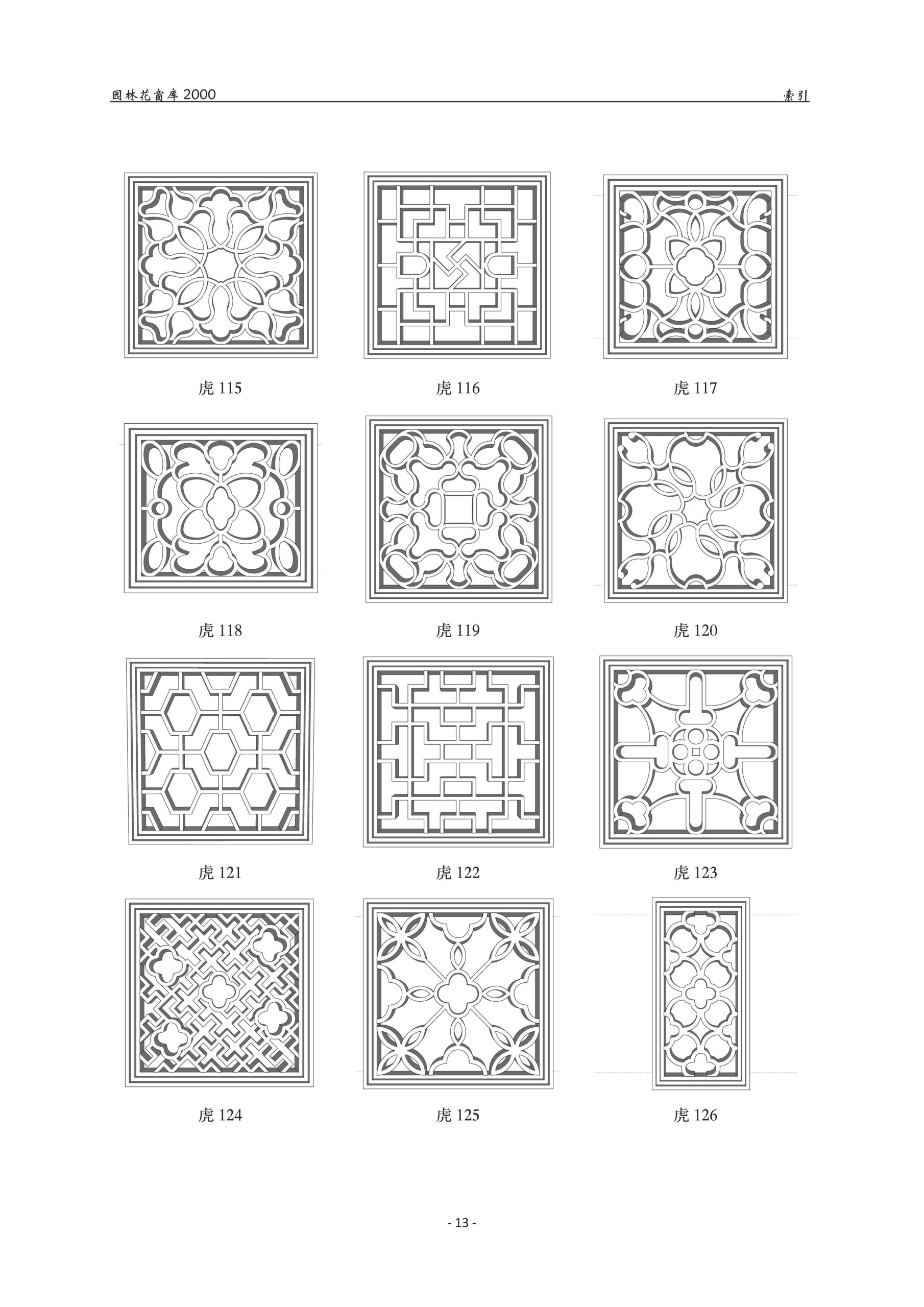 - 36号库是木质花窗图模库,含长窗半窗景窗和支摘窗实例20多个。