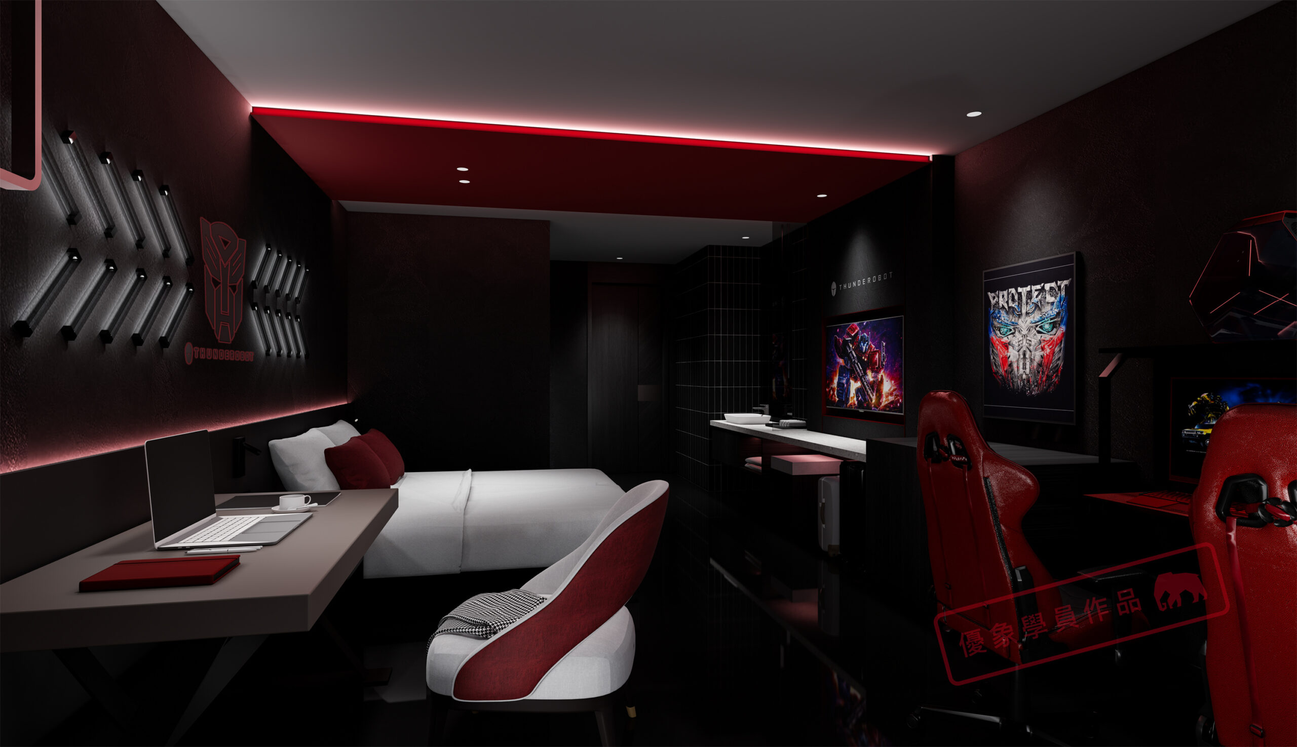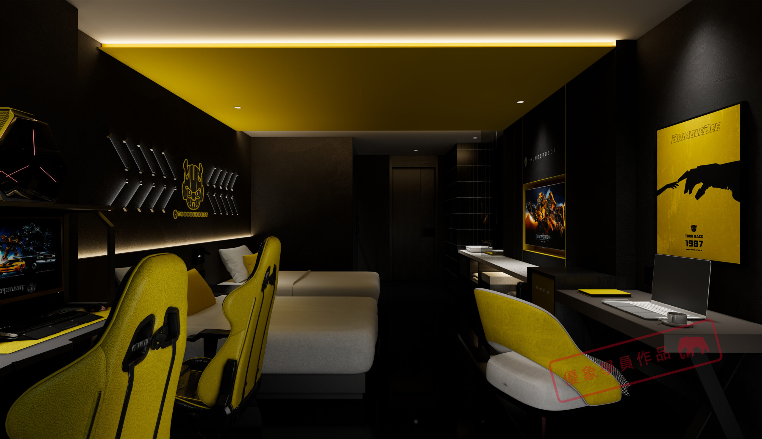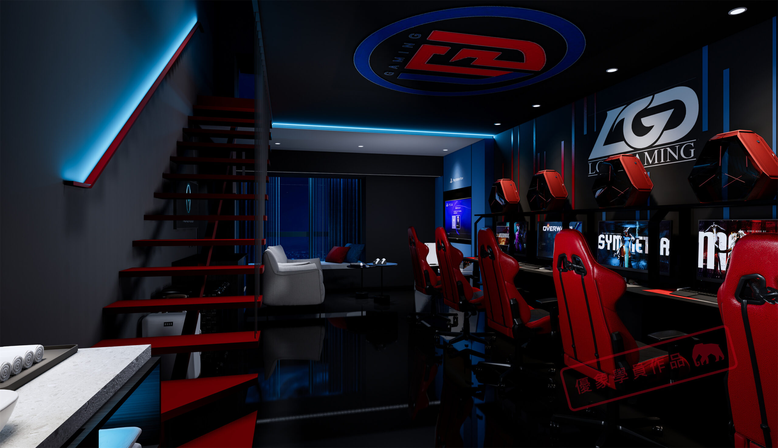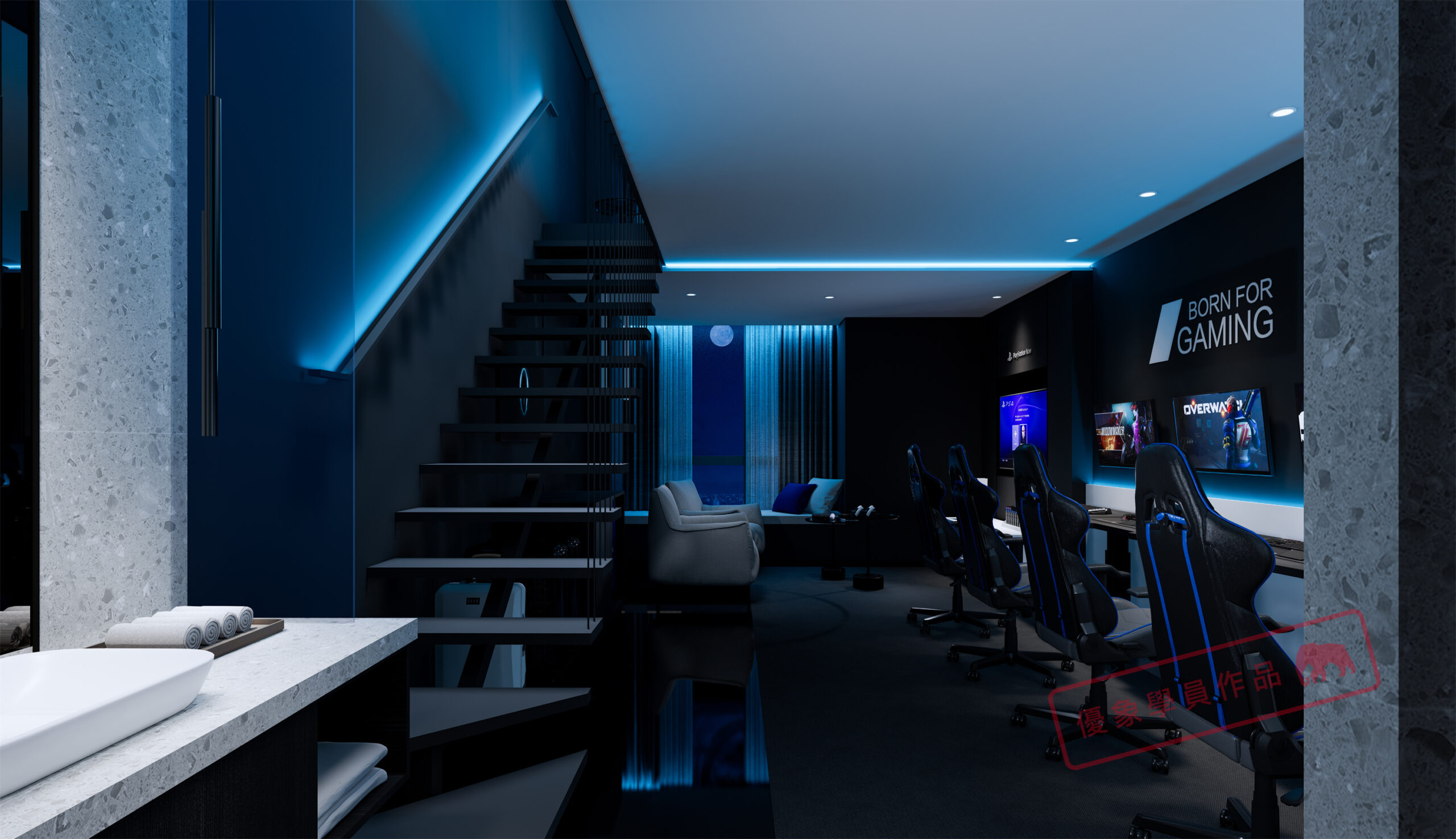 项目是我在泸州的一个项目,第一个电竞主题酒店,4层2000平方左右 我负责做大堂和包房部分。