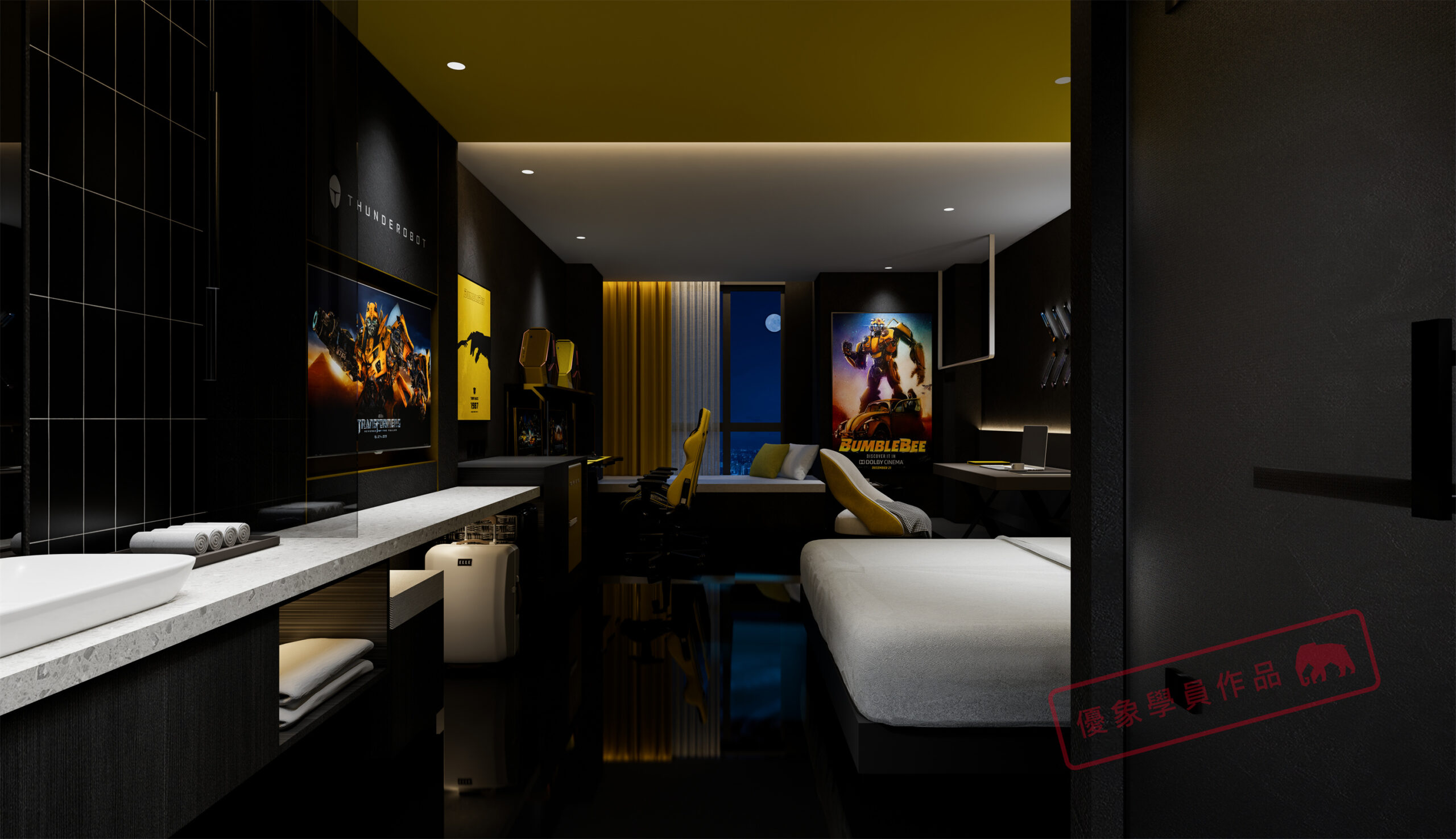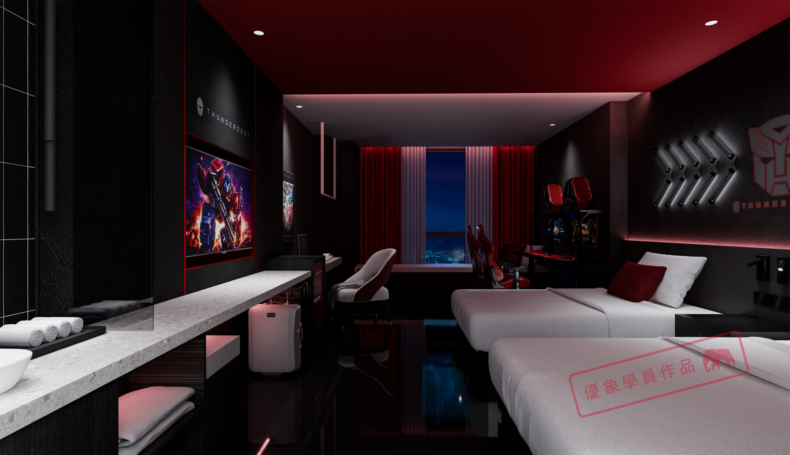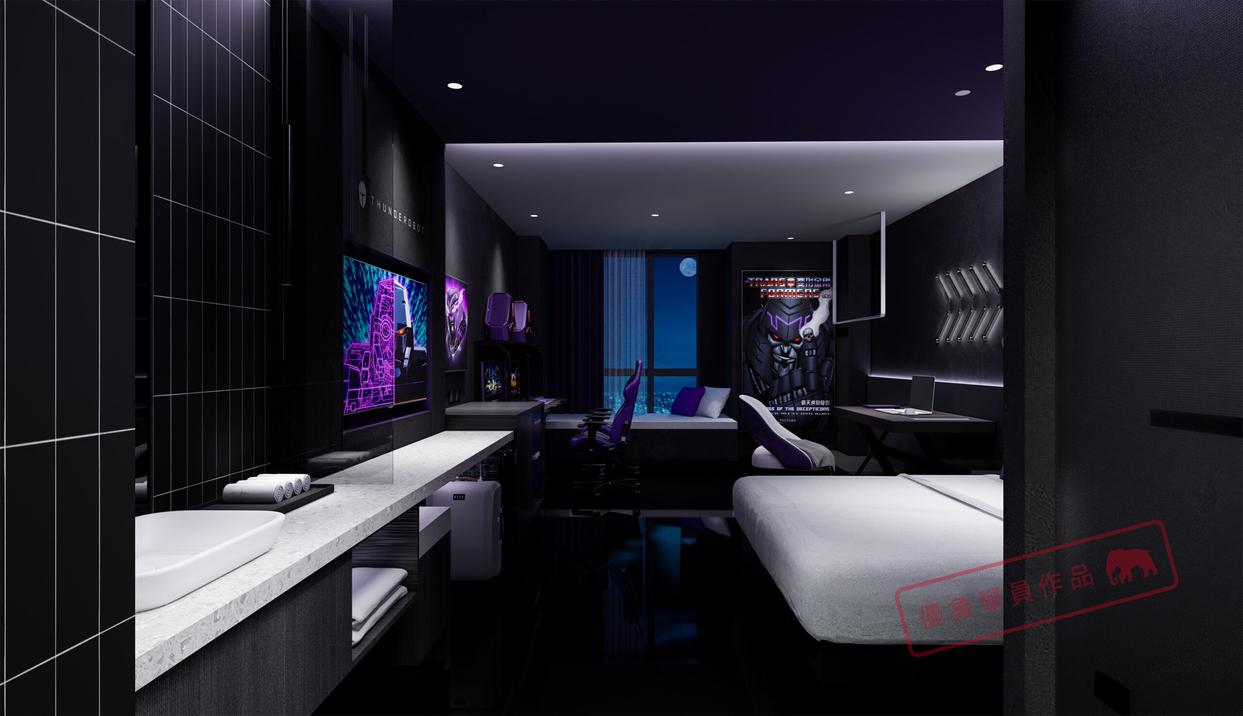 项目是我在泸州的一个项目,第一个电竞主题酒店,4层2000平方左右 我负责做大堂和包房部分。