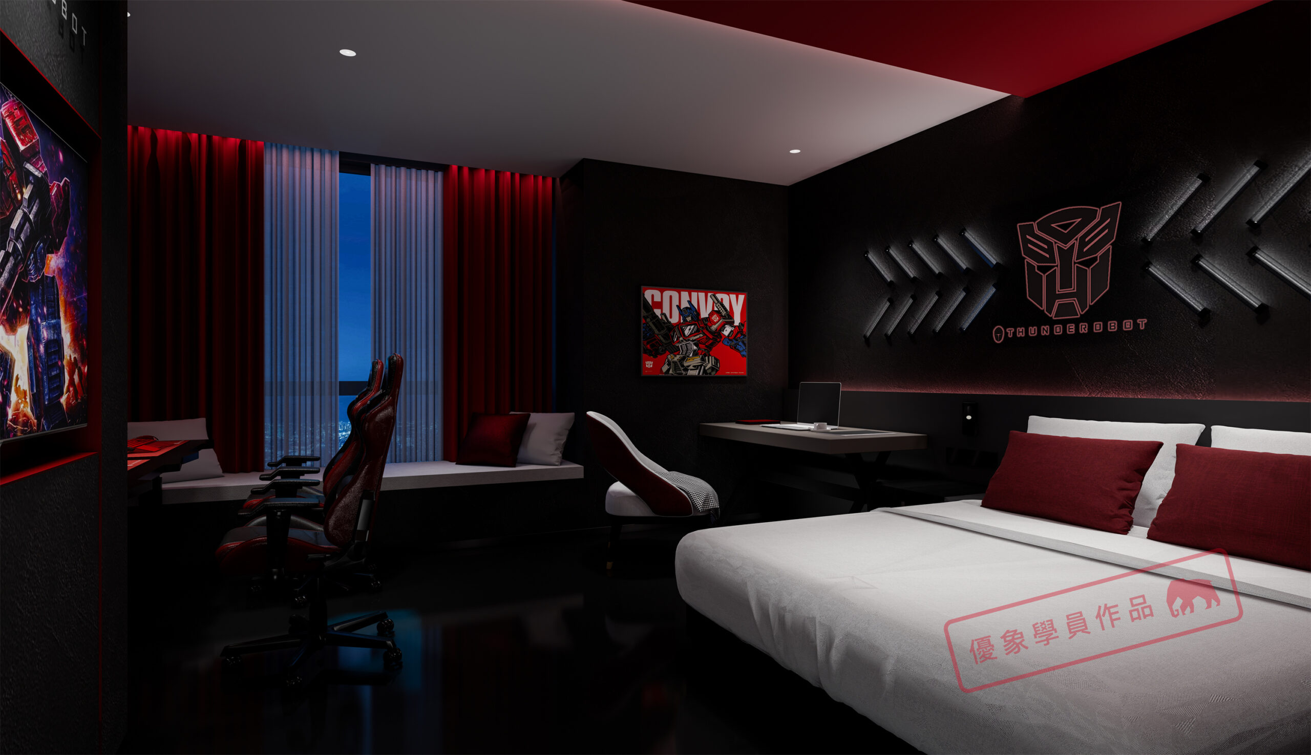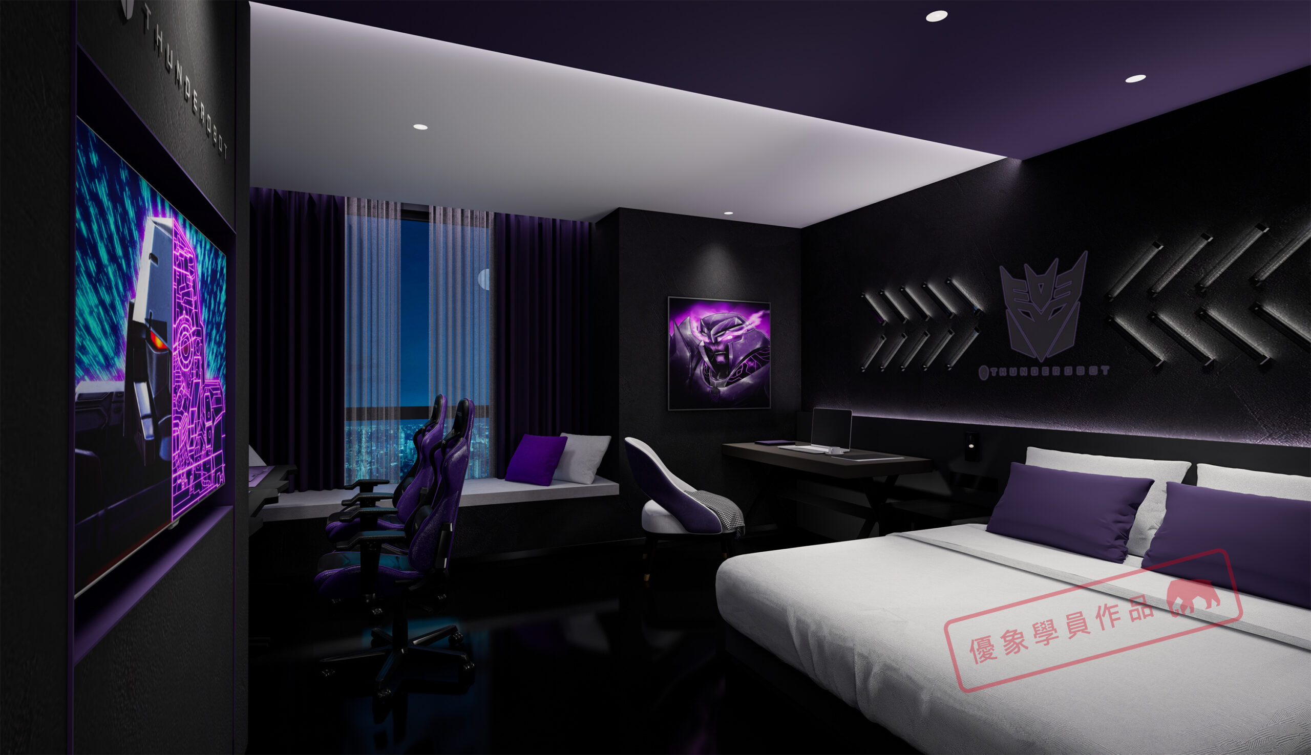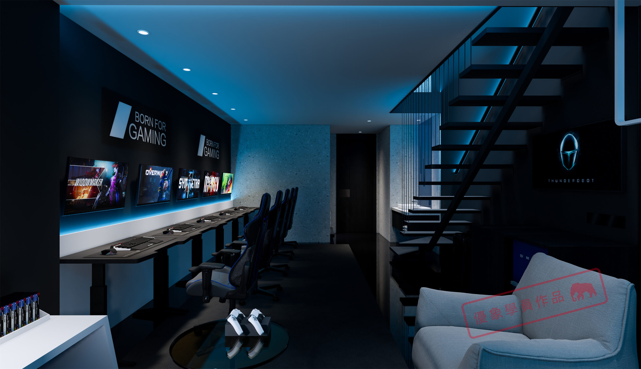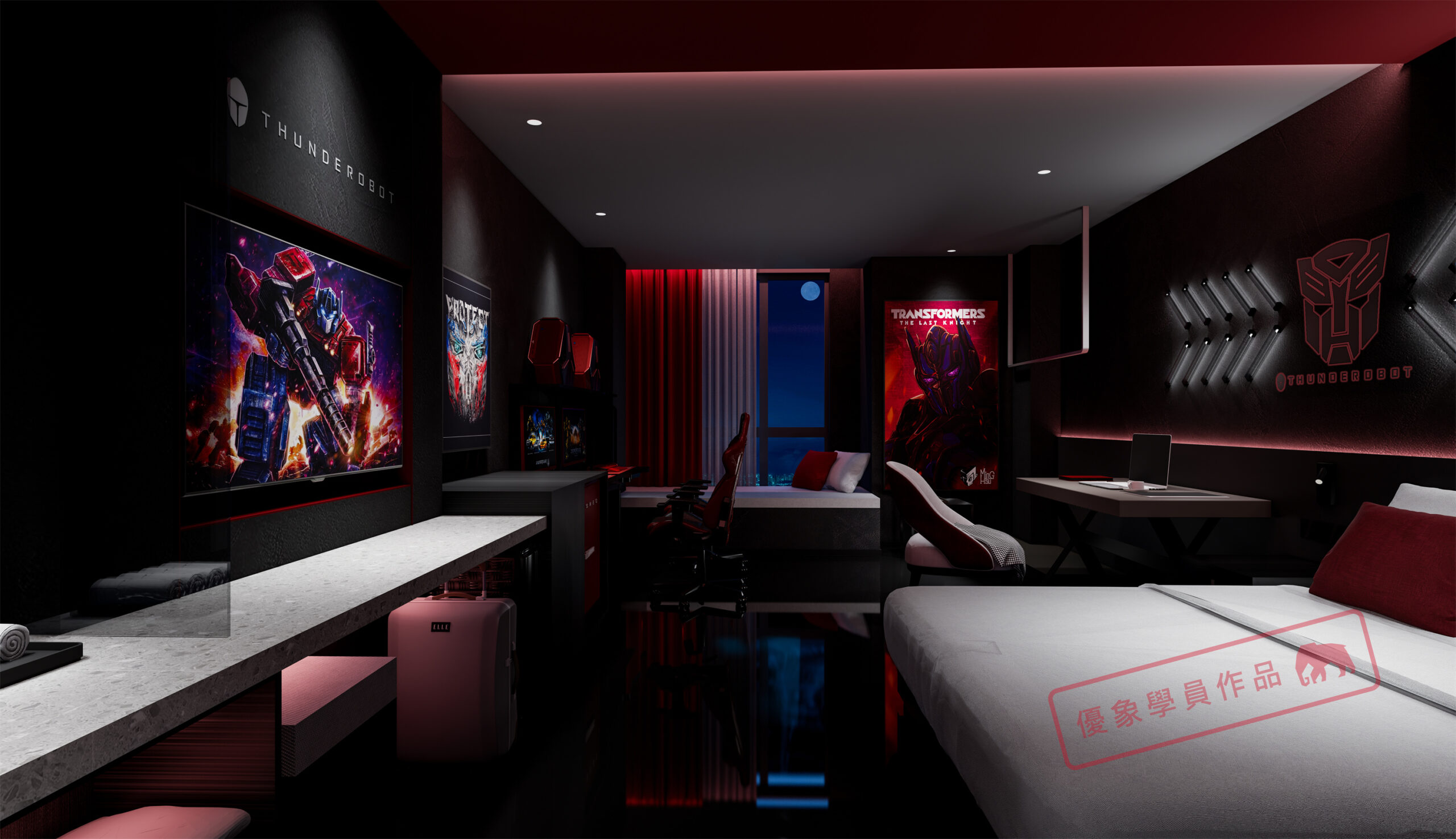 项目是我在泸州的一个项目,第一个电竞主题酒店,4层2000平方左右 我负责做大堂和包房部分。