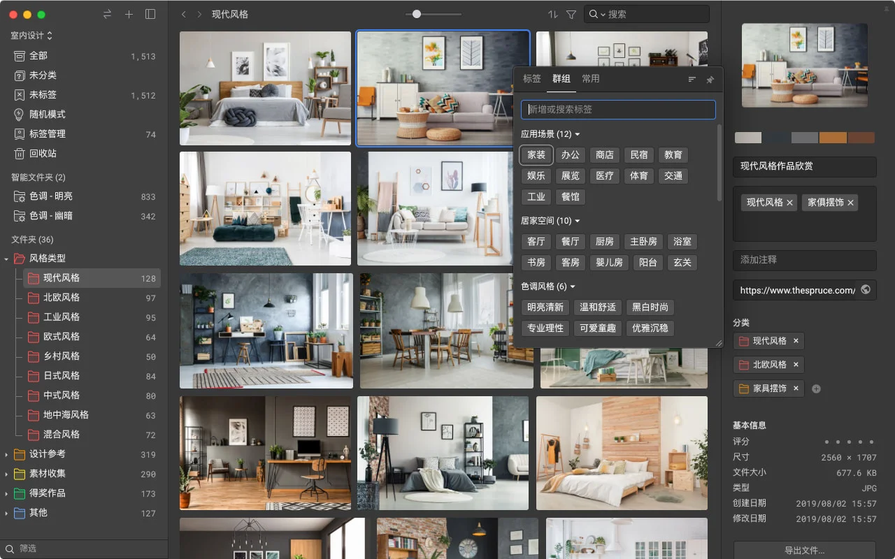 面对日积月累的凌乱素材,分类的效率越来越低。Eagle 提供多种分类方式,可以高效整理你手边大量的素材。