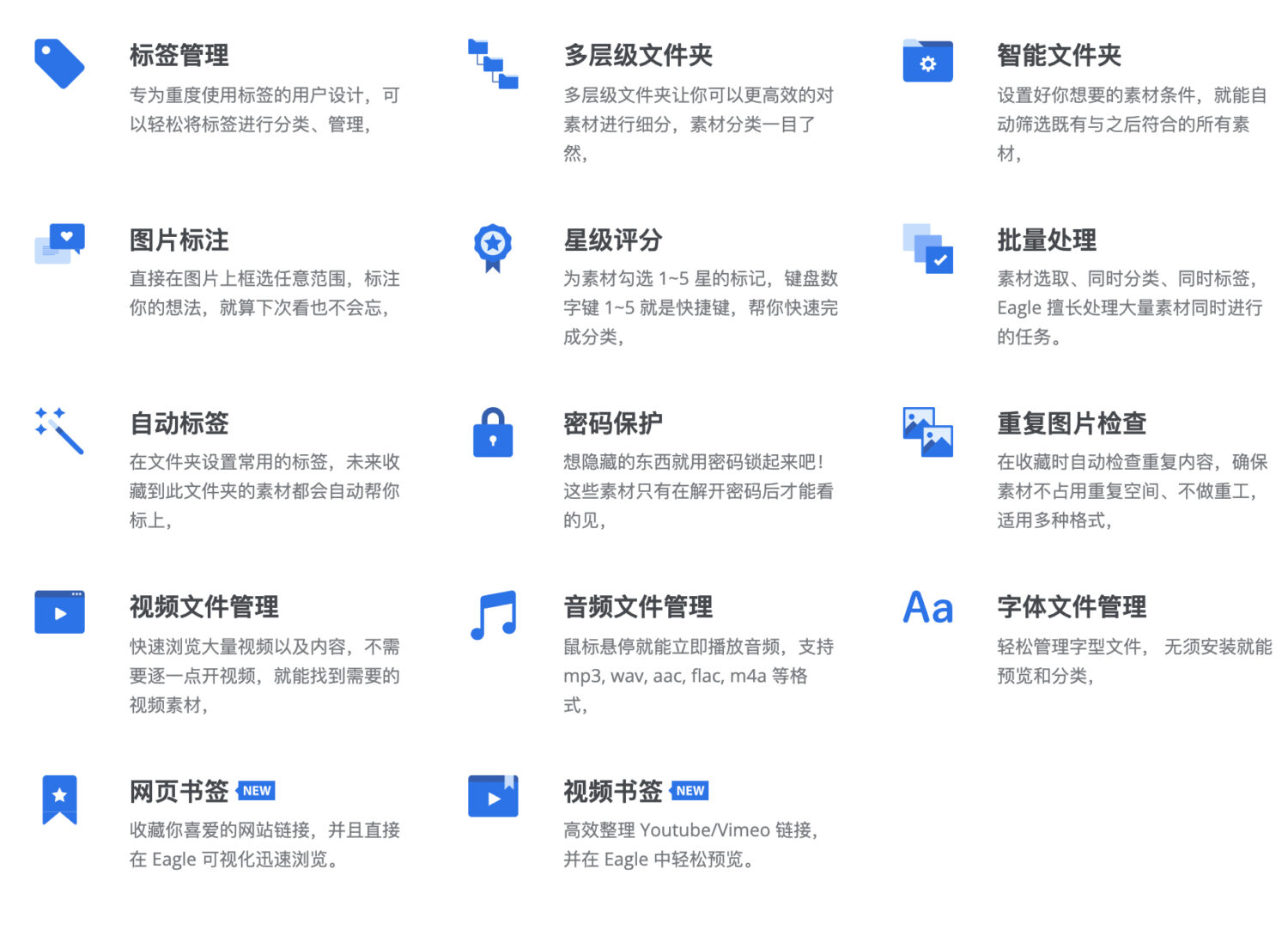 Eagle 满足你在素材管理上各种需求,无论是数万张灵感图片、还是拥有上百种分类,都可以用你从未有过的流畅感,快速完成任务。