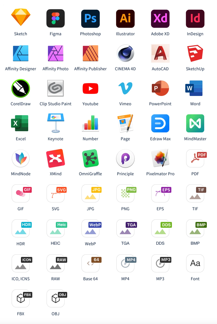 所有文件格式都可以在 Eagle 管理,拖拽到 Eagle 就能添加;也可以建立分类文件夹,管理项目所需使用的各种文件。
