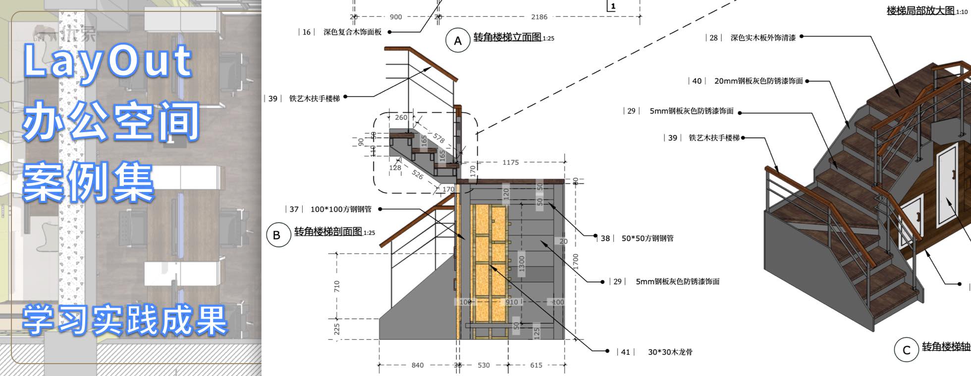 这个项目在出图前,学员使用了Enscape完成了效果图的方案制作,确定方案之后,模型的利用价值就很高了,直接拿来使用输出LayOut图纸,一个人独立完成从设计建模、效果图、施工图全过程。