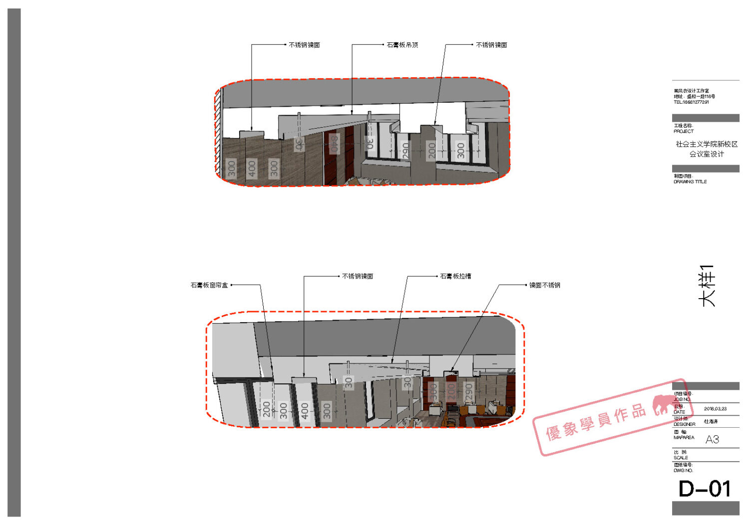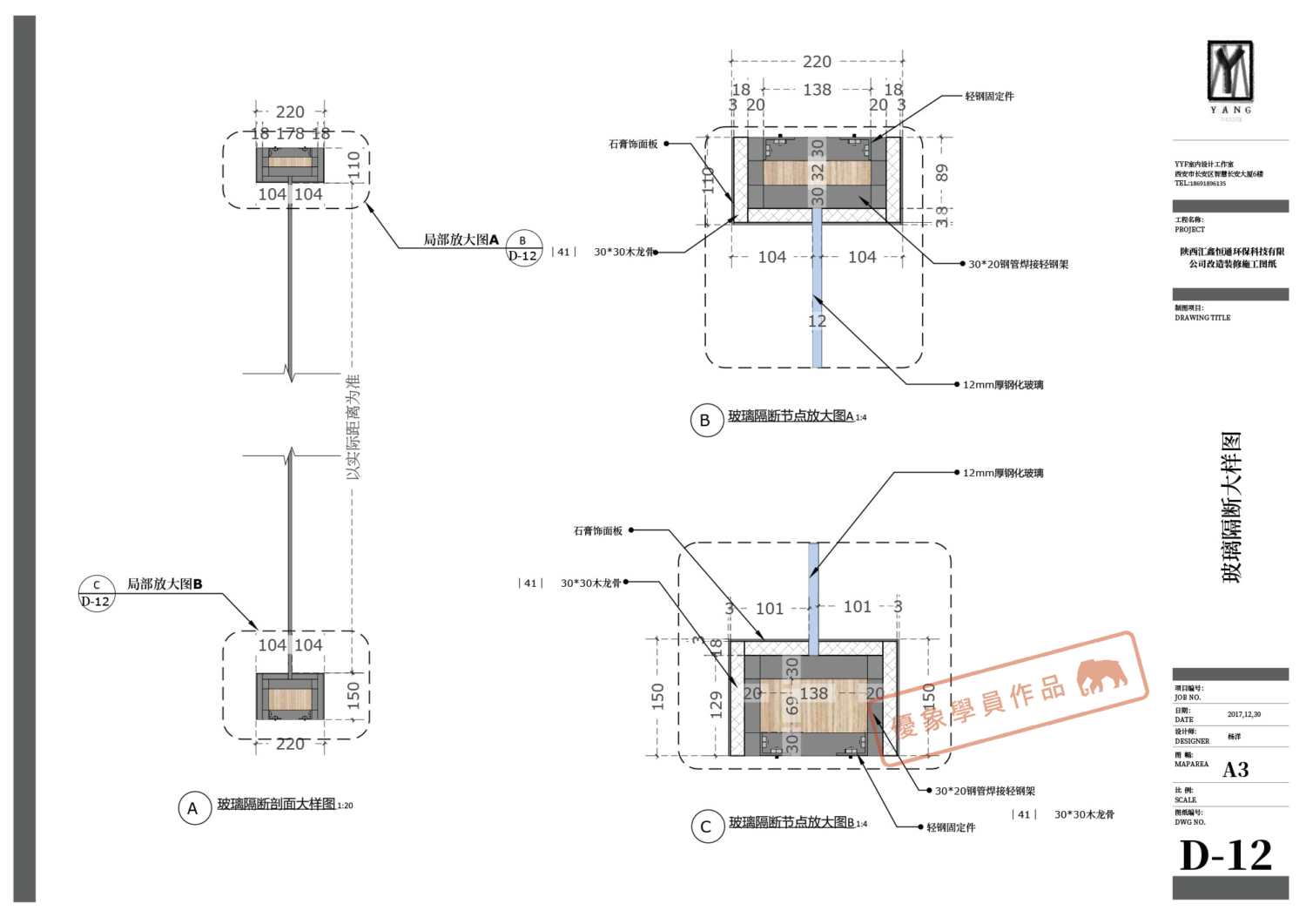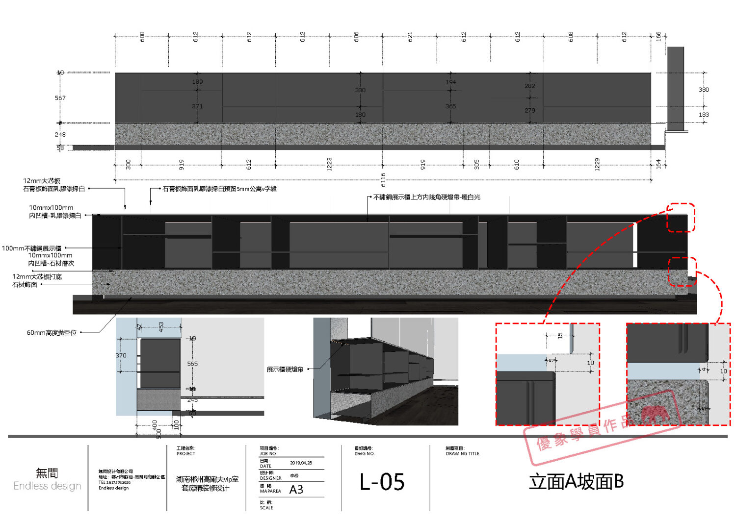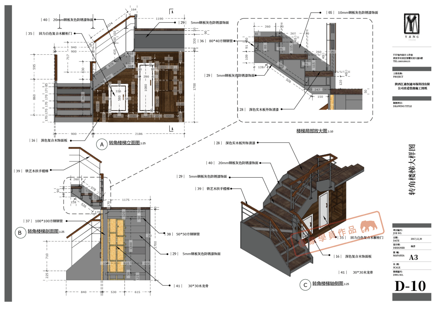 并且设计师对部分造型需要单独说明的,进行了图纸的输出表现,更加清晰说明单独构件的制作要求和尺寸。