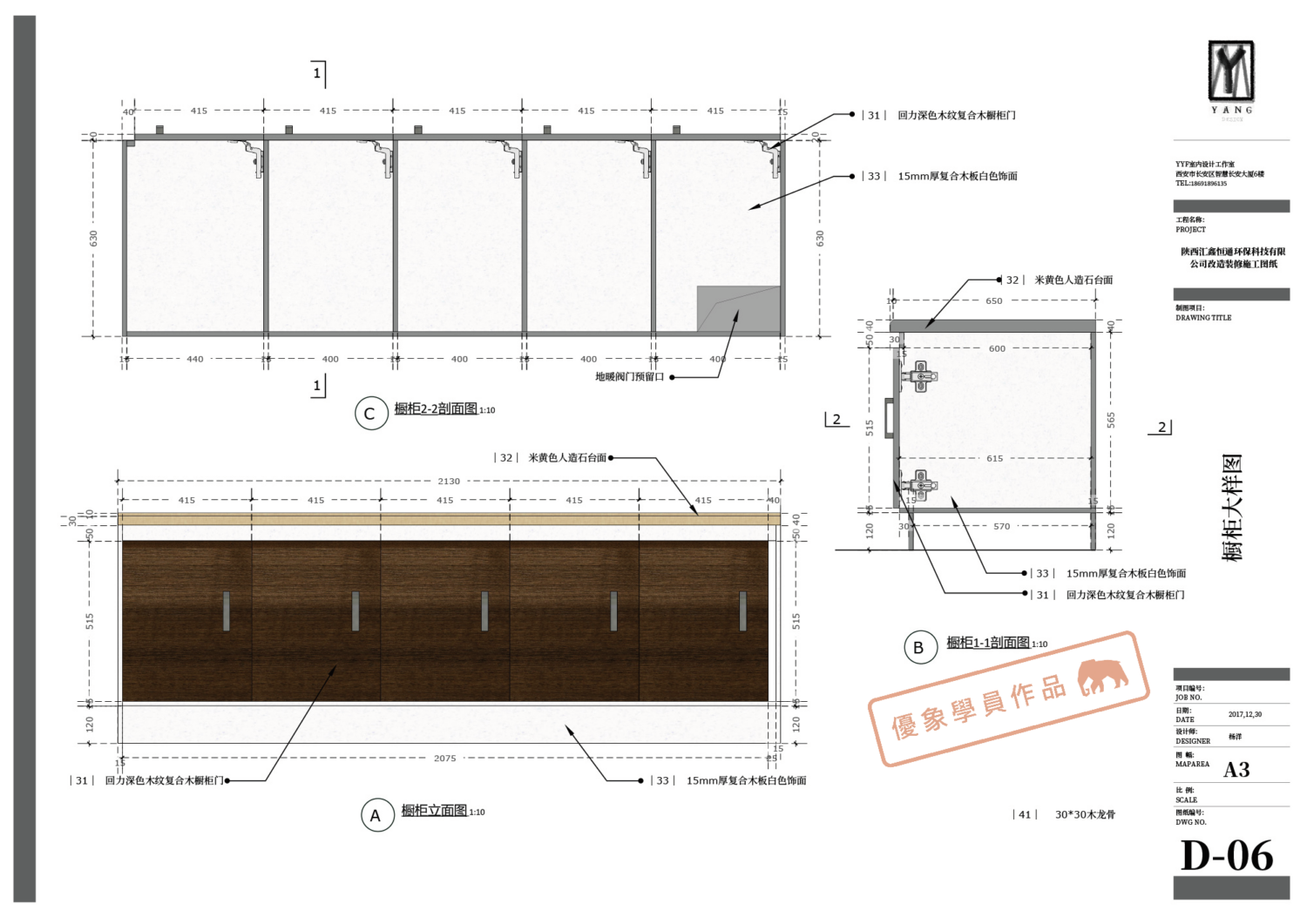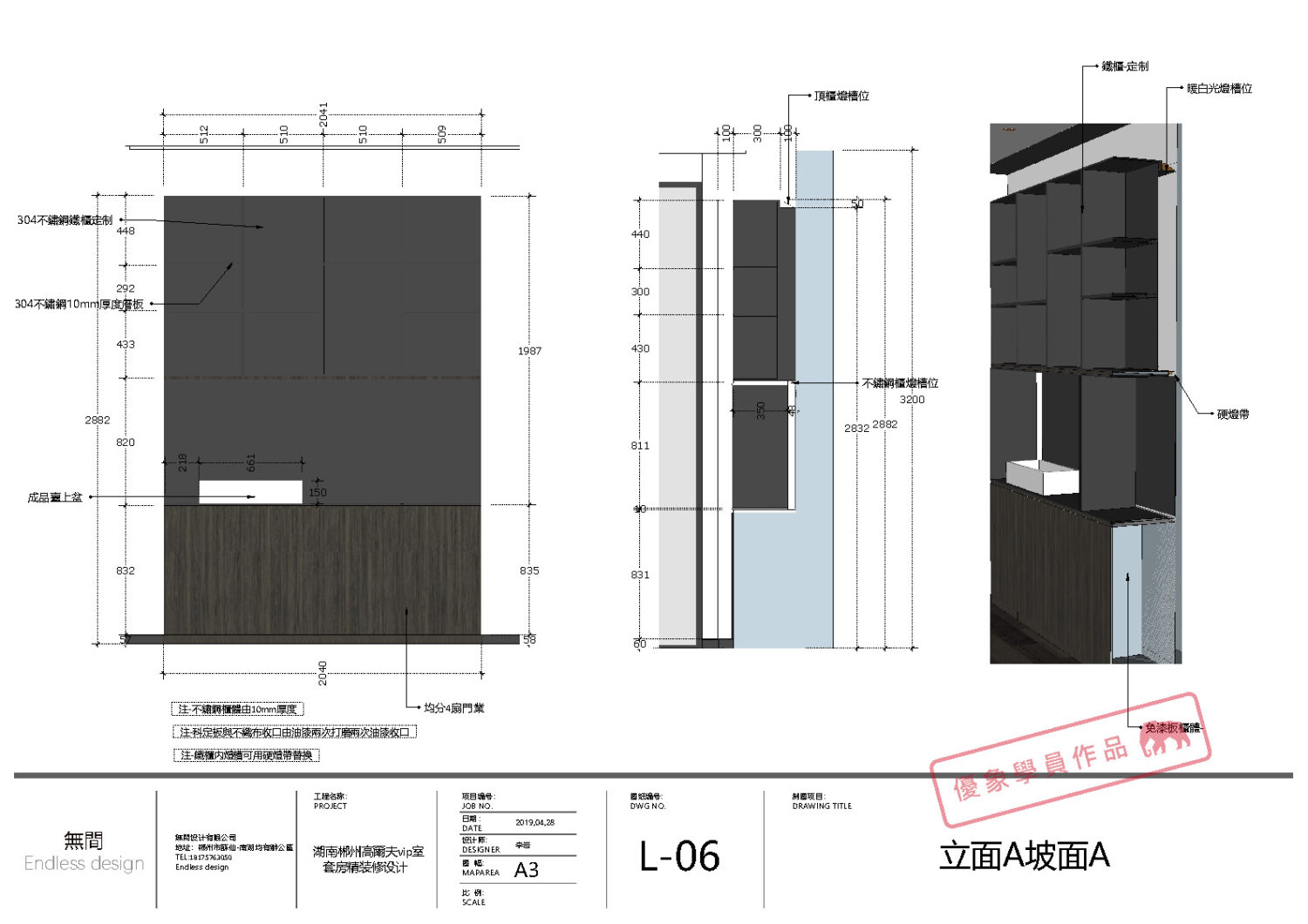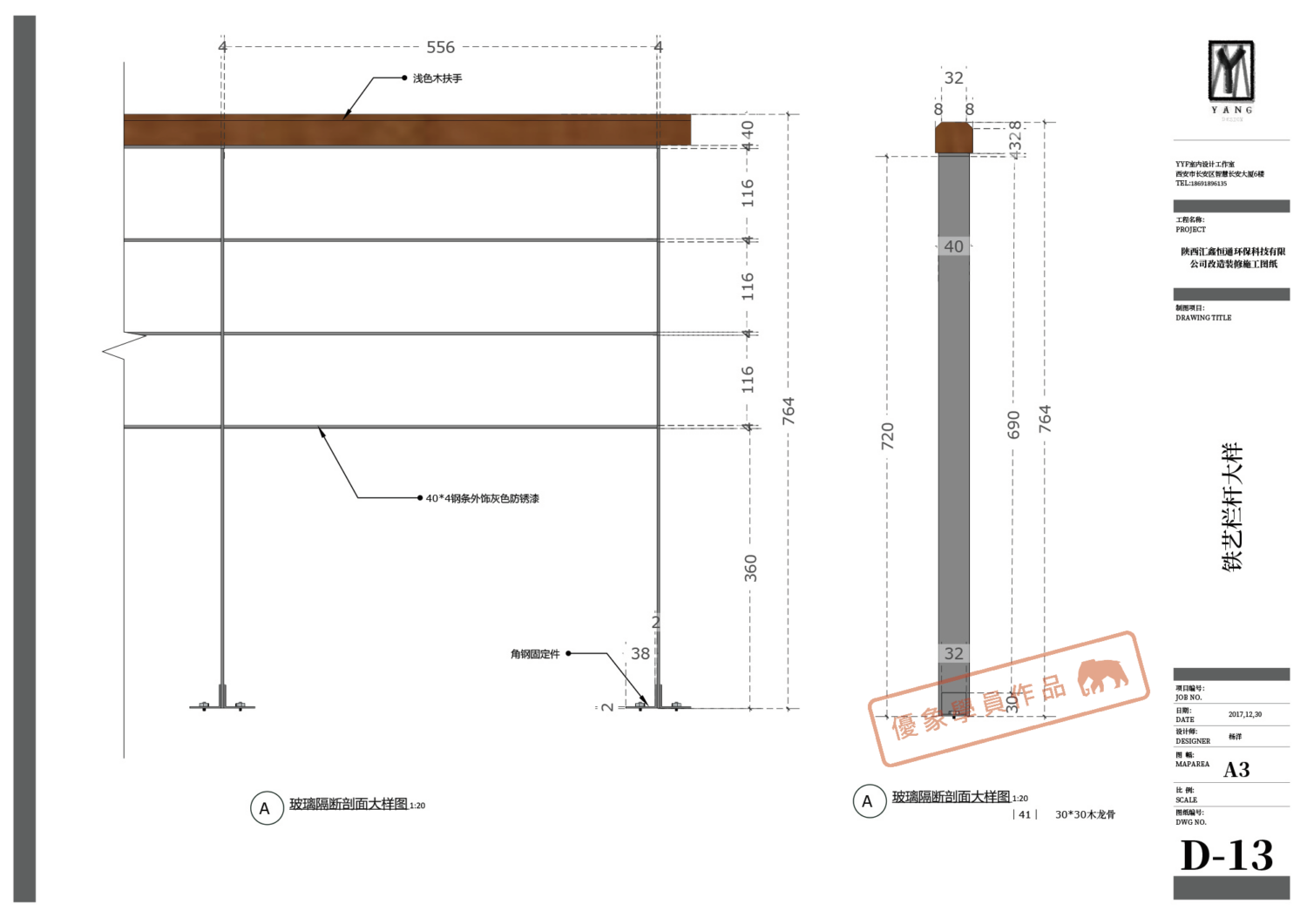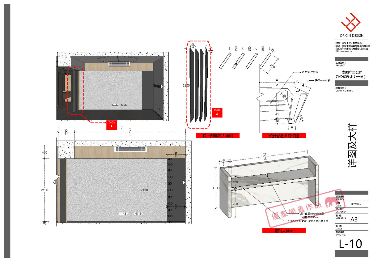 并且设计师对部分造型需要单独说明的,进行了图纸的输出表现,更加清晰说明单独构件的制作要求和尺寸。