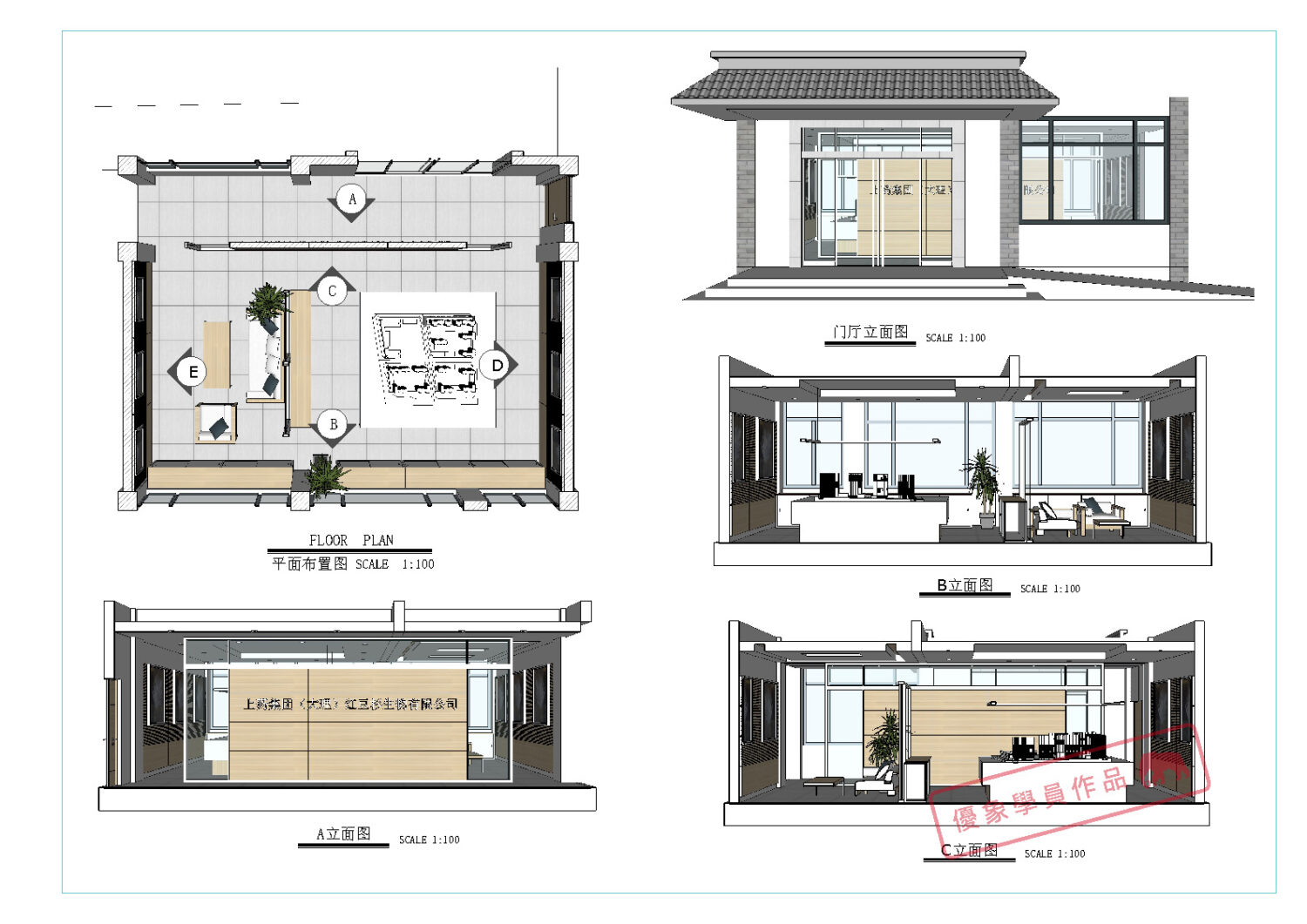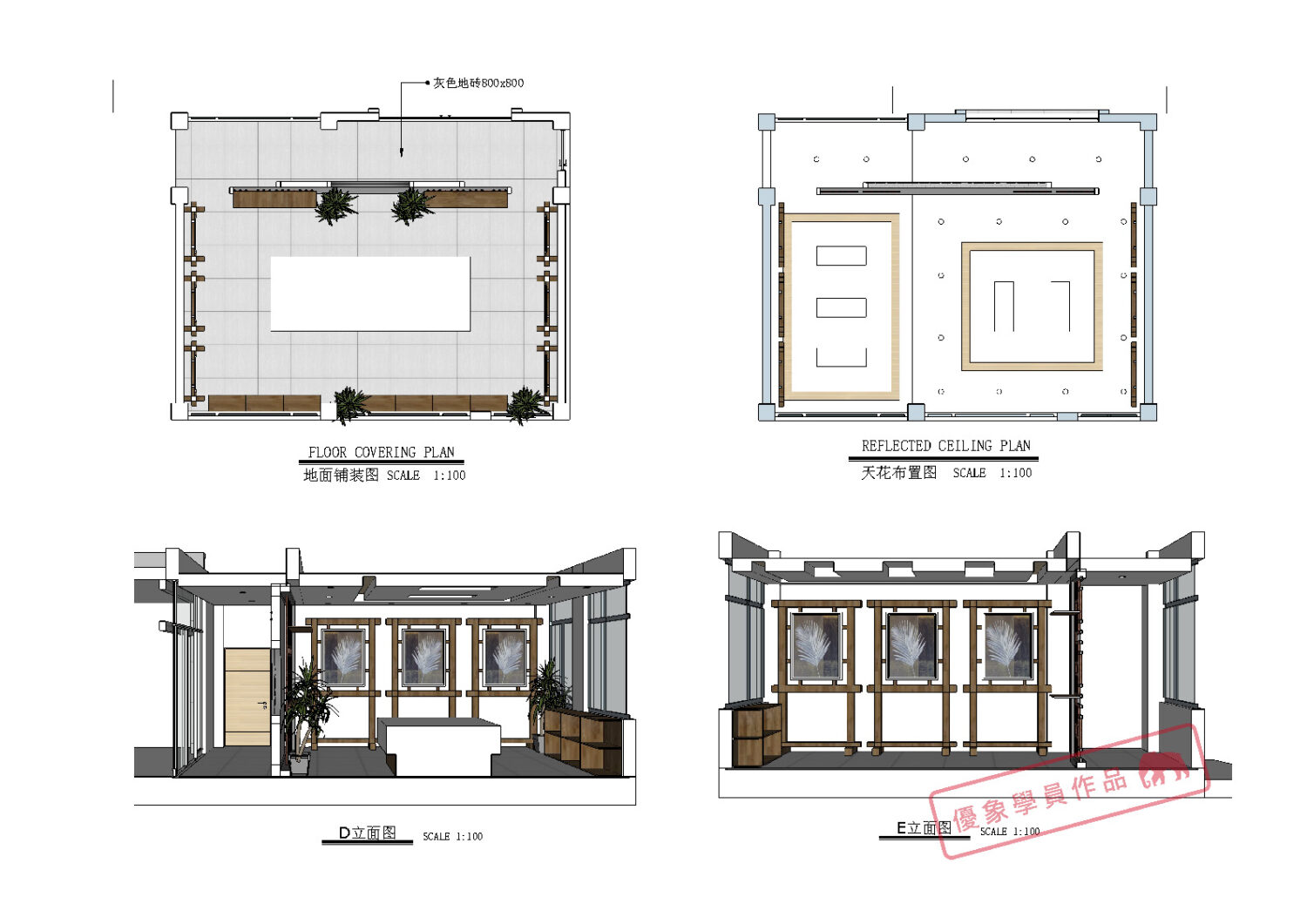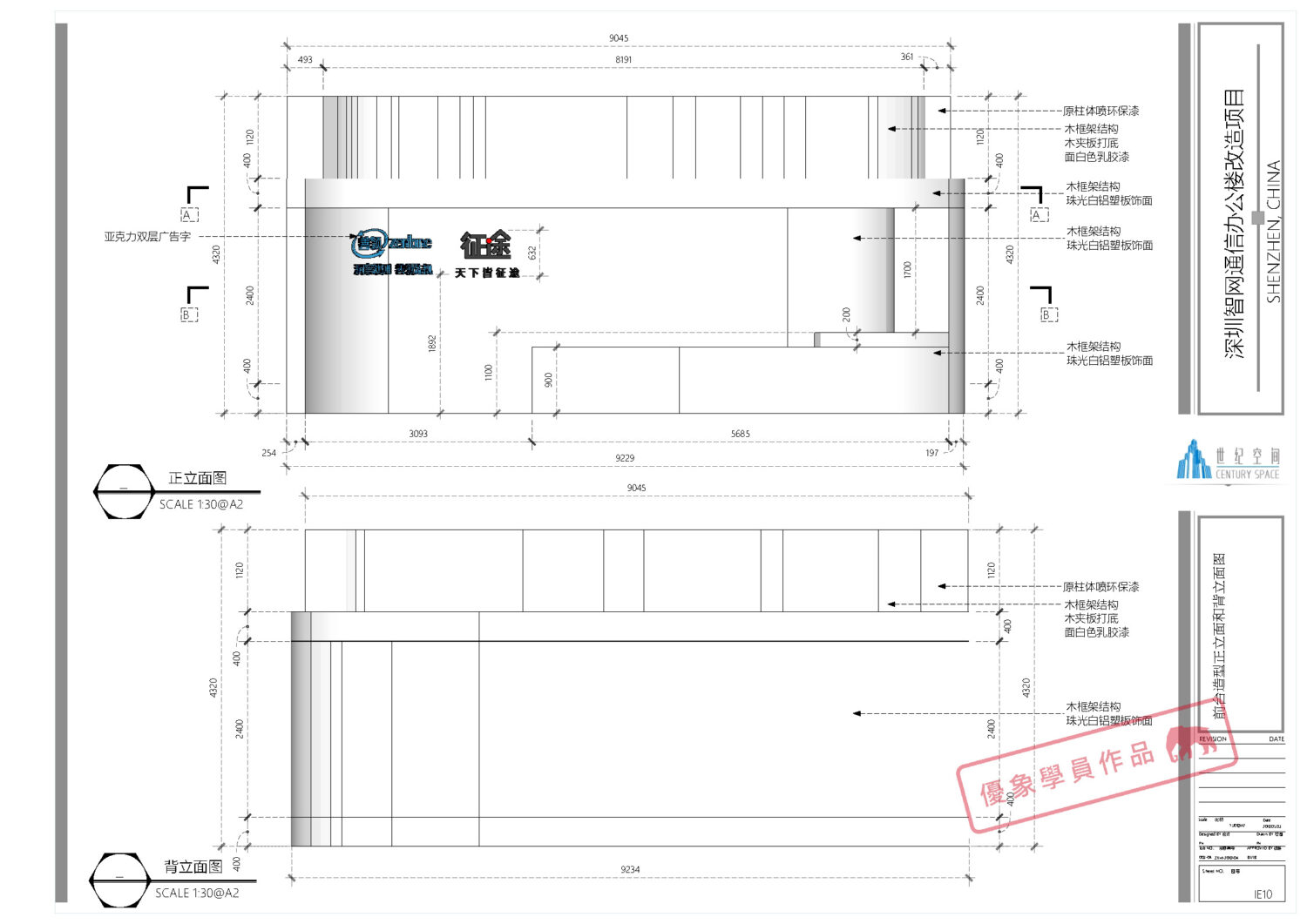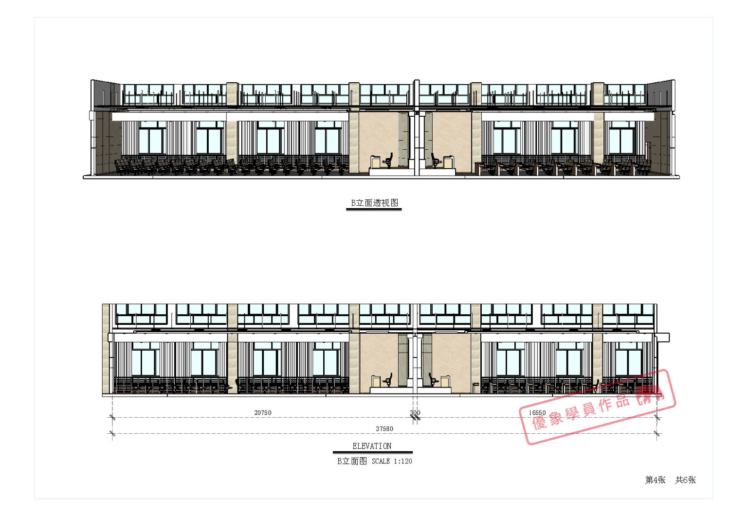 这套项目学员使用LayOut只制作了立面图,平面类的图纸可能使用了CAD输出,因为项目前期需要提前给CAD的原因,模型全部出来后才能输出Layout整套图纸就无法跟上实际的进度需求,所以就采用了CAD+LayOut的灵活出图方案。