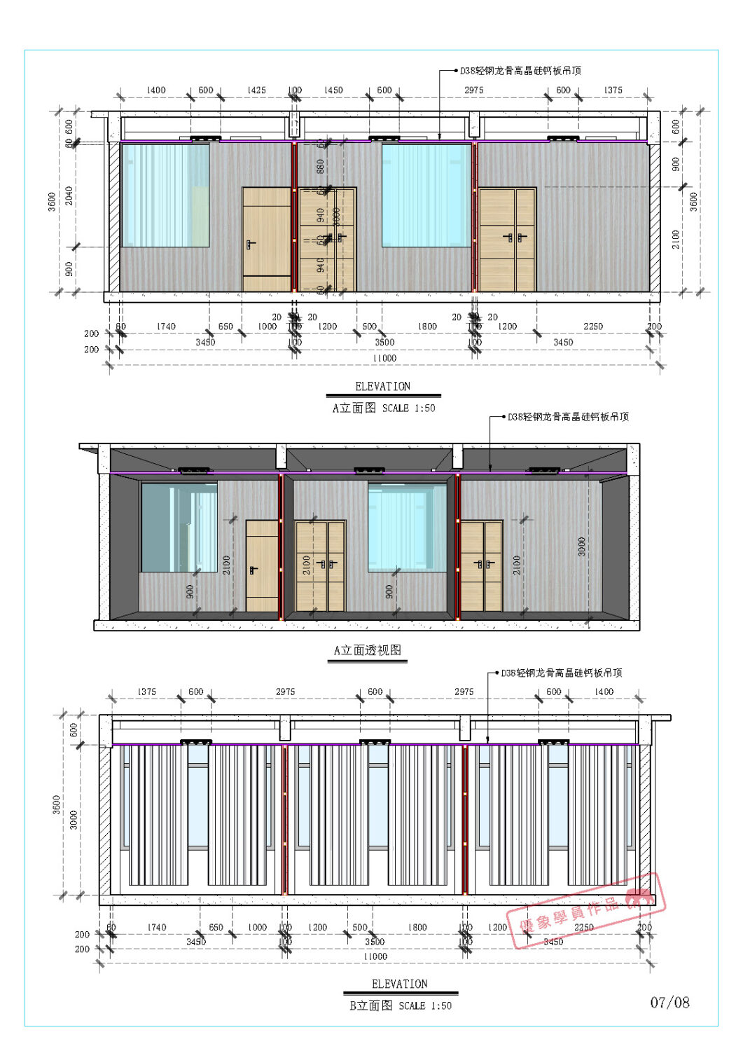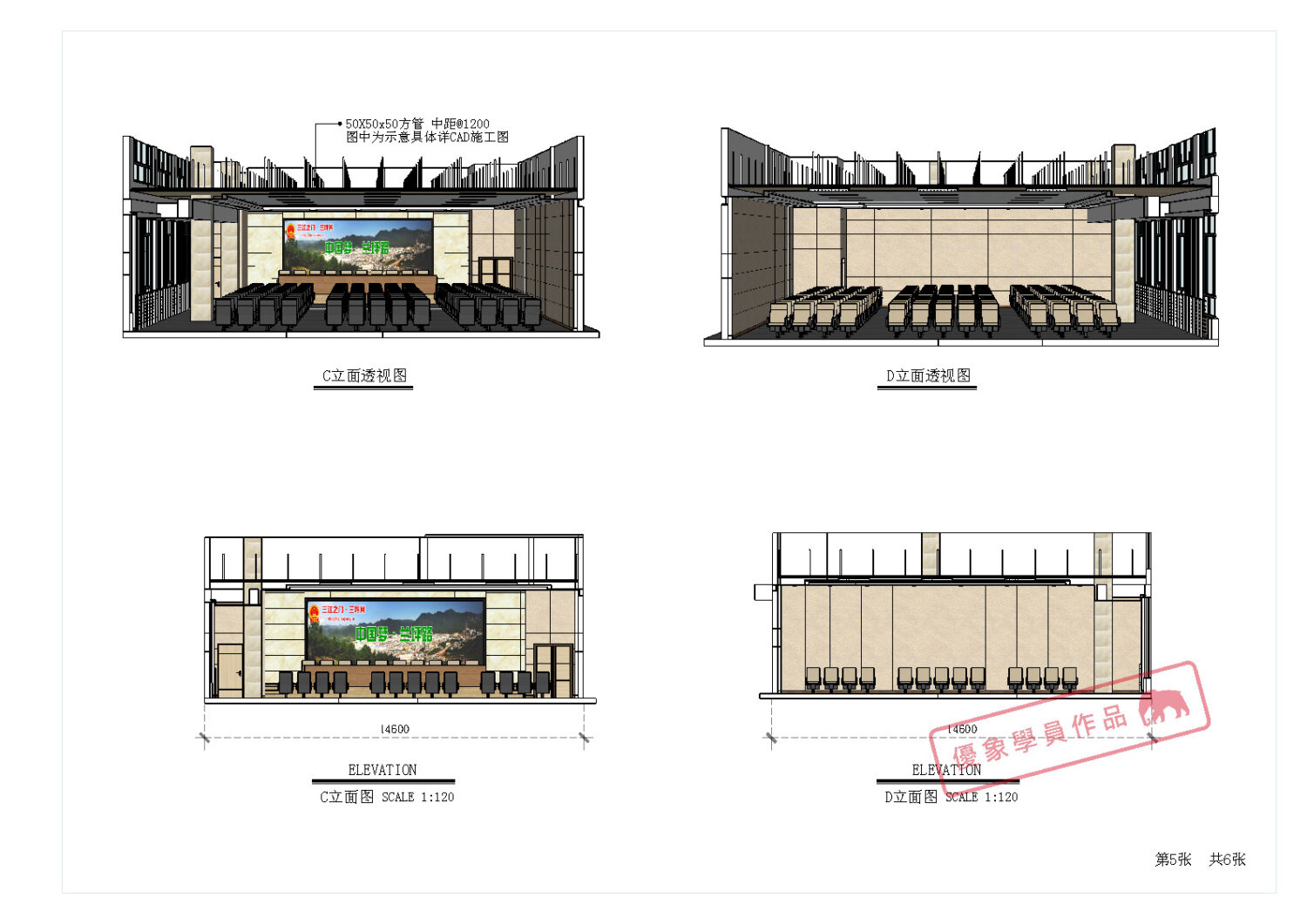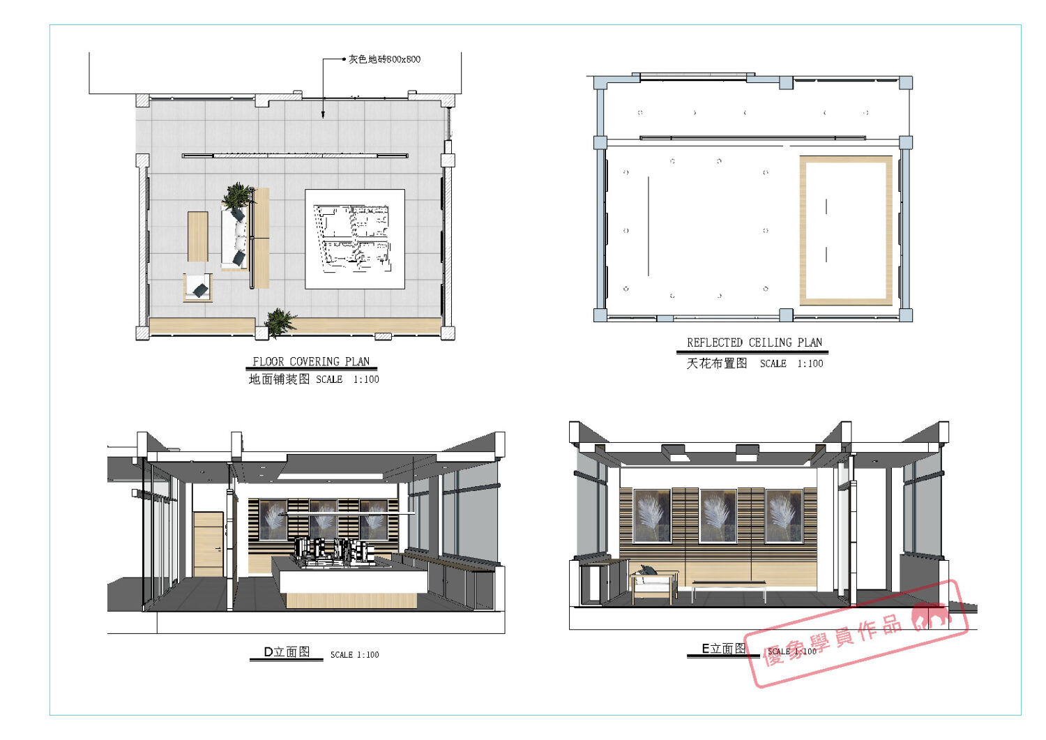 这套项目学员使用LayOut只制作了立面图,平面类的图纸可能使用了CAD输出,因为项目前期需要提前给CAD的原因,模型全部出来后才能输出Layout整套图纸就无法跟上实际的进度需求,所以就采用了CAD+LayOut的灵活出图方案。