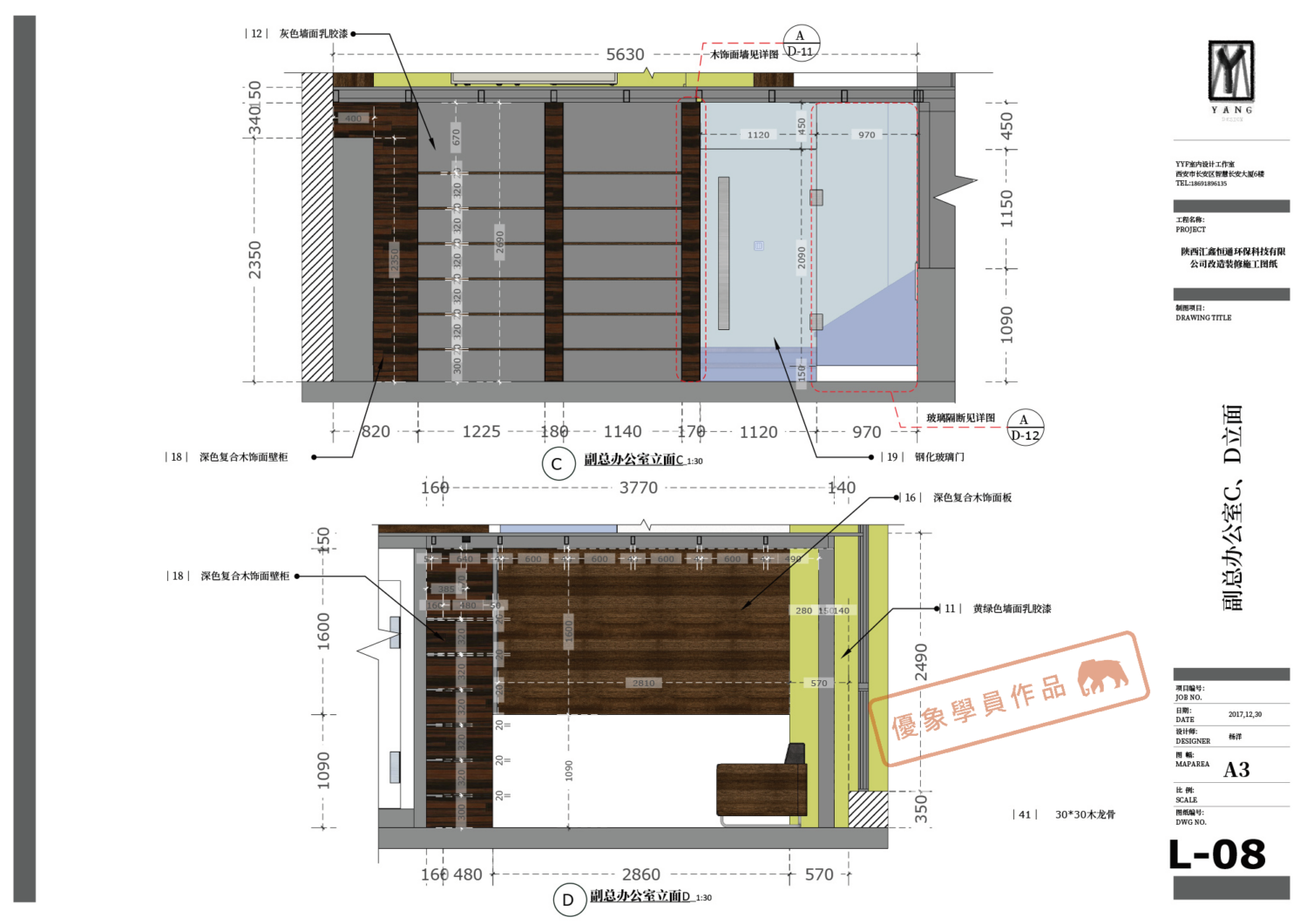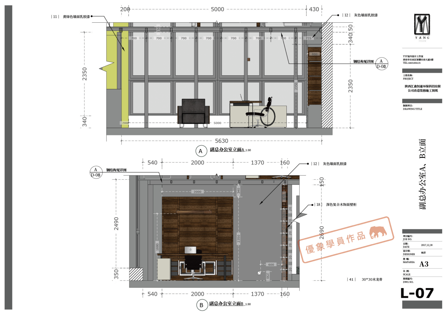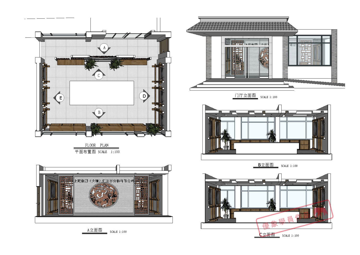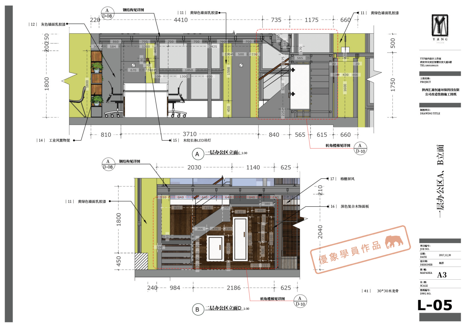 这套项目学员使用LayOut只制作了立面图,平面类的图纸可能使用了CAD输出,因为项目前期需要提前给CAD的原因,模型全部出来后才能输出Layout整套图纸就无法跟上实际的进度需求,所以就采用了CAD+LayOut的灵活出图方案。