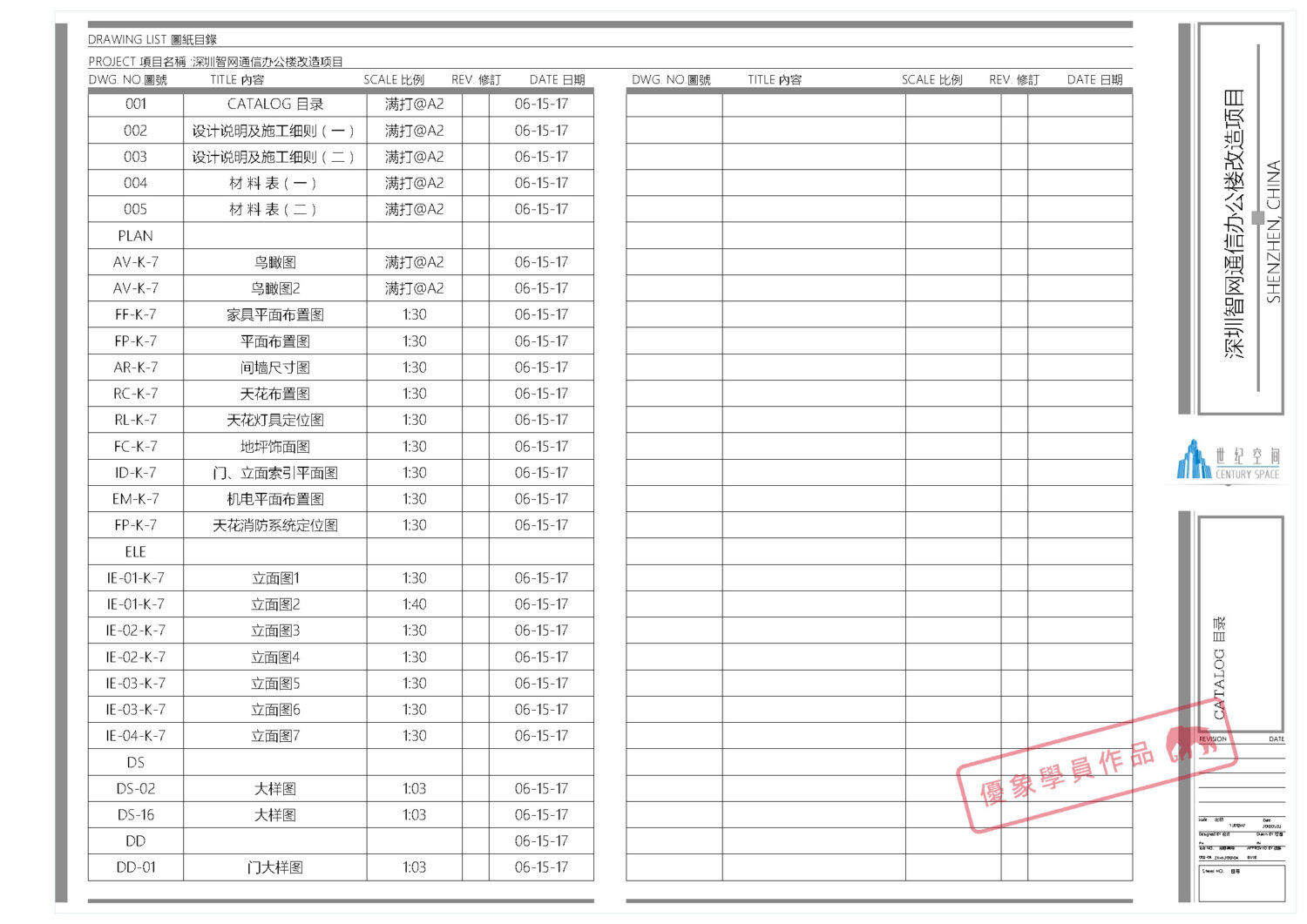 项目一:深圳智网通信办公楼项目改造装修施工图