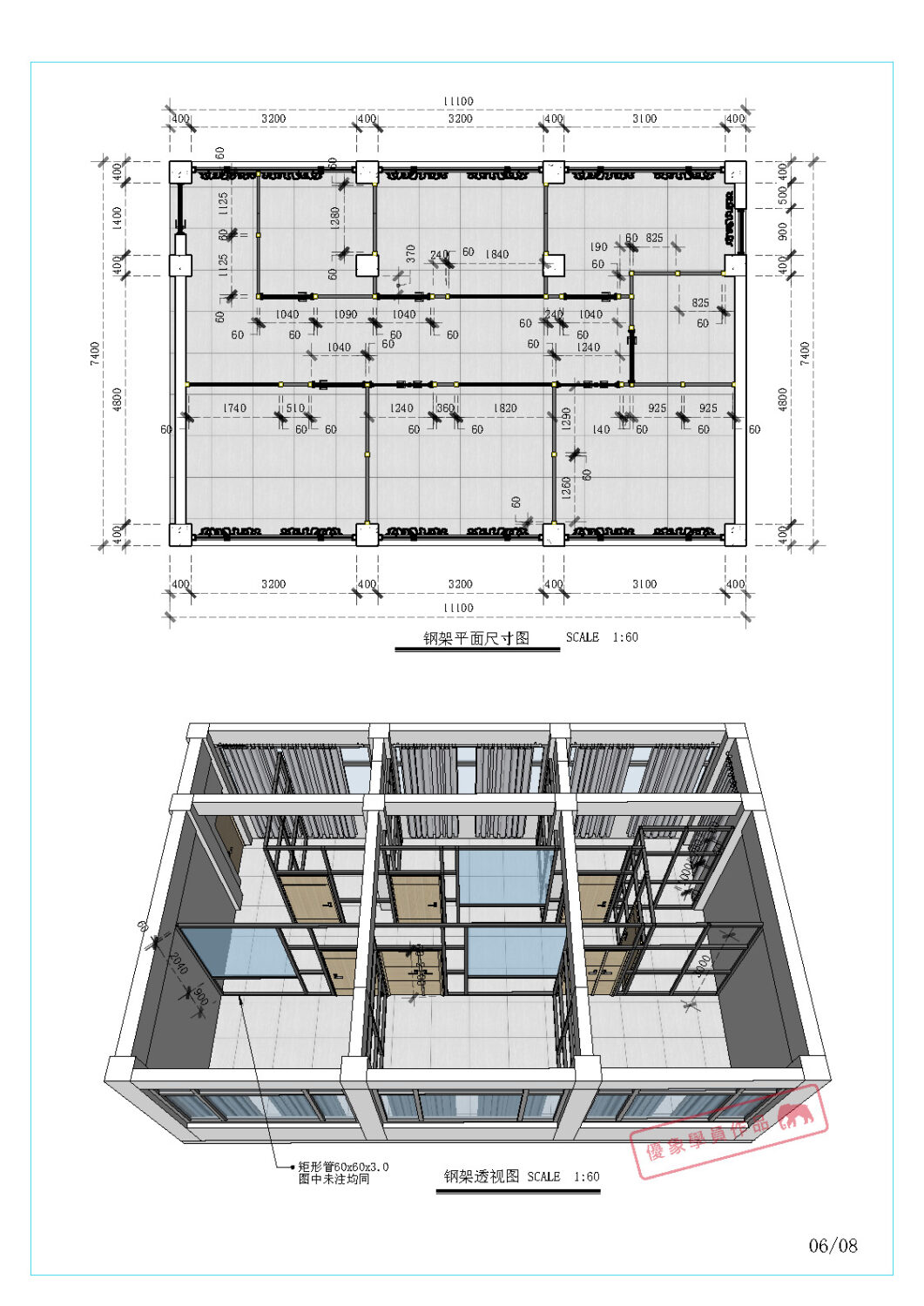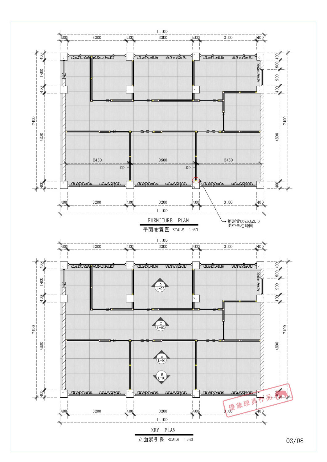 这个项目全套使用LayOut进行图纸表达,套用了LayOut课程所提供的模版,进行了快速的出图。