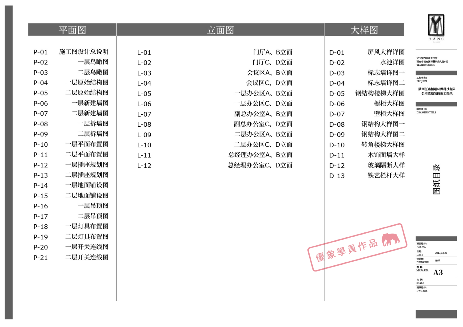 起初我们对模型的建模规范、深度都做了一对一的指导,并多次远程会议告诉如何进行解决,最后帮助学员完成了这套图纸,算是学员第一个的实践案例。