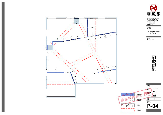 施工图中的立面有时候是倾斜的,例如这个模型中的间墙。对于LayOut出图是有有效的解决方案来表现的。