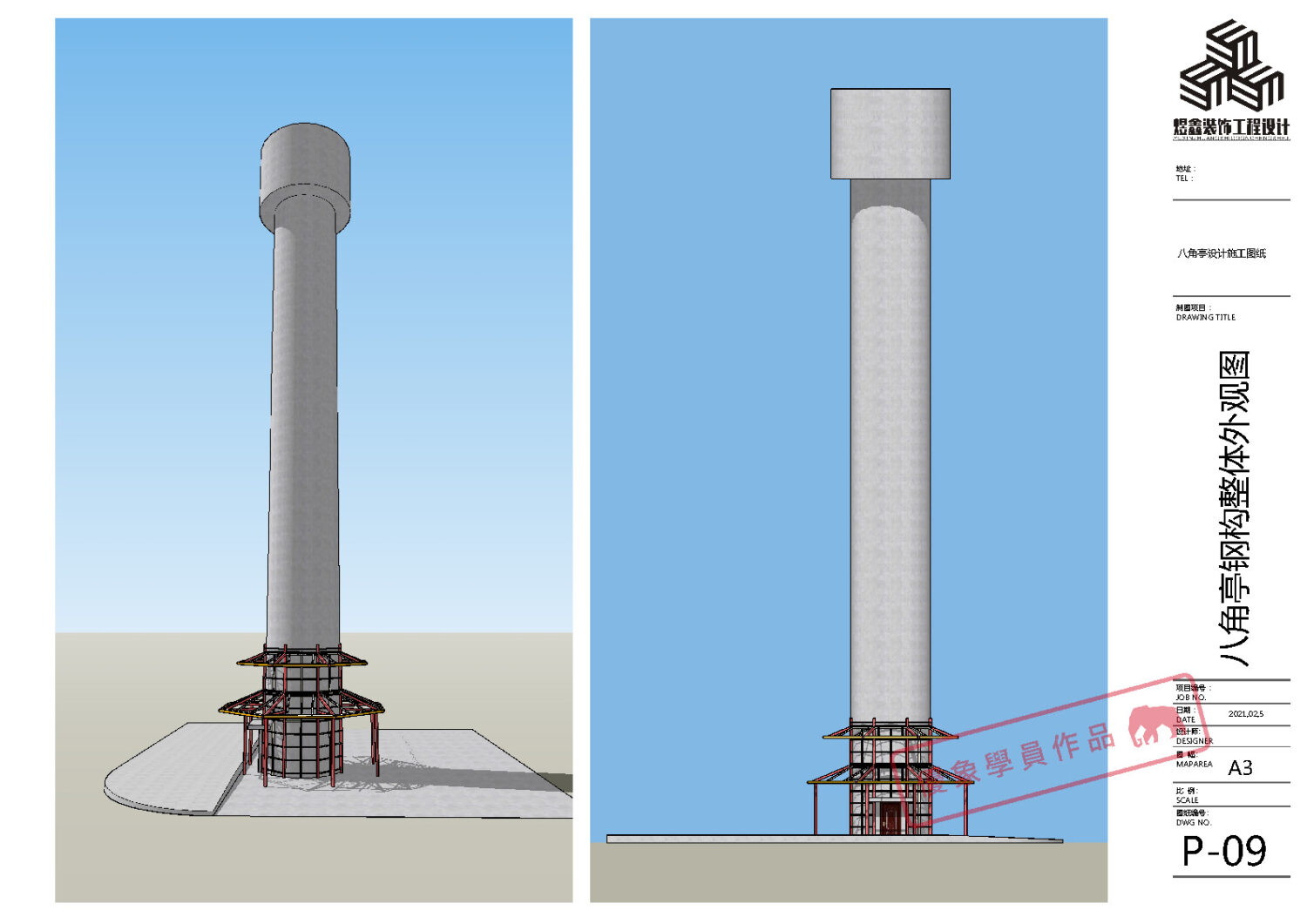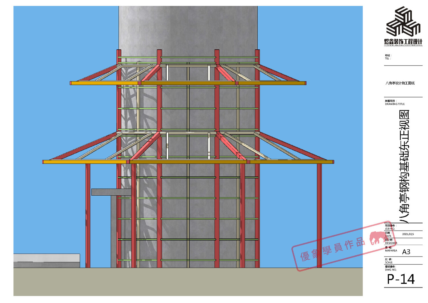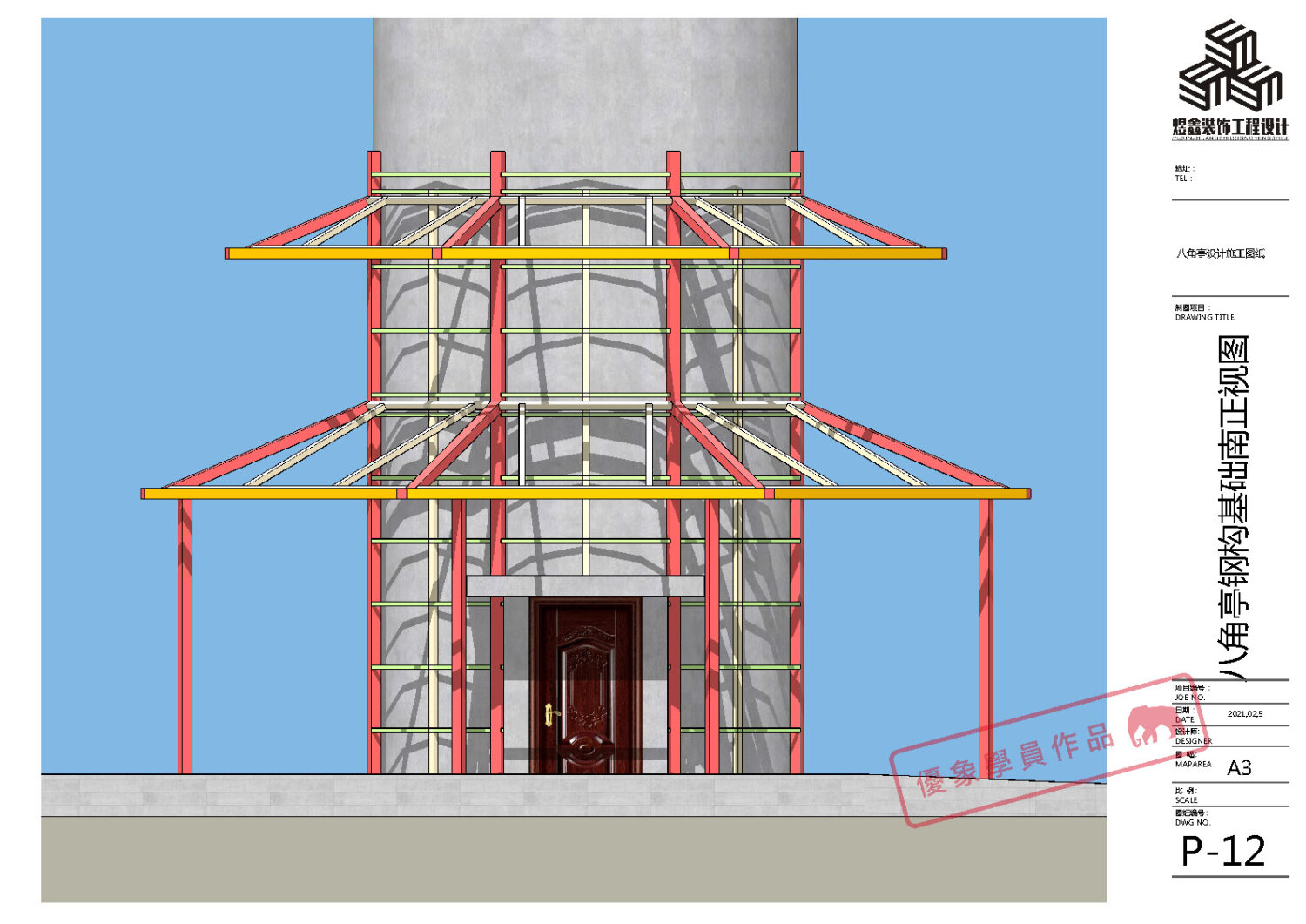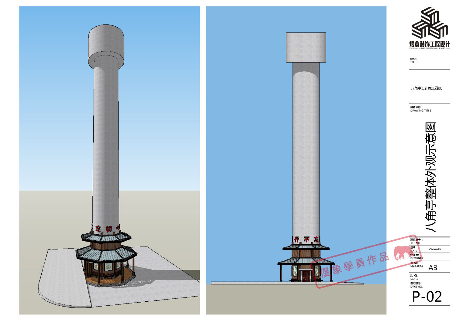 某单位水塔文化建设 八角亭设计施工图纸 (优象学员:往昔)
