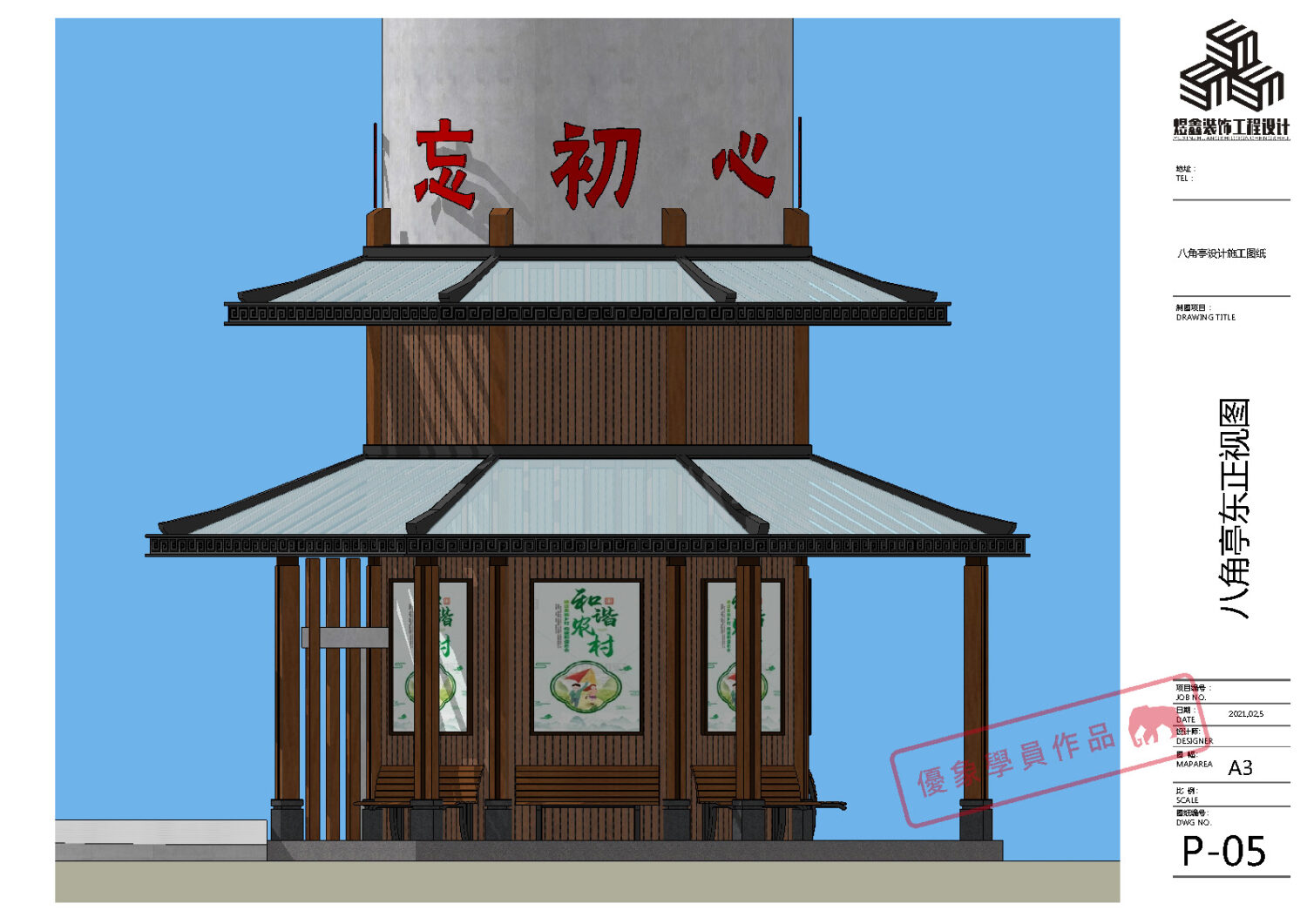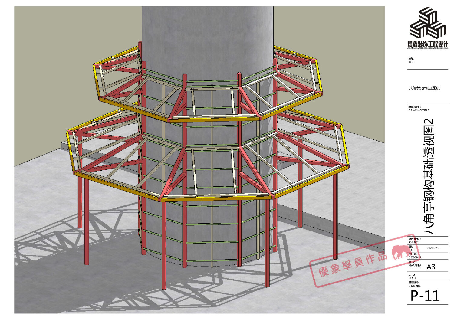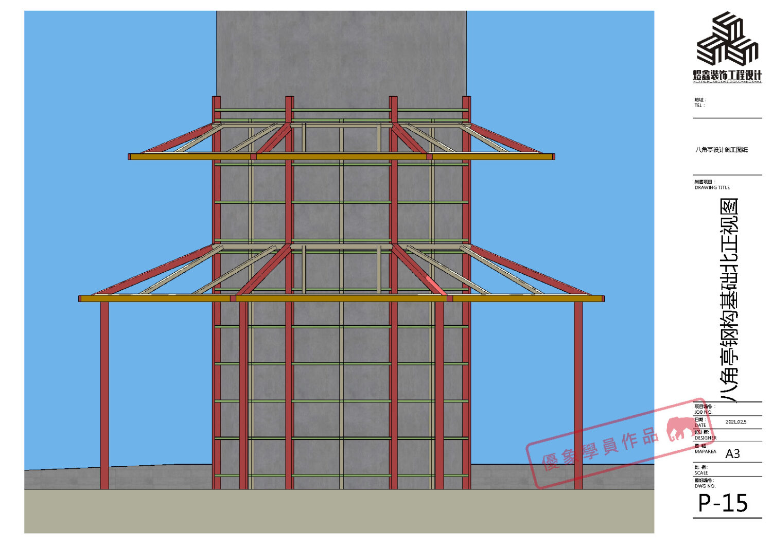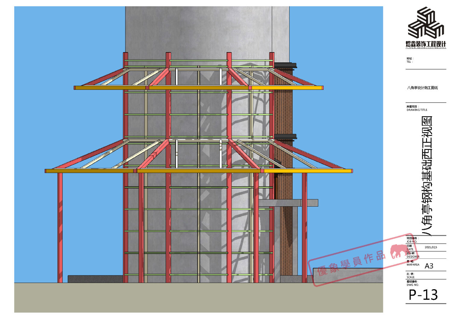 某单位水塔文化建设 八角亭设计施工图纸 (优象学员:往昔)