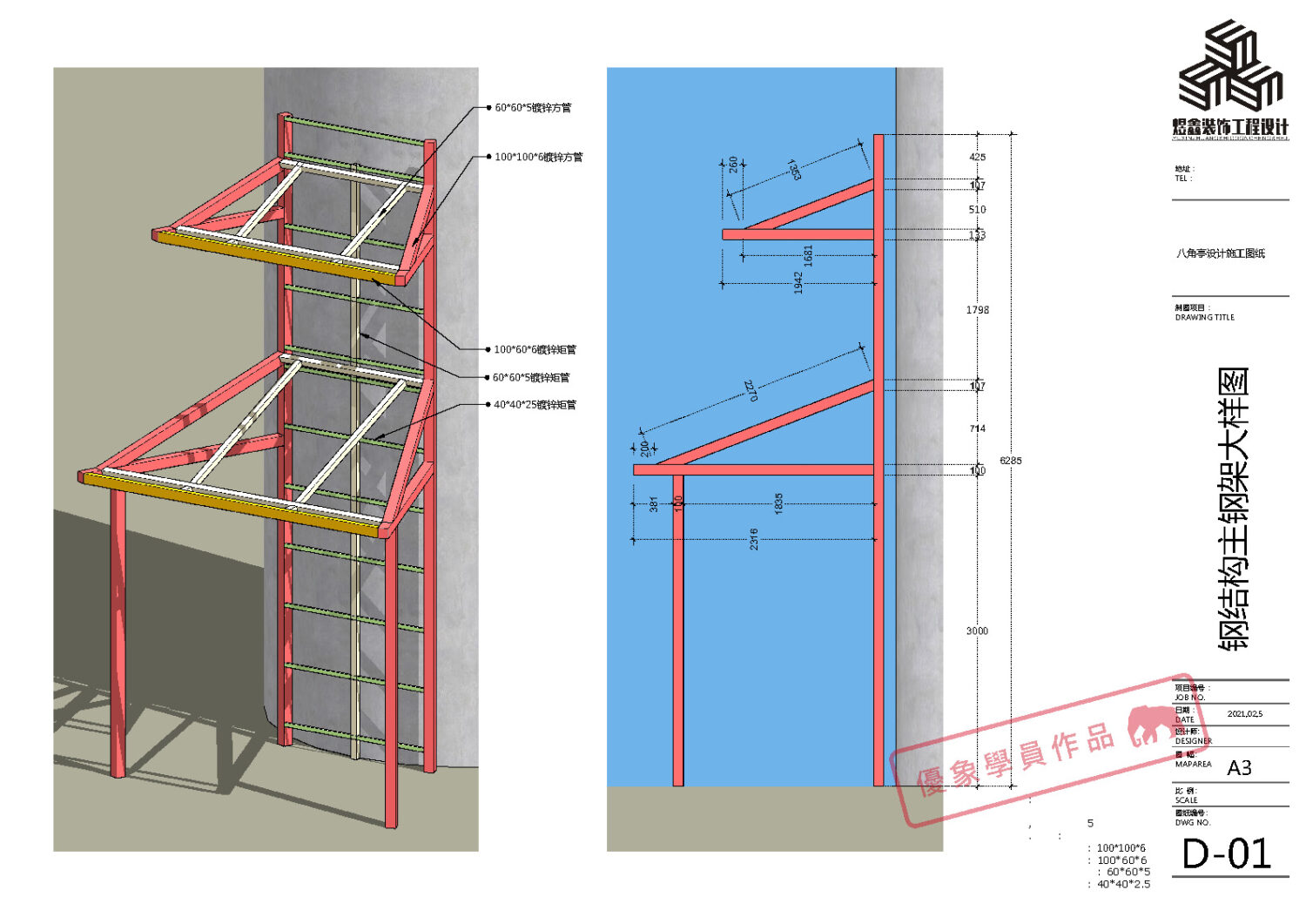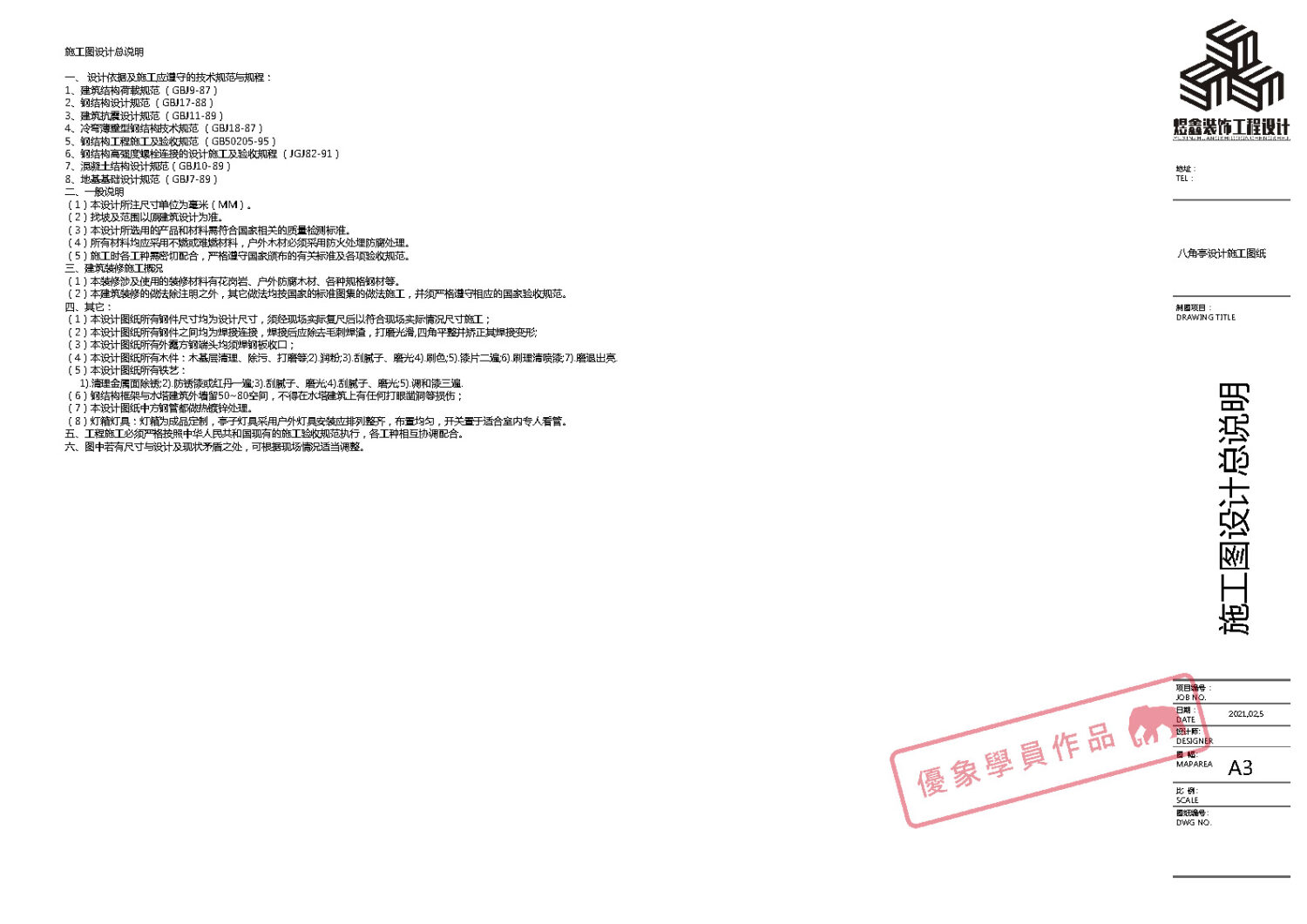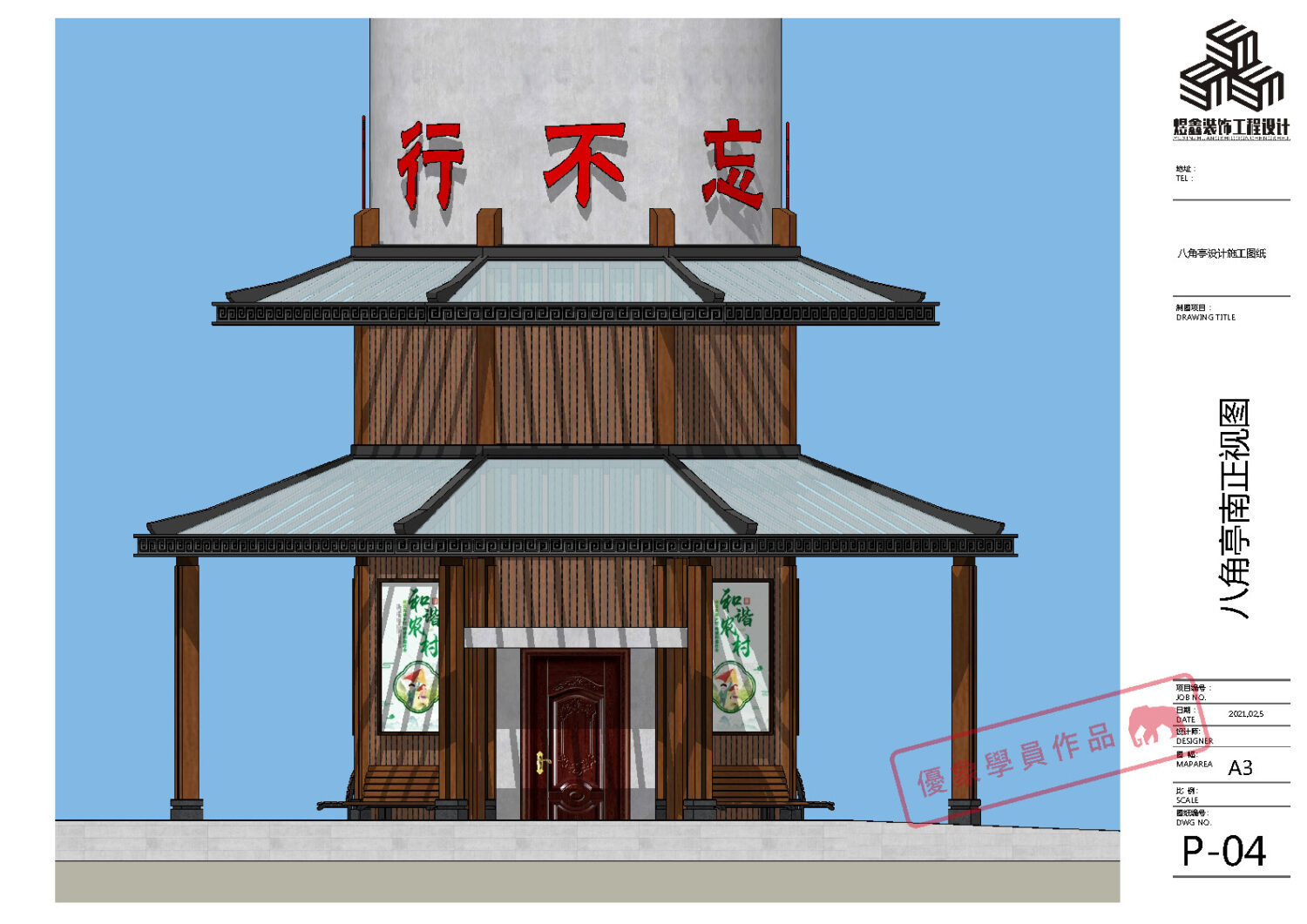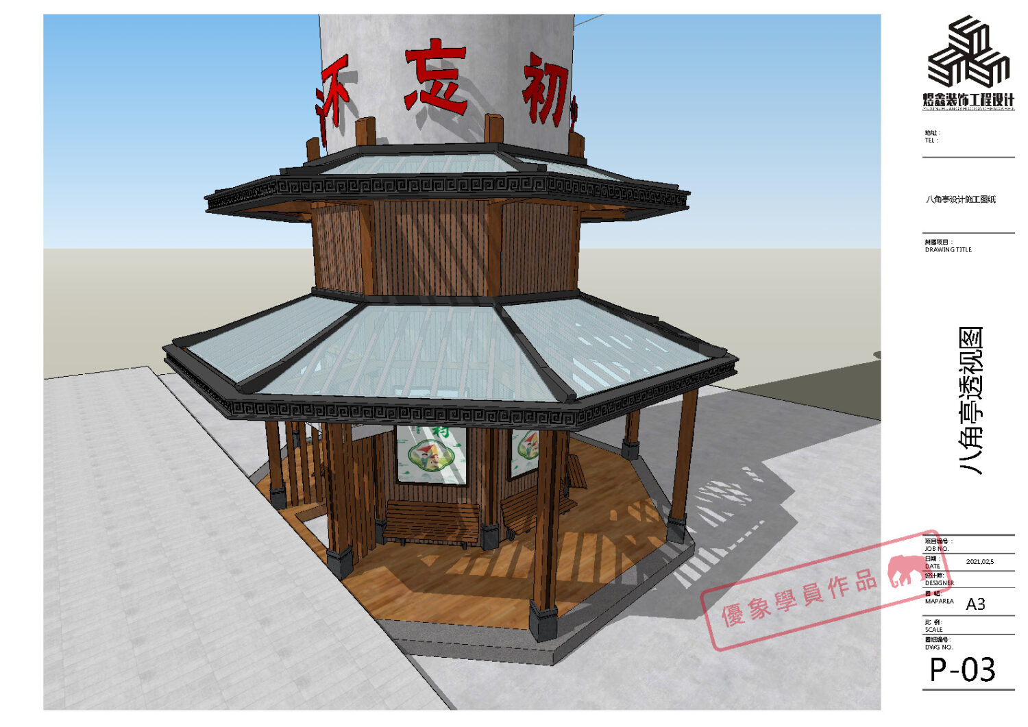 某单位水塔文化建设 八角亭设计施工图纸 (优象学员:往昔)