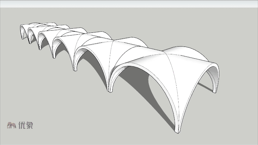 再把多余的面和线删除,最后将模型成组,这样我们的拱形天花模型就绘制完成了。