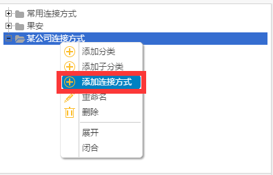 - 点击创建的分类节点->右键菜单->添加连接方式