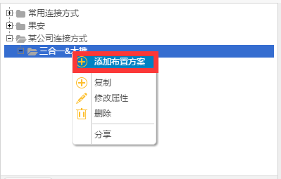 - 点击刚才创建的连接方式的名称节点->右键菜单->添加布置方案
