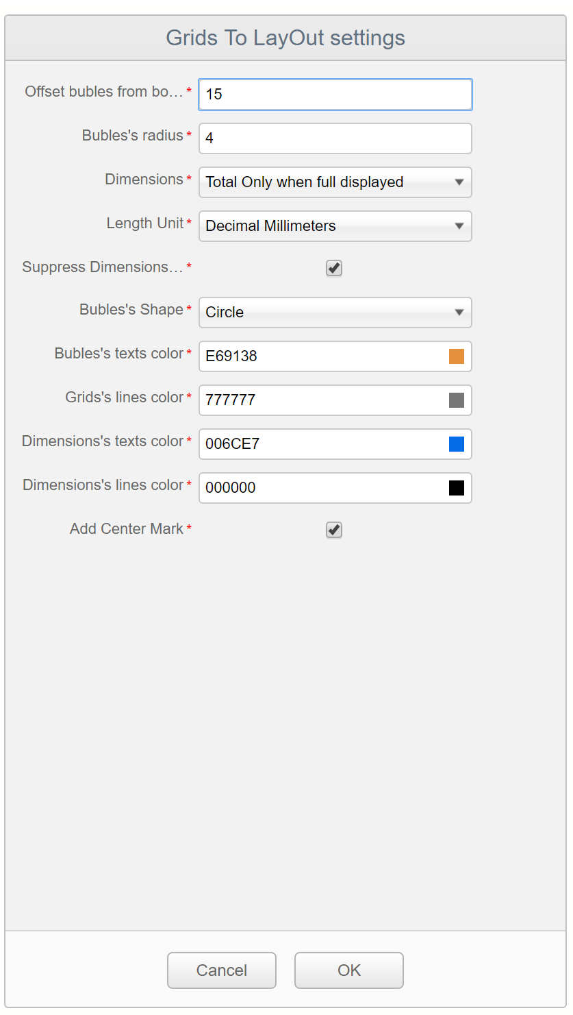 此功能根据您在 skp 模型中创建的网格信息创建一个 ruby 代码,用于在 LayOut 中重新绘制轴系。您可以在可以看到所有网格系统的视图中获取一次代码,然后将代码粘贴到 LayOut 中当前页面的活动层中的任何视图。填写表格,然后您将在剪贴板中获取代码。将代码粘贴到 LayOut 中的 Ruby 控制台,然后按 Enter 运行它。