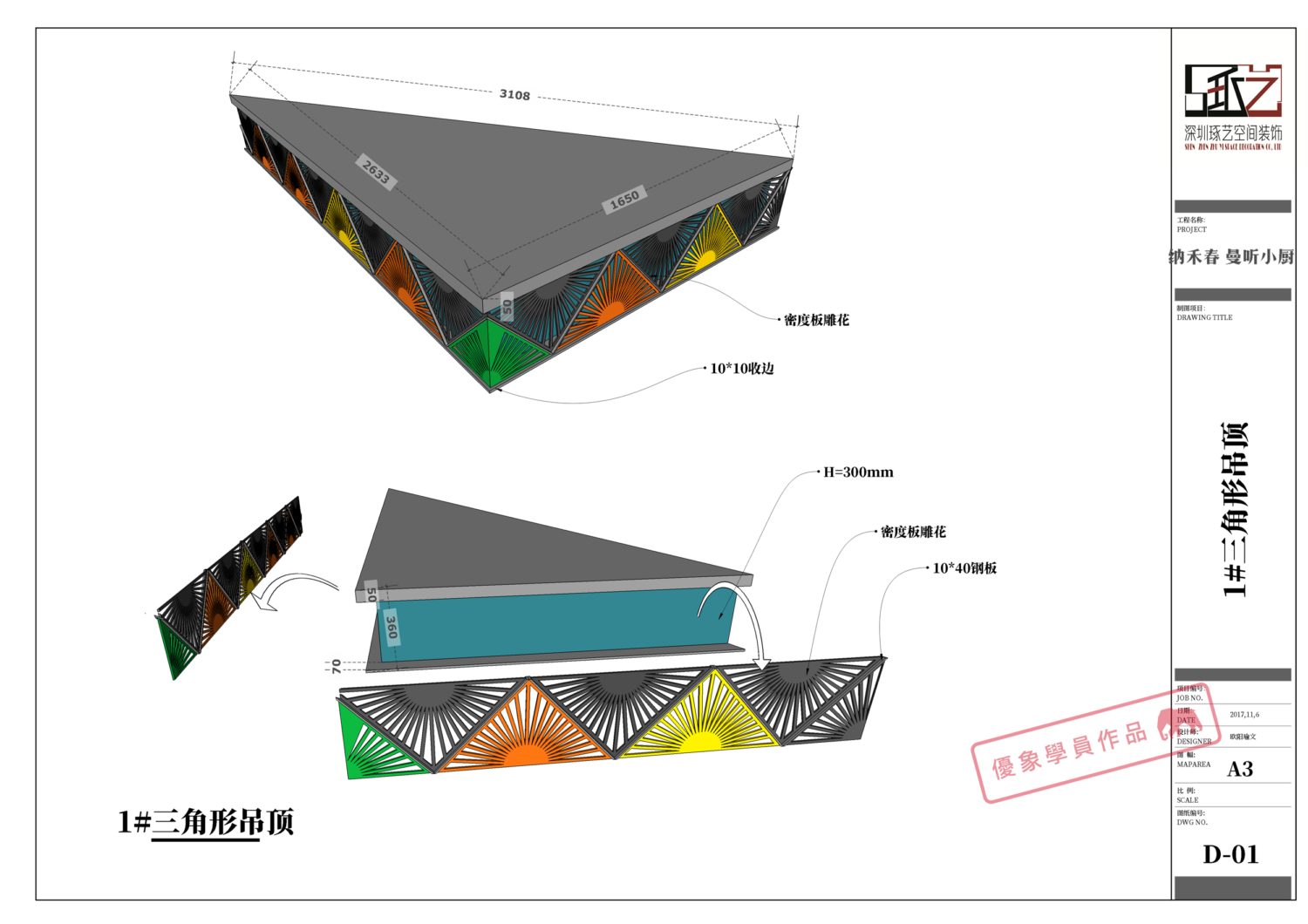 LayOut学员作品:餐厅施工图 LayOut学员作品 餐厅施工图 建模:SketchUp 施工图:LayOut 项目类型:餐厅 介绍:图纸使用LayOut进行输出,设计中涉及到复杂的镂空调用,使用LayOut可以呈现出更多的施工图信息,包括颜色和镂空情况,同样在CAD中表现将会较为复杂并且没有LayOut的直观表现。 大量的立面图纸直接使用LayOut输出,模型做好图纸就差不多就完成了,出图十分快速,图纸也100%还原了设计,可以更好进行落地。 以下LayOut彩色施工图的更多学习资料,有兴趣的同学可以进行了解: LayOut图纸案例 LayOut公开课 LayOut课程介绍