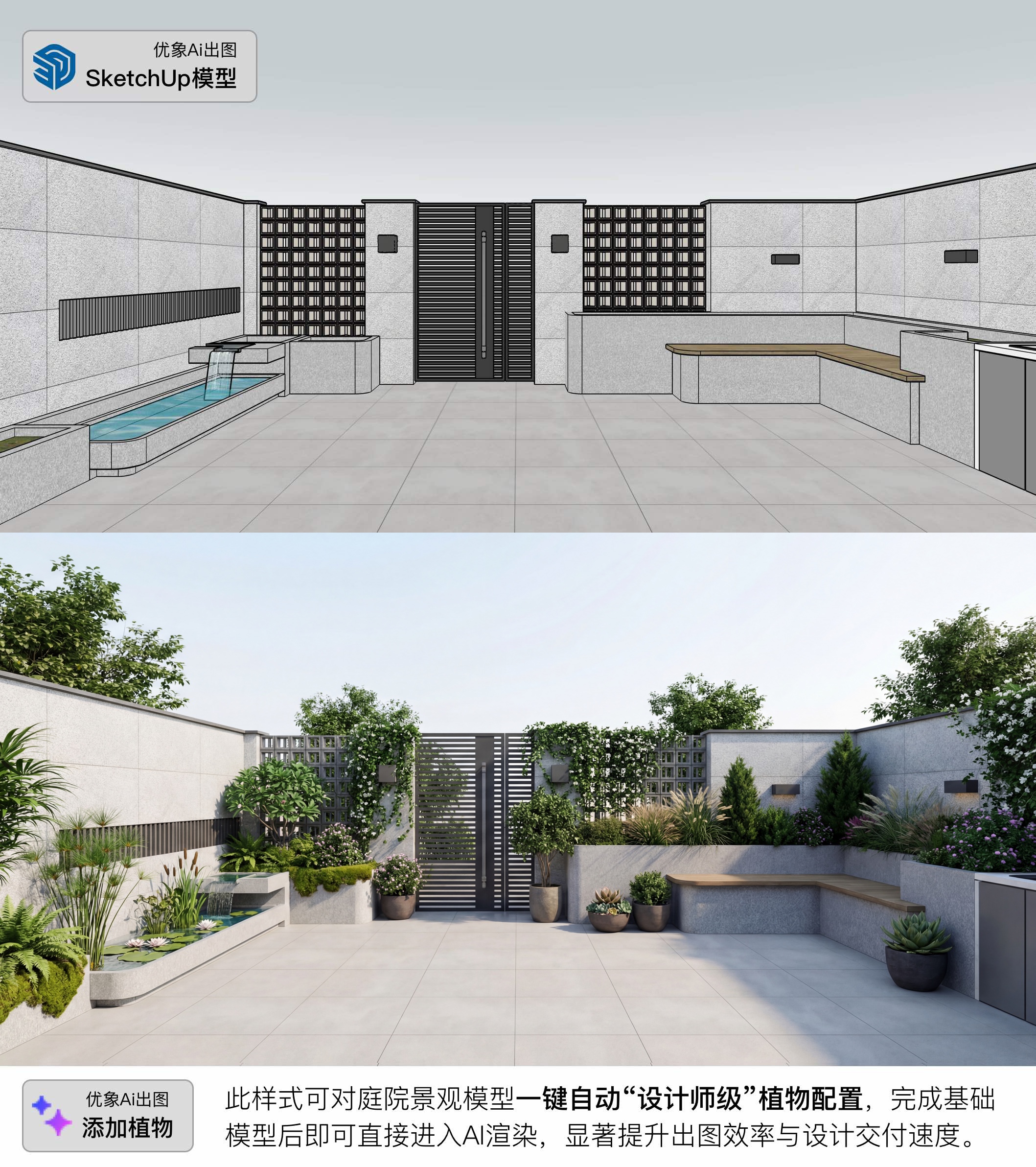 从屋顶花园到私家庭院,优象全新的快速建模流程做庭院景观效率翻倍,出图更快更准,从SketchUp零起步直达D5高质量渲染,确保每一次方案都能快速落地,惊艳呈现,本次课程专为设计师和公司领导打造,优化流程,效率翻倍,缩短交付周期,报价更有竞争力。