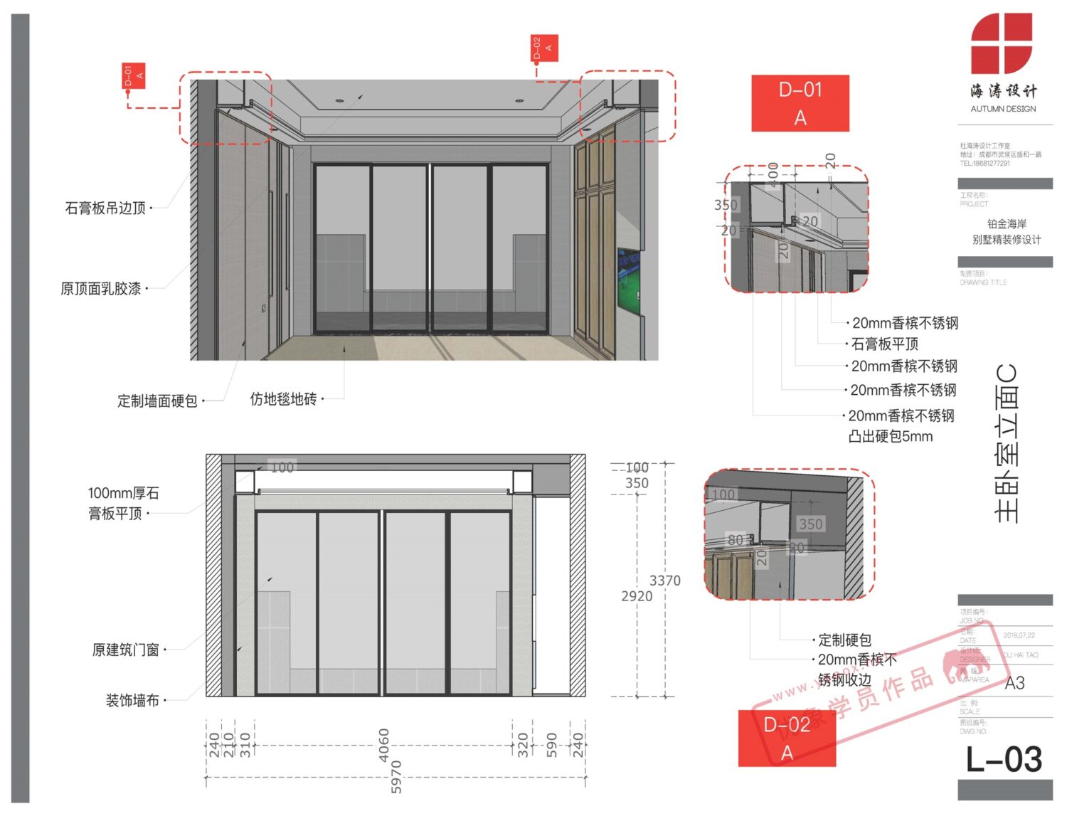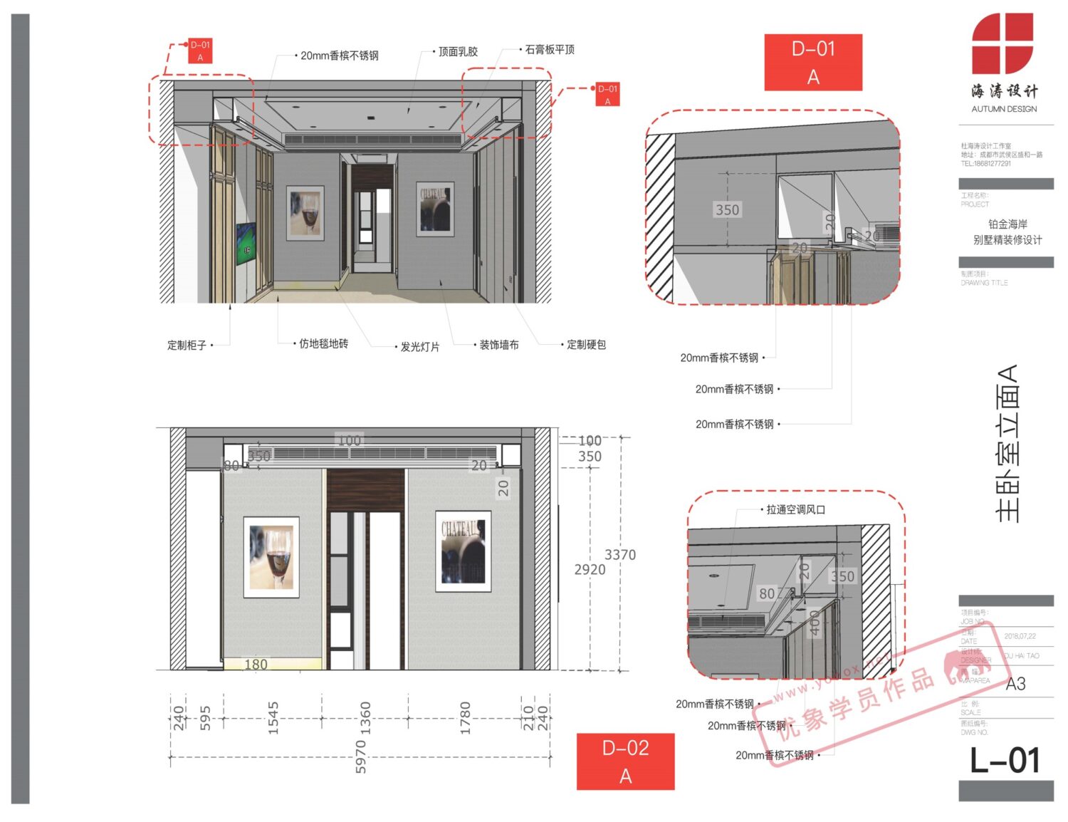 LayOut学员作品-铂金海岸别墅精装修 课程介绍|更多学员案例| 报名咨询 LayOut学员作品 铂金海岸别墅精装修设计 在国内我们很少看到会用 LayOut 绘制项目的整套施工图,但是在国外已经有很多先例。LayOut 不仅可以制作建筑类的图纸、方案汇报文本、结构分析图,还可以做展览设计、家具图纸、工装家装施工图等,整套施工图都可以。 以下LayOut彩色施工图的更多学习资料,有兴趣的同学可以进行了解: LayOut图纸案例 LayOut公开课 LayOut课程介绍