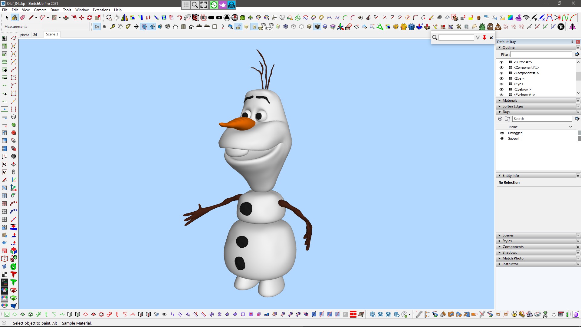 经典的Make Planar 工具已获得重大升级!现在,您可以轻松地将顶点与模型中的任何现有面(或轴)对齐,还可以通过使用SketchUp 推理单击视图中的所需点来选择平面的确切位置。和所有Artisan 变换工具一样,四边形得到维护。