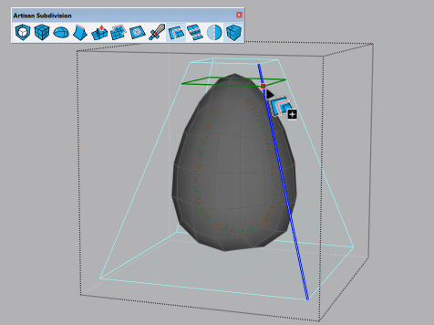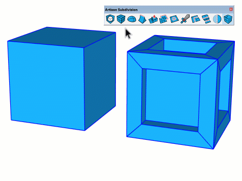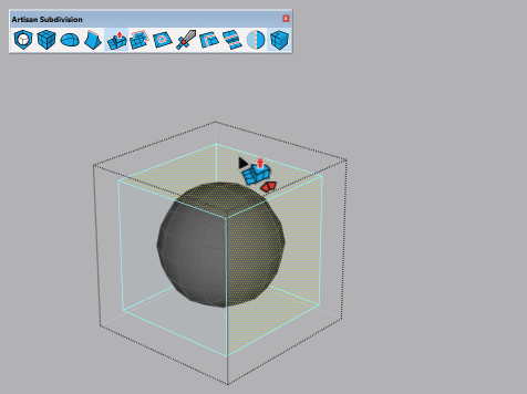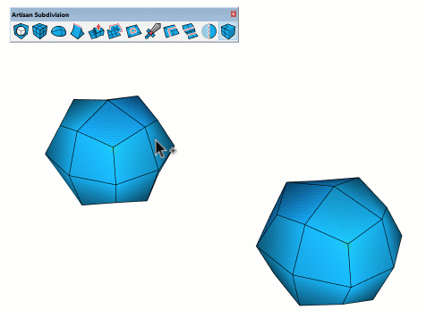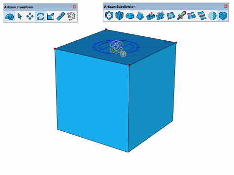 Artisan 2 的新功能是使用实时细分建模进行建模的能力,当您使用各种Artisan 工具进行编辑时,细分曲面(“subsurf”)会实时更新。只需在模型中选择一个组或组件,然后单击“细分和平滑”按钮即可开始实时细分。此模式的工作方式类似于其他3D 建模应用程序中的“非破坏性细分修改器”。