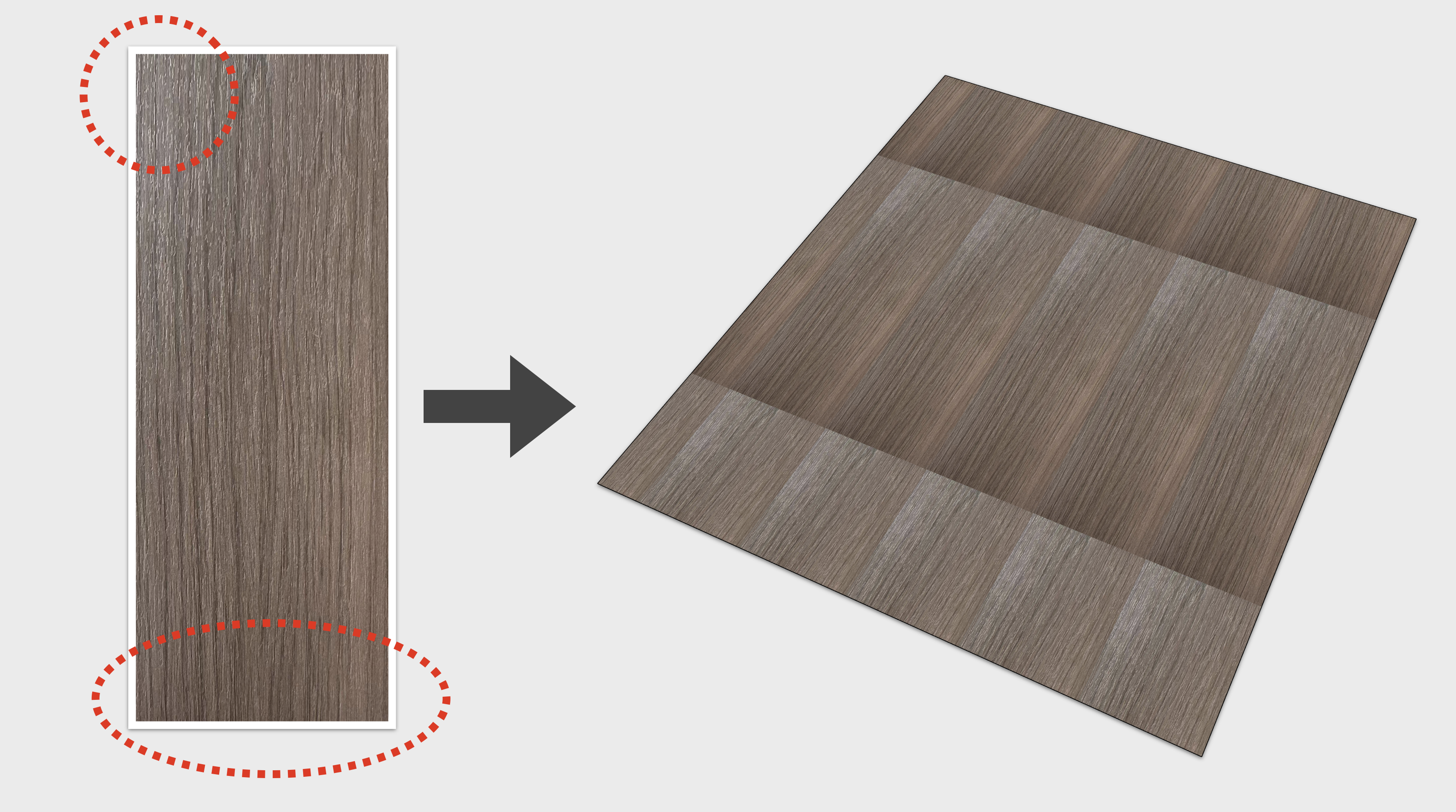 我们需要把图片转换成为无缝贴图,并且拍摄的角度是倾斜的,所以我们需要先对图片进行视角的矫正