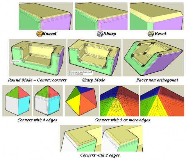 FredoCorner主要有3种运行模式:倒圆角、斜角和细分模型。FredoCorner 还包括一个修复工具, 用于撤消任何生成的形状回滚操作。