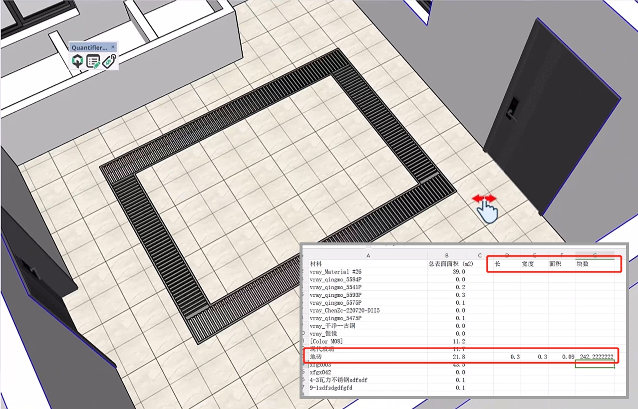 得益于工作流程的衔接,当你对模型赋予材质的时候,你已经就可以对模型进行面积算量,并得到精确无误差的结果。