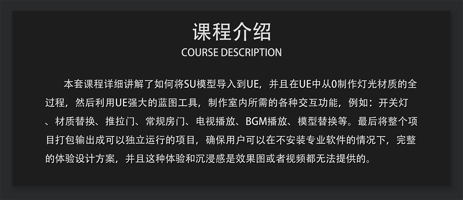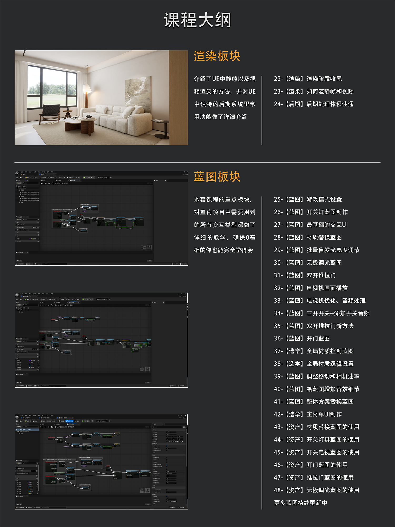 【UE】室内表现—蓝图交互全流程 强大的动态细节展示 靠的近细节多,离得远自动渐变节省性能开销 https://www.yooox.net/wp-content/uploads/强大的动态细节展示,靠的近细节多,离得远自动渐变节省性能开销.mp4 https://www.yooox.net/wp-content/uploads/展示模型导入的高效和便利.mp4 https://www.yooox.net/wp-content/uploads/展示模型承载力(千万级面数).mp4 【UE】蓝图交互全流程 368 / 元【UE】室内表现—蓝图交互全流程培训免费更新到最新版本专业老师辅导答疑 我买购买