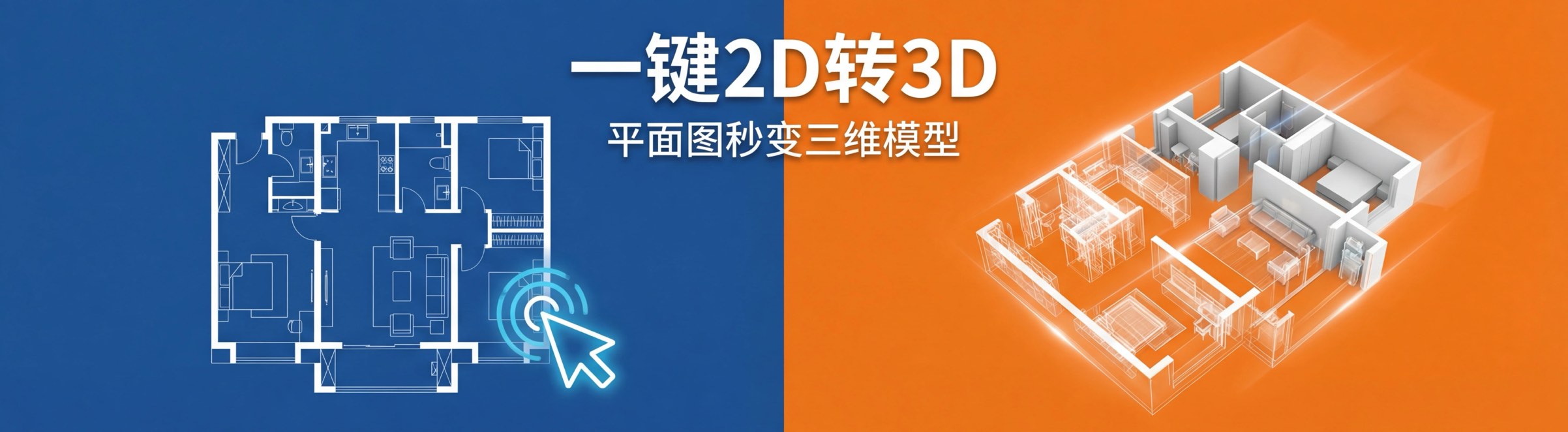 只需一键操作,即可将户型2D平面图快速转换为3D模型,省去繁琐建模步骤,提升设计效率
