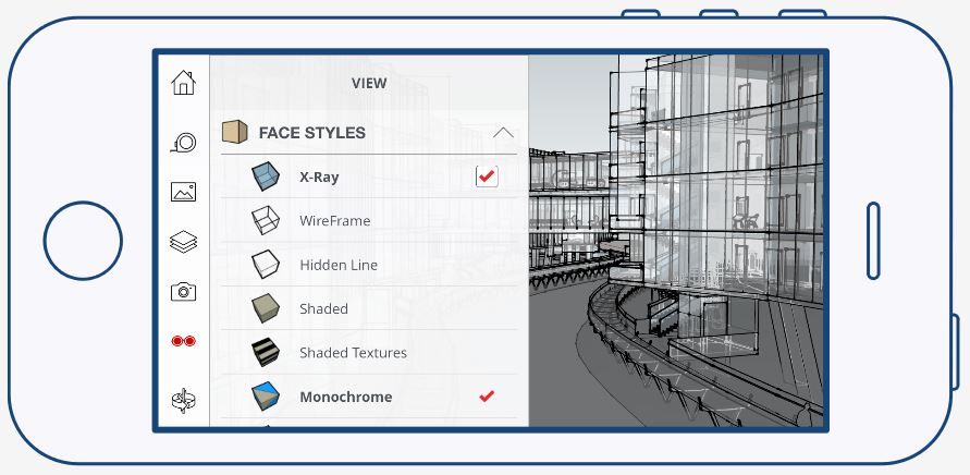 与剖面平面, 正交和透视相机, 层可见性, X 射线模式, 边缘和脸部风格。草图大师在你口袋里的力量。