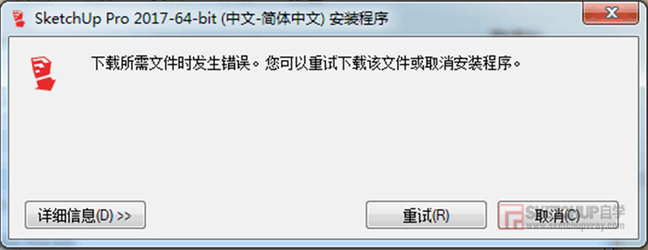 Hi,大家好,我是少校-LA。SketchUp草图大师在安装时一般不会出问题,但有一些电脑安装的时候会出现”下载所需文件时发生错误。您可以重试下载该文件或取消安装程序”的提示……