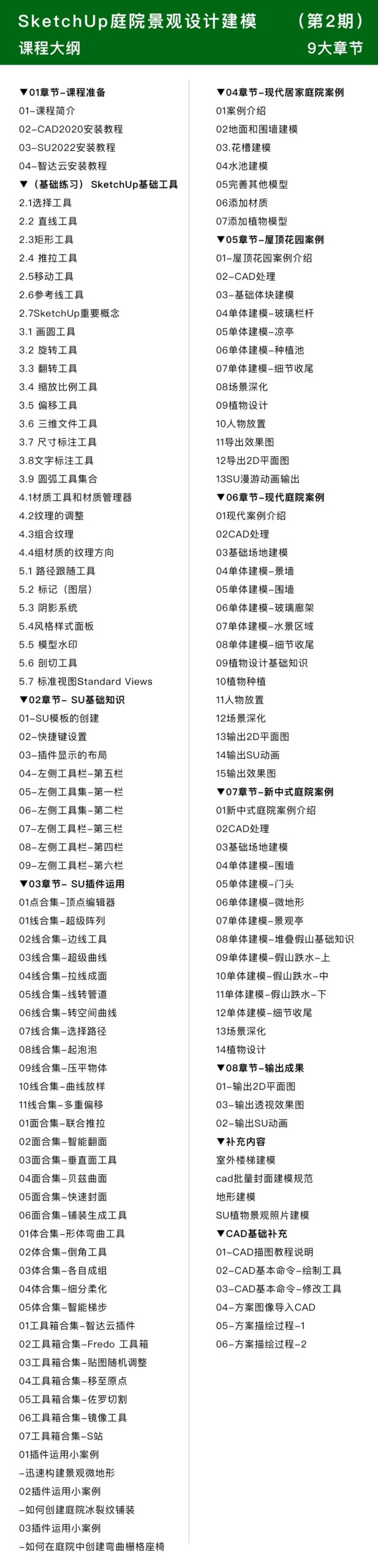 - 掌握从景观方案CAD到SketchUp的衔接
